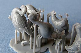 Bei den Gänsen und Hühnern ist das Federkleid nur noch leicht angedeutet, hier sind offenbar der Druckauflösung noch Grenzen gesetzt.