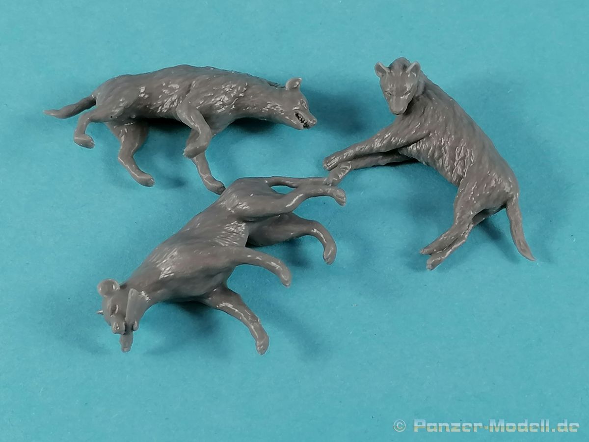 Es ist immer wieder interessant was uns Mantis für ein neues Tier-Set auf den Tisch bringt. Dieses Mal sind es drei Hyänen. Der Druck der Figuren ist wieder sehr fein und gut. Fehler im Druck sucht man hier vergebens. Supports sind so gut wie keine vorhanden. Alle drei Tiere bestechen durch ihre Feinheit. Nummer 1 ist in einer normalen Gangart gestaltet bei der, wie auch bei den anderen die Fellstruktur, die runden Ohren und die offene Schnauze mit sichtbaren Zähnen punkten. Die Nummer 2 zeigt sich in entspannter liegender Position während die Nummer 3 ebenfalls entspannt daherkommt. Diese allerdings mit einem Stock oder einer Keule im Maul. Erneut ein richtig tolles Set, das Dioramen oder entsprechende Vignetten um ein paar schöne Eyecatcher aufwerten kann. Empfehlenswert!