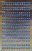 Auf dem PE Bogen sind fein geätzte Zahlen von 0 bis 9 in den Größen (Höhe) von 1,5mm, 2mm, 2,5mm und 3mm.