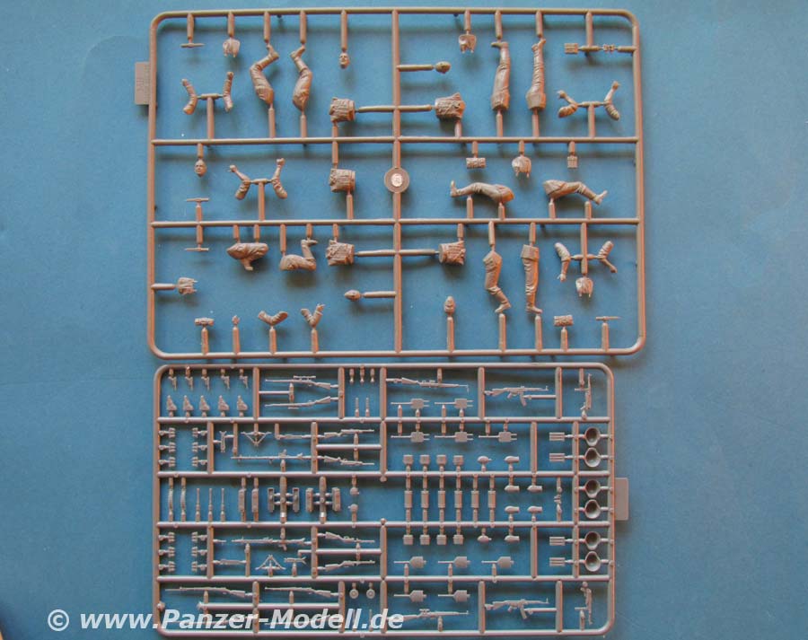 Der Bausatz besteht aus zwei Spritzrahmen - einer, der die 5 Figuren und einer, der sämtliche Waffen und Zubehör beinhaltet.