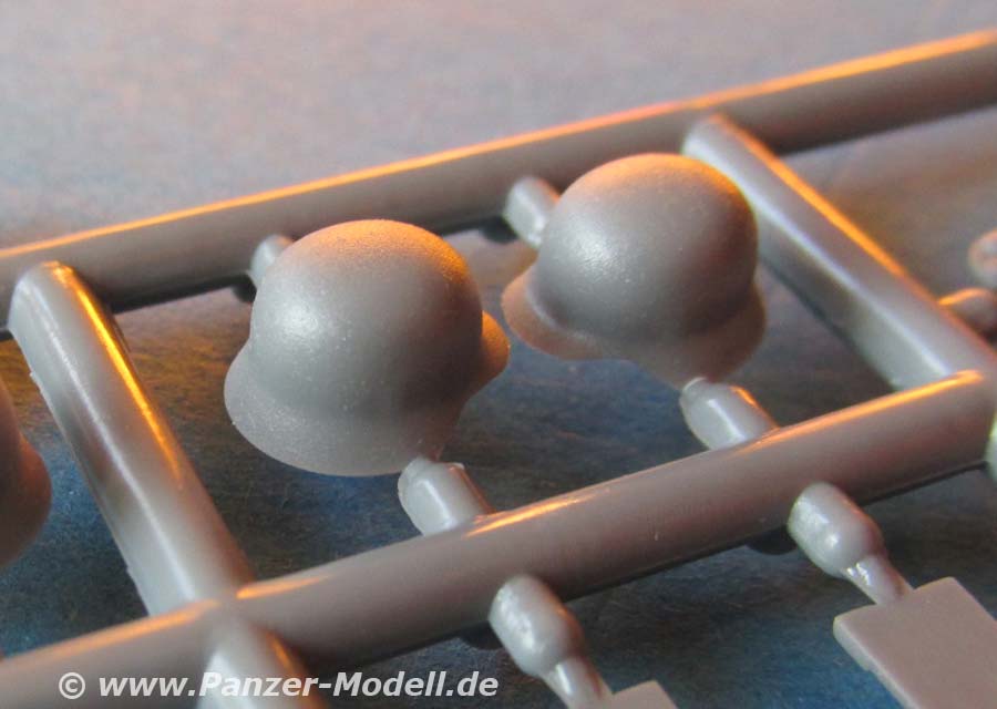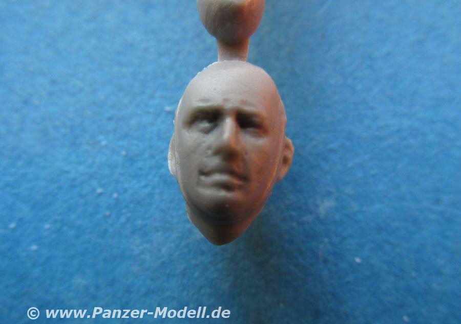 Ein Hinkucker, bzw. Qualitätsmerkmal sind immer die Gesichter - und hier sind die Gesichter wieder ganz große Klasse: Fein und sauber gespritzt, gute, realistische, anatomische Details und ein ausdrucksstarkes Gesicht. Die Köpfe sind kahl modelliert, damit die einzelnen Helme entsprechent auf die Köpfe passen. Die Kinnriemen sind jedenfalls schon direkt mit an die Köpfe angegossen.