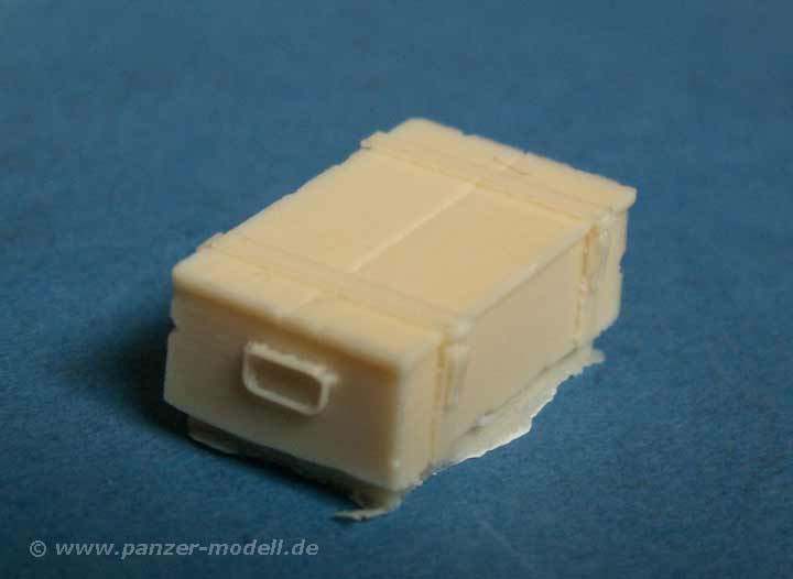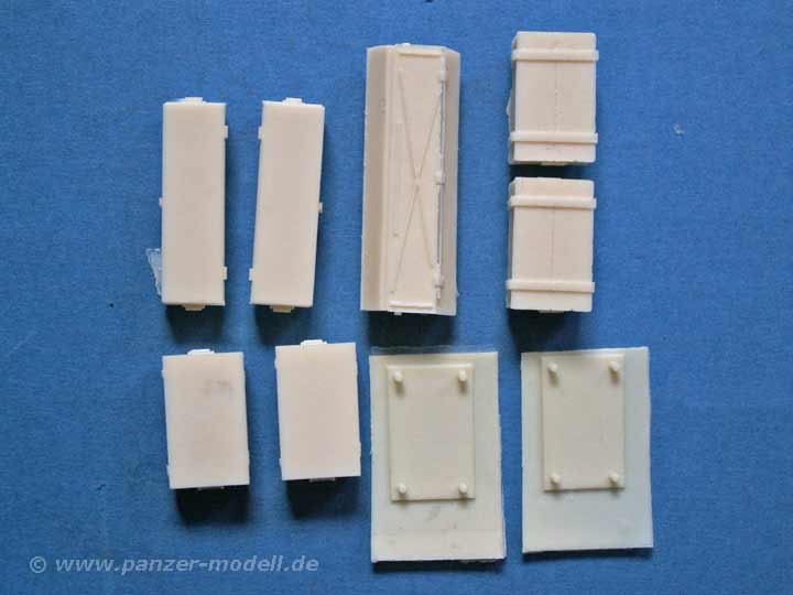 Das Set beinhaltet 9 Resinteile in guter Qualität - die Angüsse sind meist an der Unterseite der Kisten und müssen einfach komplett weggeschliffen oder gesägt werden.