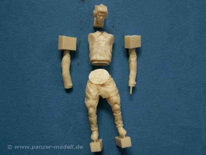 Hierbei handelt es sich um eine Resinfigur eines russischen Panzersoldaten, der die Hände auf die Knie gestützt, stehend hinabblickt - sei es nun ein Turmluk, der Motorraum oder ein anderer Gegenstand oder andere Figur ... Möglichkeiten zum Einsatz gibt es hier genug.