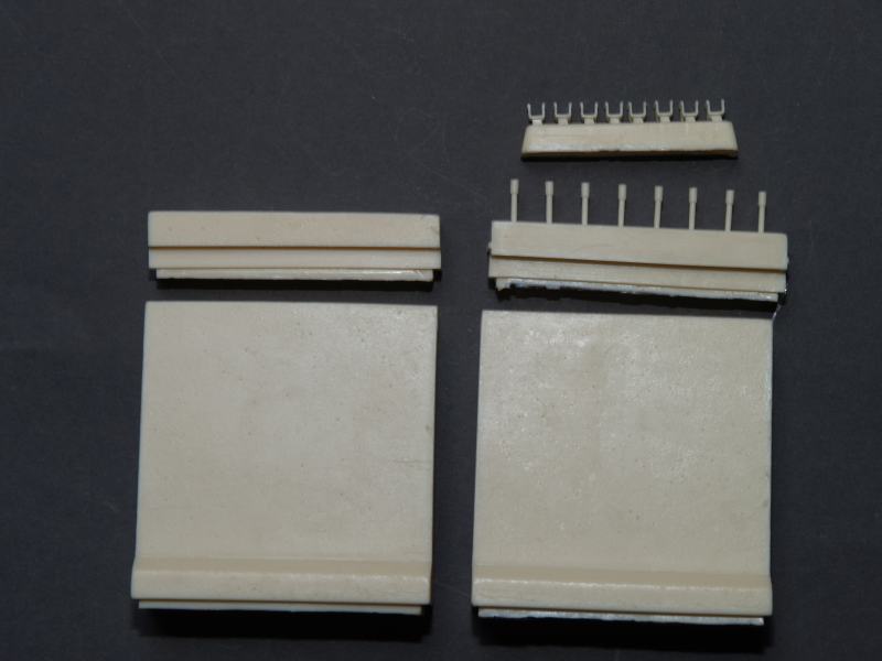 Das Set besteht aus 12 Teilen aus cremefarbenen Resin. Die Qualität der einzelnen Teile ist erste Sahne. Bei den grossen Blöcken kann man sehr schön die Betonstruktur erkennen. Da die beiden Teile recht hoch ausgefallen sind, eignen sie sich sehr gut für den Hintergrund eines modernen Diromamas oder Vignette, um dieses nach hinten abzuschliessen.