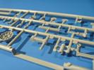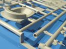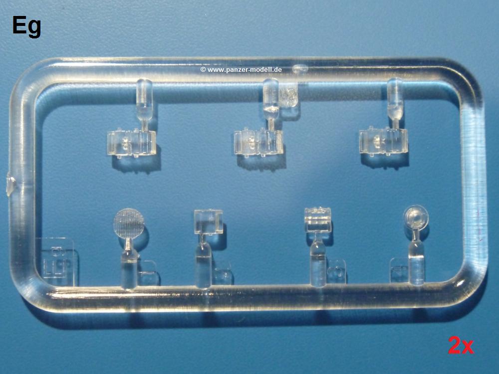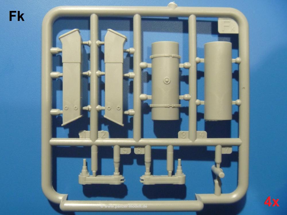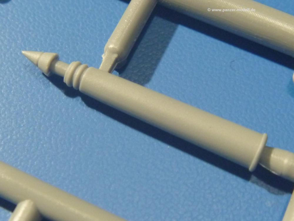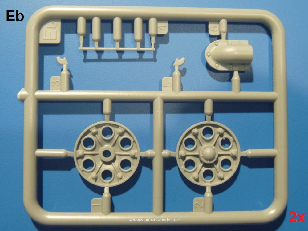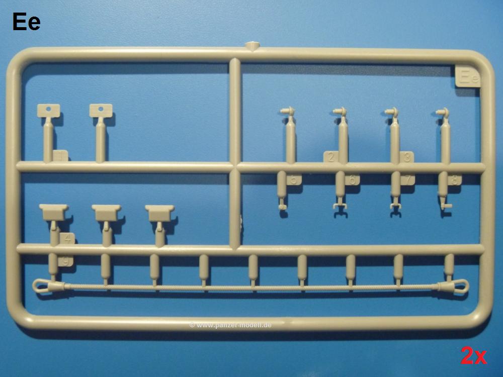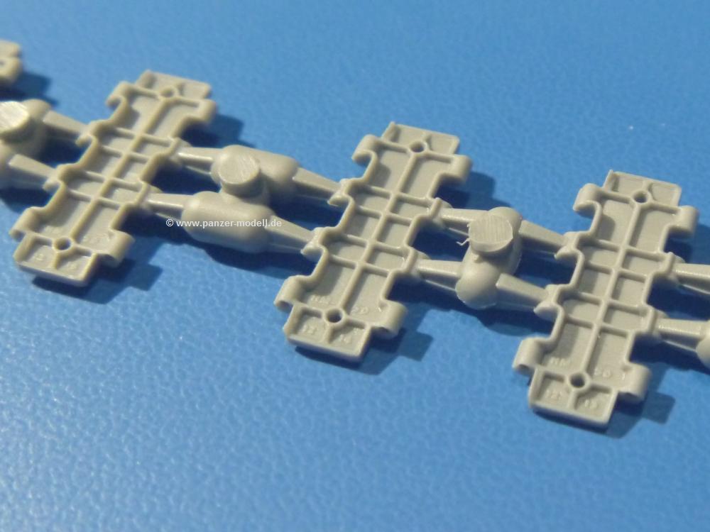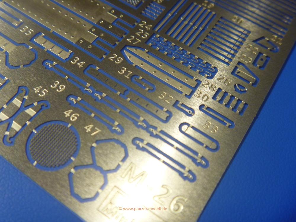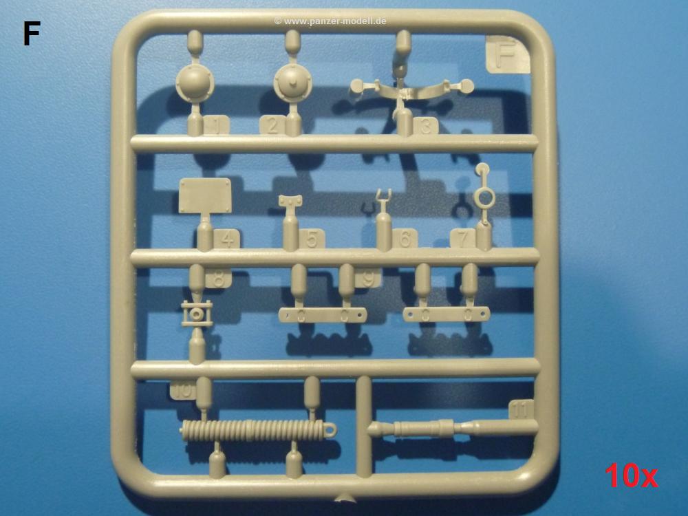Die Teile aus hellgrauem Plastik sind sauber gespritzt, ohne Verzug und Versatz, hier und da minimaler Grat, keine Fischhäute. Auswerferspuren sind kaum zu sehen und nur auf Innenseiten von Teilen vorhanden, so dass sie beim Zusammenbau verschwinden, ohn das man sie wegschleifen und verspachteln müsste. Viel Vorsicht muss man aufwenden, um manche filigrane Teile wie Gestänge zerstörungsfrei von den Spritzlingen zu lösen.Tja, wie beschreibt man in aller Kürze einen Bausatz, bei dem man sich dermaßen im Detail verlieren kann? Ich habe mich diesmal für ein paar Fotos mehr entschieden und versuche, mich textlich kurz zu fassen.Motor und Getriebe sind im wahrsten Sinne ein Bausatz für sich, so dass es diese mittlerweile auch unter 35205 separat zu kaufen gibt. Lagerböcke, Zylinderköpfe, Zuluft-, Abgaskanäle, Auspuffrohre, Kühlschläuche, Kühler, Lichtmaschine, Einspritzpumpe, Elektromotor für Lüfterad, Lüfterrad, Luftfilter, Steuerstangen, Lenkbremsen - aus meiner Sicht fast alles da bis auf Einspritzleitungen und Verkabelung. Auf dem Wannenboden angegossen findet man vom Fahrerplatz bis zu den Lenkbremsen das entsprechende Gestänge. Die Tanks sind mit Einfüllschrauben versehen und auch die eingepressten Versteifungsrippen sind vorhanden. Schaut man sich die Oberwanne dann mal an, findet man so einige Schraubenlöcher, die dort zu finden sind, wo Motor-, bzw. Kühlerabdeckungen normalerweise angebracht sind. Wenn man also z.B. für eine Wartungsszene die Abdeckungen weglässt, sind die Schraubenlöcher da. Eine absolut realistische Darstellung. Die Zu- und Abluft sind offen. Hier kann man die Windleitbleche entsprechend positioniert einbauen. Den Zuluftdeckel über dem Lüfterrad bekommt man in 2 Varianten. Einmal in Vollplastik mit feiner Gitterstruktur und einmal durchbrochen. In die Öffnung werden dann aus PE-Teilen der Halterahmen und das Gitter eingesetzt. Die große Heckplatte, die auch abgeklappt angebaut werden kann, enthält die Öffnungen für die Auspuffrohre und eine große Wartungsöffnung. Auch hier findet man an den entsprechenden Stellen Schraubenlöcher, wenn man diese Deckel auflassen möchte. An der Innenseite der Heckplatte sind die Verschraubungen der Auspuffpanzerungen vorhanden.Im Kampfraum ist natürlich auch viel los. Der Fahrerplatz ist voll ausgestattet - Sitz, Bedien- und Schalthebel, Pedale, Armaturen. Die Fahrersehklappe bekommt Winkelspiegel aus Klarsichtmaterial. Alle Aussen- und Innendetails inkl. Verriegelungen sind vorhanden. Baut man die Klappe offen, muss man nur das Öffnergestänge entsprechend anbauen. Für die vier verschiedenen Munitionsarten gibt es entsprechende Halterungen. Der Bausatz enthält 60 Patronen, die nicht unbedingt alle verbaut werden müssen, wenn man einen gewissen Verbrauch darstellen möchte. Trommelmagazine für MG/MP mit PE Halterung sind vorhanden, nur die passenden Waffen dazu habe ich nicht gefunden. Dafür gibt es aber eine gehörige Anzahl Nahkampfstopfen, die separat verbaut werden. Optiken wie z.B. Zielfernrohr und Kommandantenoptik sind mit allen Innen- und Aussendetails in Vollplastik vorhanden. Die zahlreichen Winkelspiegel bestehen aus Klarsichtmaterial und werden mit PE-Bügeln weiter detailliert. Auch die vergitterten Innenraumleuchten sind glasklar. Neben der Munition nimmt den meisten Platz die Kanone ein. Verschluss, Verschlussblock, Rohrbremsen, Richtelemente, Richtschützensitz, Zielfernrohr, Hülsenabweiser, -sack, Rohrlager, um nur ein paar Details zu nennen. Die Verschraubung der Kanonenlagerung ist auch auf der Innenseite der Frontplatte wiedergegeben. Das Rohr ist aus einem Stück gegossen und an der Mündung ca. 3mm tief "aufgebohrt". Die Gussstruktur der Blende und Bledenlagerung weiß sehr zu gefallen.Das Fahrgestell beginnt bereits im Inneren mit den Federkästen, in die die schönen Druckfedern eingebaut werden. Alle Schwingarme sind separat ausgeführt. Die Räder sind rumherum detailliert und können drehbar angebaut werden. Die Kettenglieder werden ineinander geklipst und sollten theoretisch auch beweglich bleiben, wenn die feinen Stifte das aushalten. Ein genauer Blick auf die Glieder zeigt uns Gussnummern auf Innen- und Aussenseiten.Die 4 Aussentanks sind sehr fein detailliert. Bei den hinteren beiden hat man die Wahl, ob man die Tankhälften mit angegossenen Halterbändern anbringt, die Tanks weglässt und nur die Haltebänder aus PE-Teilen anbringt oder ob man die Tanks ohne angegossene Halterbänder nimmt und dann mit den PE-Bändern befestigt. Die Griffe an den Enden der Tanks sind aus PE-Material. Die 12 Eisgreifer werden auf den Kettenabdeckungen mittels einer Kombination aus Plastikösen und PE-Bändern befestigt. Gleiches gilt für die eingerollte Plane. Die Plastikösen sind winzig und werden genügend Vorsicht und Geduld fordern. Hupe und Lampe sind an PE Halterungen befestigt. Die Lampe ist innen hohl und mit einem geriffelten Klarsichtglas versehen. Werkzeug wie Schaufel und Säge ist ebenso vorhanden wie die Abschleppseile. Alle Luken lassen sich offen oder geschlossen anbauen und sind entsprechend beidseitig detailliert.Es sind Abziehbilder (Decals) für 2 (eigentlich 3) Varianten dabei.