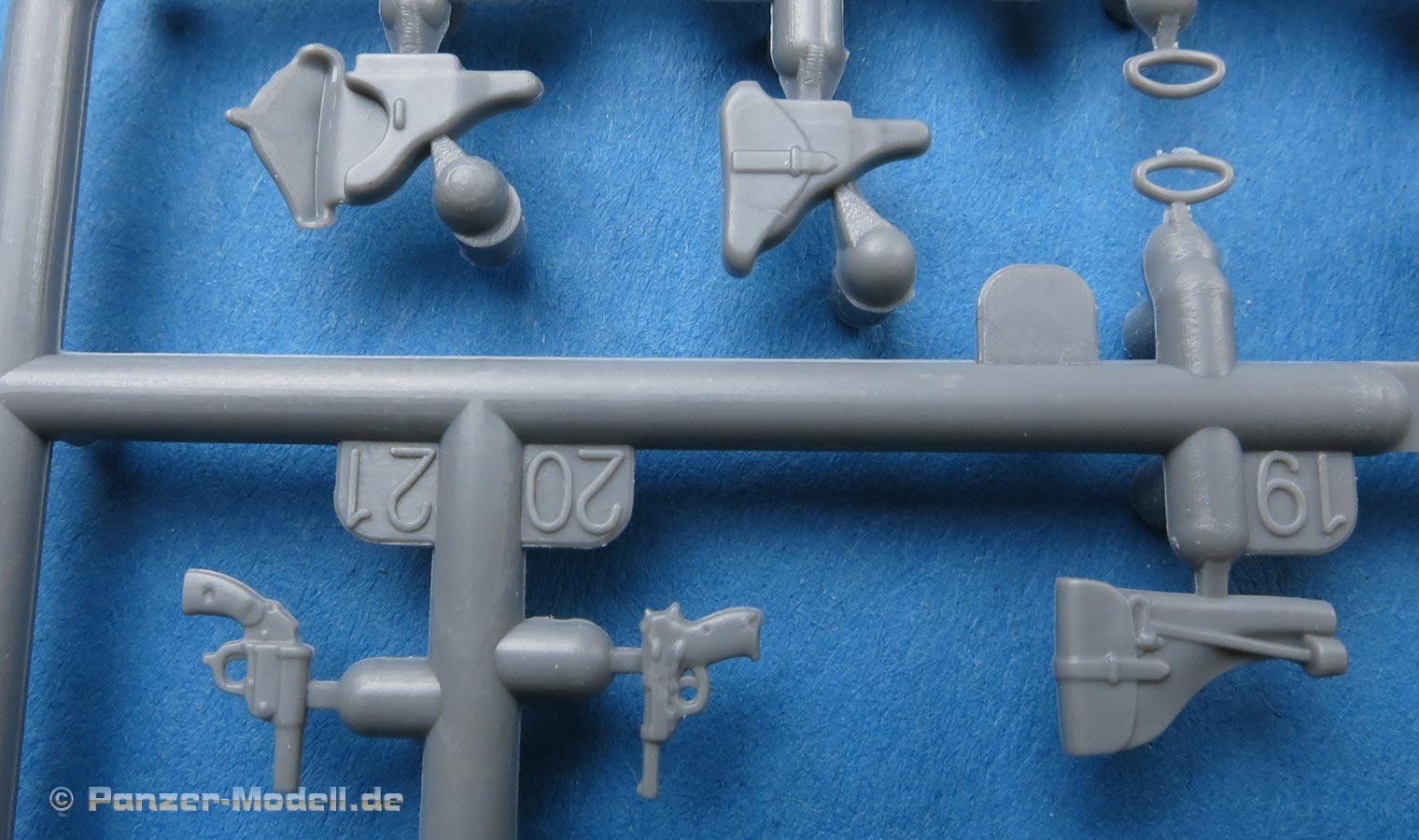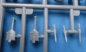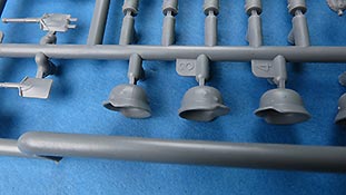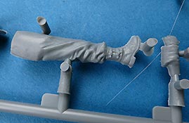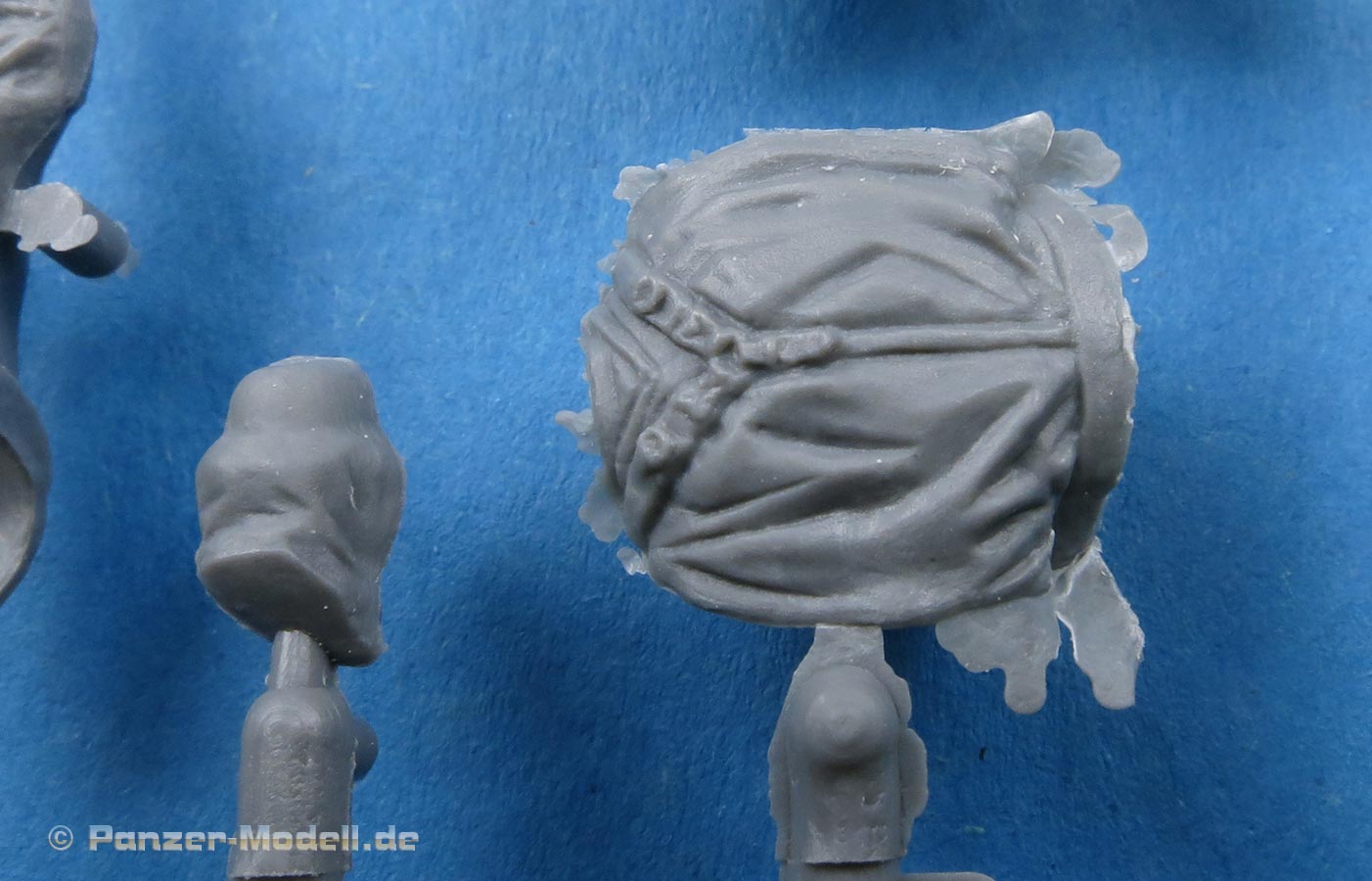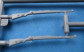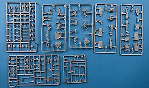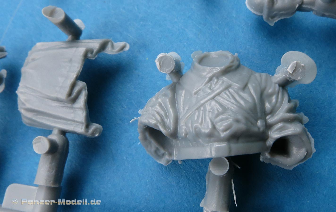 Neben den vielen neuen Fahrzeugen findet Miniart auch immer noch Zeit um Figurensets auf den Markt zu bringen Im Bausatzkarton finden wir 7 Spritzlinge zum Bau von 4 Figuren und passendem Zubehör. Die Teile an den Spritzlingen machen durch die Bank einen guten Eindruck - auch wenn Spritzgussfiguren immer ein bisschen an Fischhaut und Unschärfe an den Kanten, bzw. an Grat der Formtrennnaht leidet. Hier muss einiges an Versäuberungsarbeit geleistet werden. Der Faltenwurf der Uniform ist weicher als bei Resinfiguren, aber kommt glaubhaft rüber. Auch die Gesichter sind für Spritzguss gut ausgeführt. Details wie Hosennähte und Gamaschen finde ich sehr schön. Auch die Darstellung der Ponchos ist recht gelungen und verleiht den Figuren damit schon dieses "Ardennen-Flair". Die Posen der Figuren sind je zwei entspannt sitzende und stehende Figuren, die man recht individuell auf und an Fahrzeugen und Dioramen einsetzen kann. Für knapp über 10 Euro bekommt man hier vier gute Figuren in Spritzguss - kein Vergleich zu Resinfiguren von der Qualität aber eben auch nicht vom Preis.