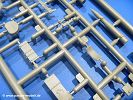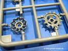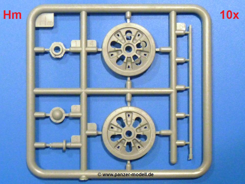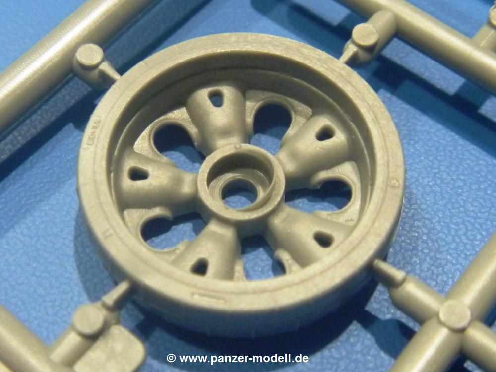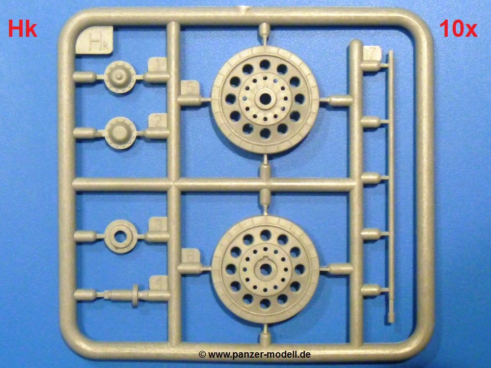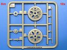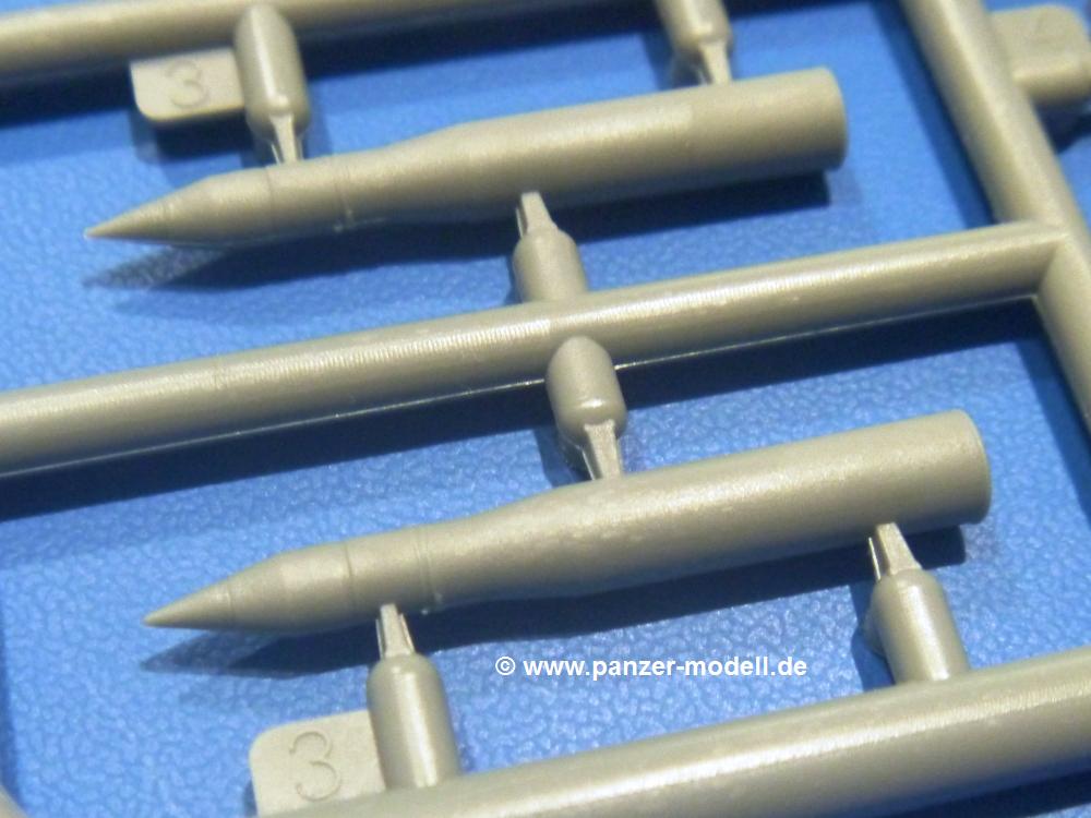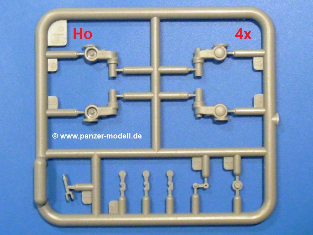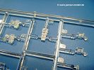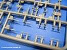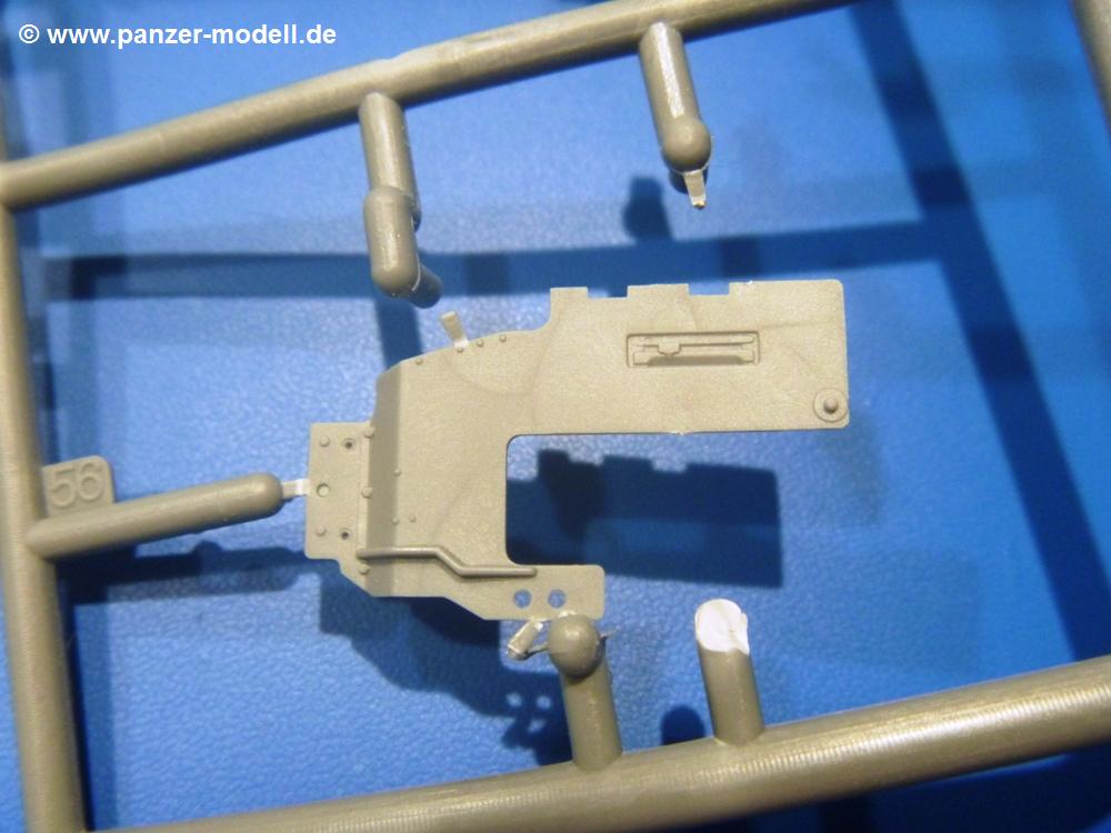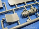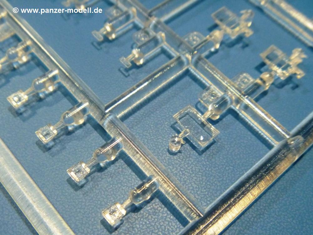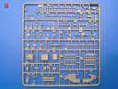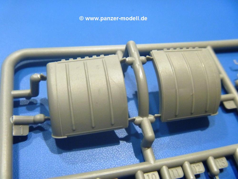 Die Teile aus hellgrauem Plastik sind sauber gespritzt, ohne Verzug und Versatz, hier und da minimaler Grat, keine Fischhäute. Auswerferspuren sind kaum zu sehen und nur auf Innenseiten von Teilen vorhanden, so dass sie beim Zusammenbau verschwinden, ohne das man sie wegschleifen und verspachteln müsste. Viel Vorsicht muss man aufwenden, um manche filigrane Teile wie Gestänge und Leitungen zerstörungsfrei von den Spritzlingen zu lösen.Was wird nun geboten? "Jede Menge!" kann man schon zu Anfang sagen. Separate Drehstäbe, Schwingarmlager, Schwingarme und die Notausstiegluke finden ihren Platz im Wannenboden. Neben der Notausstiegsluke findet man auch Öffnung und Verschlussdeckel zum Grabenbeschuss. Die 5 Bodenbleche des Kampfraumbodens sind sehr schön wiedergegeben. Der Fahrerplatz ist mit Lenk-, Schalthebeln, Pedalen und mehrteiligem Fahrersitz ausgestattet. Rechts vom Fahrer findet man einen großen Staukasten, an den der Munitionsbunker für 20 Schuss separate 100 mm Munition angrenzt. An die Wanneninnenwände werden so einige Instrumente, Munitions-, Schalt- und Staukästen angebaut. Auch weitere 100 mm Munition und eine Feuerlöschanlage gibt es. Dazu kommt ein separater Handfeuerlöscher.Der 12-Zylinder V-Dieselmotor enthält viele Details wie die Einspritzpumpe, Ein- und Auslasskanäle, Lichtmaschine, Anlasser, Luftfilterkasten mit untergebautem Zyklonluftfilter, Anlasskompressor, Kraftstofffilter, Turbo und verschiedene Leitungen. Nur die Einspritzleitungen von der Einspritzpumpe zu den Düsen muss man selbst (z.B. aus feinem Draht) herstellen. Die Motortrennwand ist schon gut detailliert. Zusätzliche Teile sind ein MG-Munitionsbehälter, eine 100 mm Patrone, ein Schaltkasten. Das Gimmick hier ist der Kampfraumlüfter mit dem PE-Gitter.Auch im Turm wurde kein Detail ausgelassen. Rohrbremsen, Verschlussblock und Hülsenabweiser erwartet man auf alle Fälle. Der Verschluss als separates Teil erlaubt das Einlegen von 100 mm Munition, Bediengestänge ist vorhanden. Höhen- und Seitenrichtmaschine sind samt ihrer Elektromotoren sauber wiedergegeben. Die Sitze der Besatzung sind ebenso da wie die Munitionshalterungen samt der separaten Munition und dem Funkgerät. Das koaxiale MG mit Munitions- und Hülsenfangkasten ist reichlich detailliert. Das Zielfernrohr des Richtschützen und die Nachtsichtoptik sind schon kleine Bausätze für sich. Wenn ich mit nicht verzählt habe, kommen bei der Kommandantenluke je nach Variation bis zu 29(!) Teile zusammen - Winkelspiegel, Scheibenwischer, Bediengriffe, Suchscheinwerfer etc.Auch Außen ist so einiges los. Für die Kraftstofftanks auf den Kettenabdeckungen gibt es separate Leitungen. Den Wetterschutz für den Fahrer kann man aufgebaut mit Glaseinsatz, Scheibenwischer und Bedienhebel dafür aufbauen oder zusammengefaltet auf der gerollten Plane am Turmheck platzieren. Die Plane wird von PE-Bändern gehalten. Das Fla-MG setzt sich aus fast 30 Teilen zusammen. Hier gibt es auch ein Stück Munitionsgurt. Die Kanonenblende kann man wahlweise ohne oder mit Blendenplane einbauen. Je nach Wahl unterscheidet sich dann der Anbau des Schießscheinwerfers. Entscheidet man sich für die Nachtkampfvariante des Scheinwerfers, darf man innen auch eine Glühlampe aus Klarsichtmaterial einsetzen. Apropos Nachtkampfvariante - die Bauanleitung gibt dafür Optionen vor. Für den Nachtkampf also offene Such- und Schießscheinwerfer und eingebaute Nachtkampfoptik oder für den Tagkampf mit Deckeln verschlossen.Für das Fahrgestell gilt, wenn man die Schwingarme nicht feststellt, bleibt es beweglich, so dass man es z.B. an Dioramengelände anpassen kann. Die Einzelgliederkette kommt einem da entgegen. Wirft man einen genaueren Blick auf die Glieder, wird man die feinen Gussnummern erkennen. Bei den Laufrollen hat man die Wahl zwischen den älteren Spinnennetzrädern oder den moderneren 5-Speichenrädern. Der Bemalungsplan zeigt den T-54 aber immer nur mit 5-Speichenrädern.Es sind Abziehbilder (Decals) für 4 Versionen dabei.