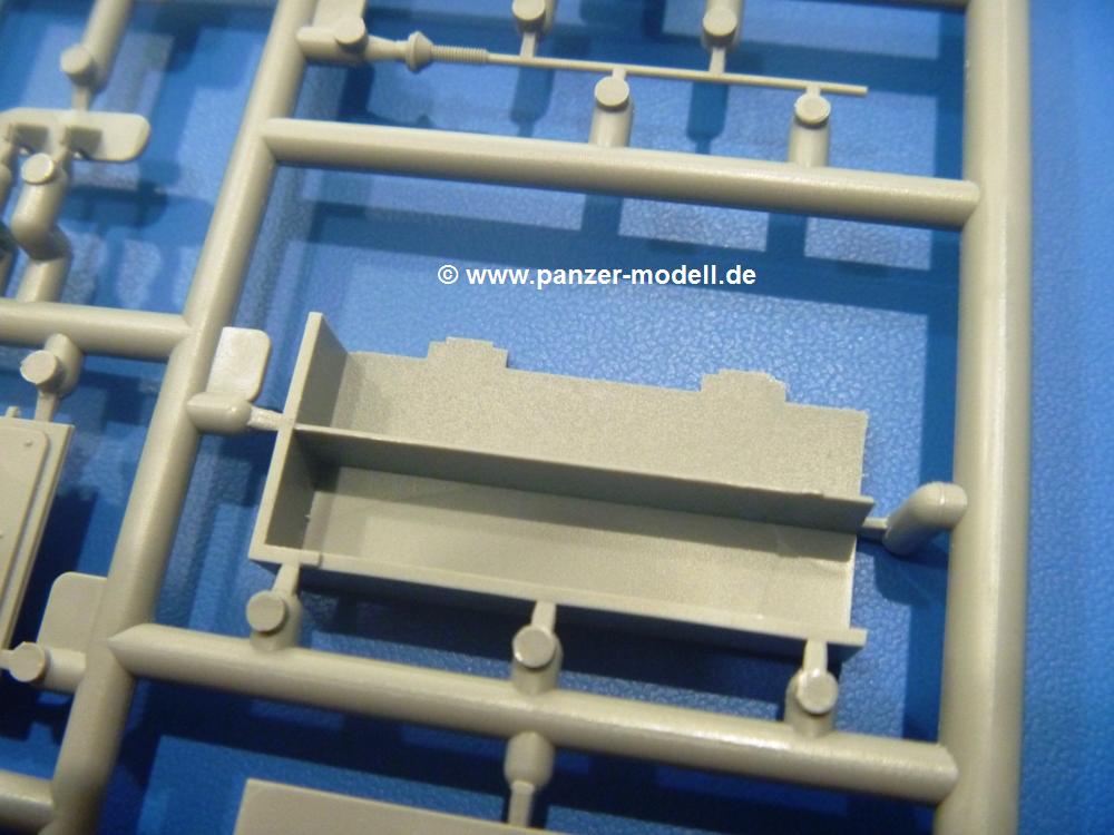 Der Bausatz: Zwar gab es bereits recht alte Bausätze des T-54 von anderen Herstellern, aber erst MiniArt hat sich etwas intensiver mit diesem Typ beschäftigt. So ist der T-54B, den wir uns heute anschauen werden, neben den bereits erschienenen T-54-1, -2, -3, nur einer aus der großen Reihe. Panzer-Modell.de hat sich den Panzer ohne Inneneinrichtung (MiniArt Nr. 37019) bereits angeschaut, so dass der Schwerpunkt dieses AUSGEPACKT auf der Inneneinrichtung liegt.Der Karton ist 385 x 240 x 100 mm groß und randvoll gefüllt mit 89(!) hellgrauen, 2 Klarsichtspritzlingen, 2 PE-Platinen und einem Decalsheet. Insgesamt werden 1.187 Teile zu verbauen sein.Schauen wir in der Übersicht, was uns das Modell bietet: