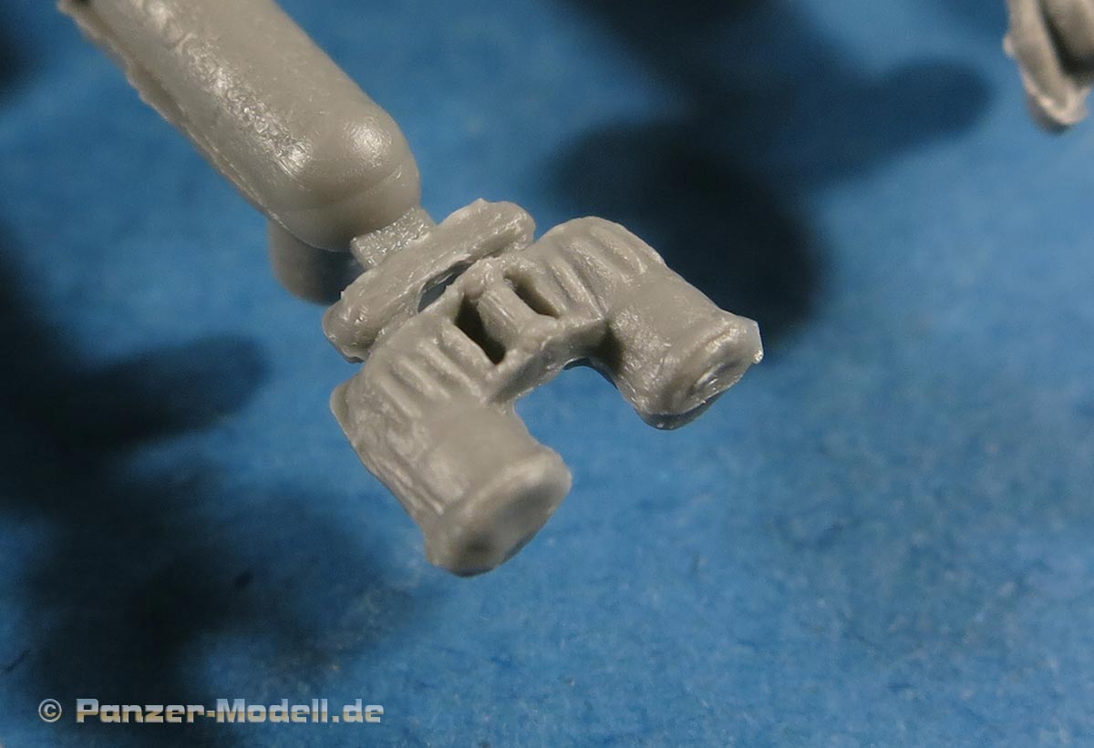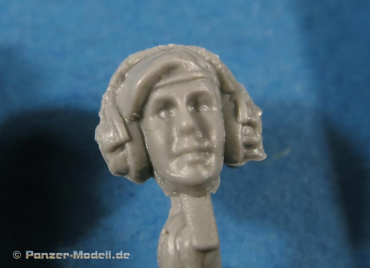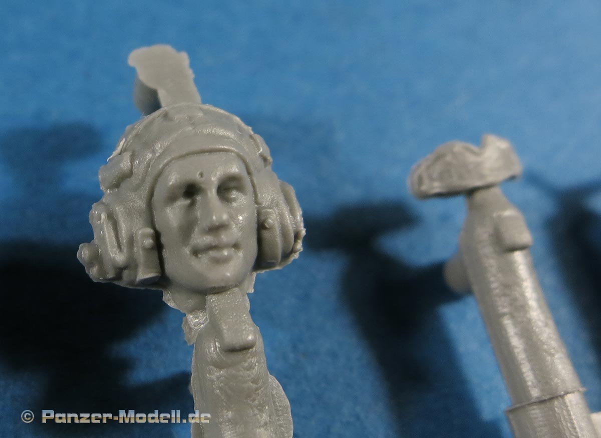 Besonderer Clou und großes Plus des Sets ist die Darstellung einer weiblichen Panzersoldatin - dies ist die sitzende Figur mit Barett. Die Figur ist mit den passenden weiblichen Attributen dargestellt ohne zu übertreiben und auch das Gesicht weist weibliche Züge auf. Unter dem Barett schaut ein Pferdeschwanz hervor, den man tatsächlich als Einzelteil an den Hinterkopf kleben muss ... Vorteil davon ist, dann man je nach Kopfneigung den Pferdeschwanz entsprechend realistisch fallen lassen kann.