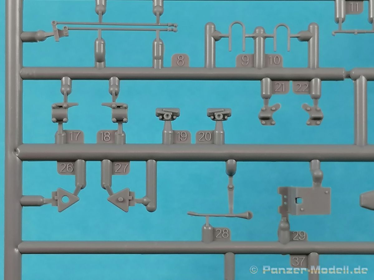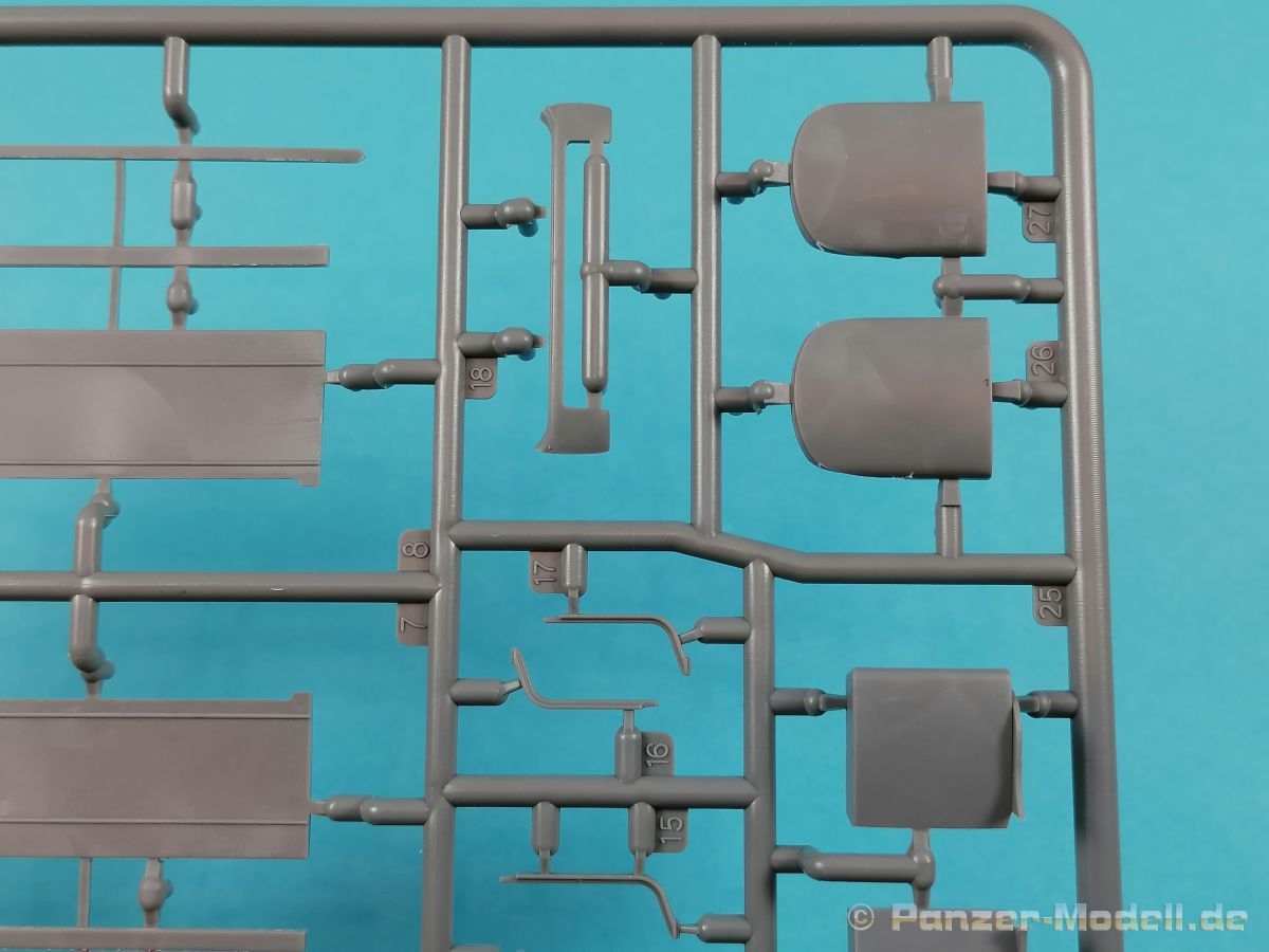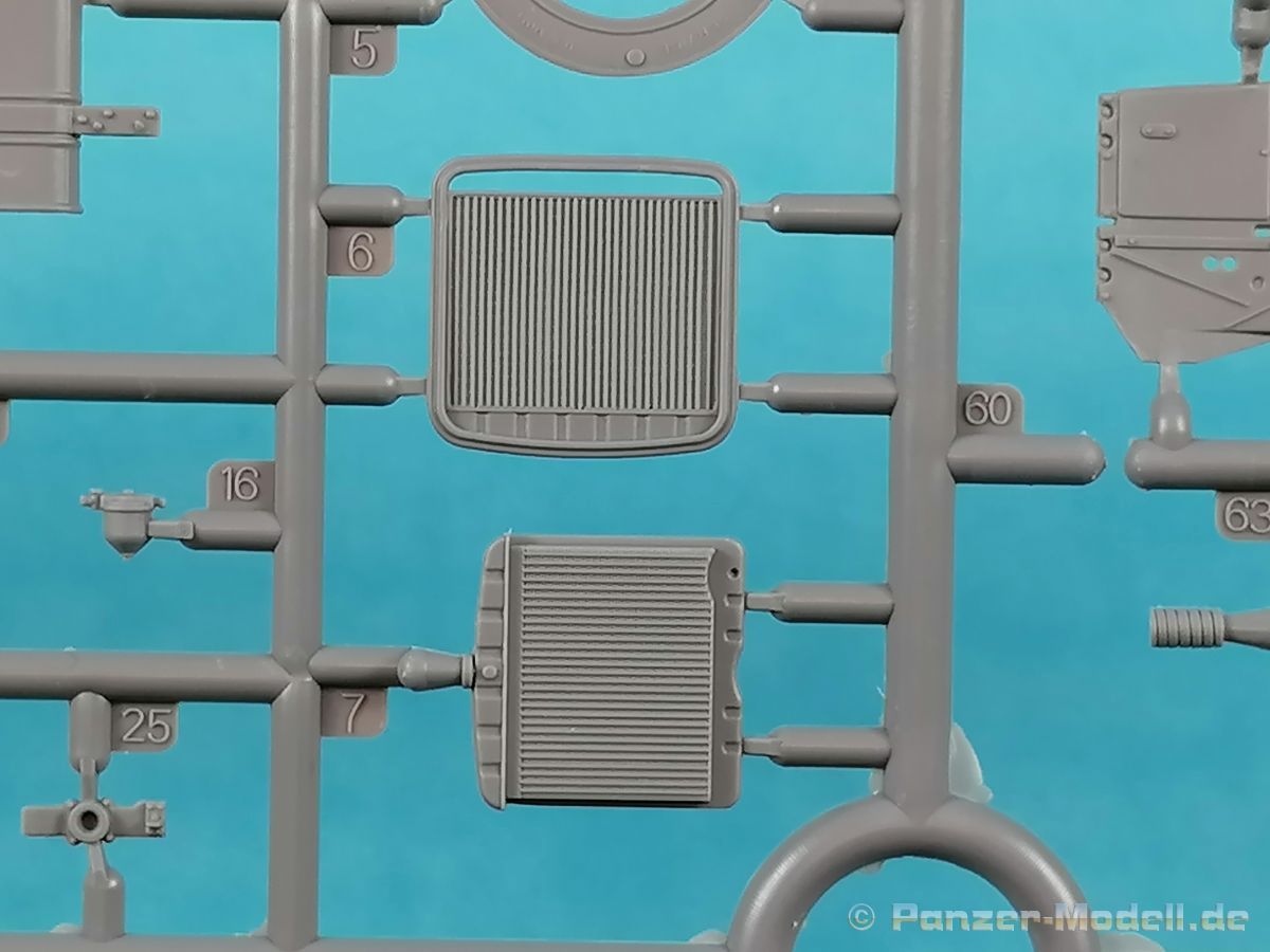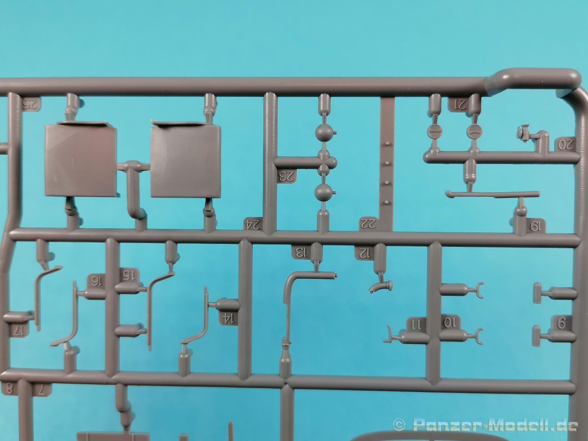 Von Chevrolet als Hersteller wurden zwischen 1940 bis August 1945 rund 150.000 Exemplare in den unterschiedlichsten Varianten produziert. Eingesetzt von den amerikanischen Streitkräften und deren Verbündeten. Mit zusätzlicher Ausrüstung wurde er dann zu einem K-51 Fernmeldewagen, der meist einen K-52 Einachs-Anhänger mit aufgelastetem Generator für den benötigten Strom zog. Es gab ihn in verschiedenen Varianten, die für Generatoren, Munition oder Wassertanks ausgelegt waren. In seiner Grundkonfiguration war er ein Lastanhänger mit Heckklappe. Es wurden fast 260.000 dieser Anhänger produziert. Der Karton mit Stülpdeckel enthält 23 hellgraue Rahmen, einen Klarsichtspritzling, 1 PE-Platine, 1 Metallkette, Decals und die Bauanleitung. MiniArt packt die Spritzlinge alle zusammen in eine Klarsichttüte. Der Klarsichtspritzling und die Decals sind noch einmal gesondert in eine kleinere Klarsichttüte geschützt eingepackt. Zudem befindet sich die PE-Platine gemäß MiniArt Standard in einem stabilen Kuvert aus Pappe. Schon auf den ersten Blick zeigt sich erneut eine sehr hohe Gußqualität. Alle Teile sind sauber gespritzt und ausgeformt. Verzug, Versatz oder Flash sind offensichtlich nicht vorhanden. Es gibt natürlich die bekannten Auswerfermarken, die aber erneut so auf den Teilen sitzten das man sie nicht bearbeiten/verspachteln muß, da sie auf den Innenseiten von Teilen sitzen und später dem Auge des Betrachters entzogen sind. Der Guß der Teile ist absolut auf der Höhe der Zeit und findet seinen Niederschlag auch in der Erstellung allerfeinster Bauteile. Wie üblich bei MiniArt ist die Detailfülle überwältigend. Sind diese bereits angegossen an diversen Bauteilen oder eigenständig beigelegt. Die Klarteile verdienen ihren Namen definitiv und weisen im Fall der Scheinwerfergläser auch eine feine Struktur auf. Auch wenn der Kit etwas “overengieered” erscheint, hier ist viel Bastelspaß gegeben. Prinzipiell kann man das Zugfahrzeug auf drei (wenn man den Motor mitzählt auf vier) Komponenten eingrenzen. Den Rahmen mit Motor, das Führerhaus mit Motorhaube, Kühler und den Schutzblechen sowie den Laderaum als Kastenausführung. Von dem im Bausatz enthaltenen Anhänger gibt es mittlerweile drei verschiedene Einzelmodelle, aber nur der Anhänger in diesem Set deckt alle Features der bisher produzierten ab. Und damit kommen wir zur ebenfalls typischen Bauanleitung von MiniArt. Neben dem üblichen gut gemachten Titelbild sind die Umschlagseiten mit insgesamt vier Bemalungsvorschlägen belegt. (siehe Bildteil). Auf Seite drei und vier sind die Spritzlinge in gewohnter Aufstellung zu finden, während der Baubeginn ab Seite fünf dokumentiert ist. Insgesamt 57 Bauabschnitte, teilweise mit Untergruppen hinterlegt, sind bis zum fertigen LKW abzuarbeiten. Weitere 18 Baustufen dokumentieren den Bau des Trailers mit allen Optionen. Allerdings sollte sich der geneigte Modellbauer die Zeit nehmen und den Bauplan vorab einmal zu studieren. Denn im Plan finden sich Hinweise z.B. welche Teile bei welcher Variante zu montieren sind; gleichwohl zur Verwendung diverser Optionsteile und wo eventuell Bohrungen zu machen sind etc. Das A und O ist wie bei vielen Kits das genaue und exakte Ausrichten des Leiterrahmens denn Fehler in diesem Bereich ziehen sich über den gesamten weiteren Bau hin… Das sollte aber recht flott gehen wenn man die Querträger aus den Folgestufen mit ins Kalkül zieht. Achsen, Blattfedern, Anhängerkupplung und weiter Teile finden ihren Platz. Der Motor, ein kleiner, feiner Bausatz im Bausatz, besticht ebenfalls durch filigrane und detaireiche Details. Lichtmaschine, Vergaser, Keilriemenscheiben mit Keilriemen, Zündverteiler und mehr erfreuen das Auge. Der Kühlergrill selbst ist perfekt umgesetzt und gibt den Blick in das Innere (bis zum Kühler) des Motorraums frei. Wer die Motorhaube geöffnet darstellen will braucht lediglich die Kabellage zu ergänzen. Auch die Spritzwand zum Motorraum punktet durch viele kleine, extra anzubringende (auch eine Ölkanne) Details. Die Räder sind einteilig und lediglich mit einer Reifenflanke zu vervollständigen und machen mit dem Reifenpofil eine gute Figur. Gut zu erkennen sind auch die Angaben des Herstellers auf den Reifen. Der Detailreichtum setzt sich auch in der Fahrerkabine bzw. im Kastenaufbau fort. Hier baut alles auf einer Grundplatte auf. Diese reicht von der Motortrennwand bis zum Heck. Instrumente werden mit Decals belegt. Ab und an kommen auch PEs zu Einsatz die entweder als Option oder direkt zu verbauen sind. Innenverkleidungen der Türen können punkten, ebenso die Möglichkeit die Fenster offen oder geschlossen darzustellen. Ebenfalls sehr schön reproduziert sind auch die Sitze und Türverkleidungen mit leichter Struktur. Die Scheibenwischer liegen als Kunststoffteil bzw. als PEs bei. Das Innenleben des Kastenaufbaus kann mit Rippen und Verstärkungen überzeugen. Auch der Außenbereich der Karosserie gefällt. Selbst die Regenrinnen finden ihren Platz… Optionen, wie schon geschrieben, sind allesamt im Bauplan dargestellt. Z.B. kann der Kühlergrill aus Plastik verwendet oder als Ätzteil verwendet werden. Um die Sache zu vereinfachen liegen Lehren bei. Löblich! Gleichwohl gibt es allgemeine Hinweise zu den Bemalungsmustern wo Bauteile angebaut oder weggelassen werden müssen. Und damit kommen wir noch zum Trailer, der qualitativ auf dem selben Level wie der Truck liegt. Alle Details sind mustergültig umgesetzt. Drei Varianten können gebaut werden. Als Pritsche, mit Spriegeln oder mit Verdeck. Die Pritschenelemente zeigen eine durchaus feine und für diesen Maßstab ausreichende Holzstruktur der Planken. Aufgrund der detaillierten Scharniere und Verschlüsse kann man die Pritschenwände optional auch abgeklappt bauen. Somit sind auch Verladeszenen möglich. Überzeugen kann durchaus auch das Verdeck. Leider liegt dem Kit keinerlei Beladung bei. Wer jetzt noch eine Farblegende vermisst hat, findet diese 