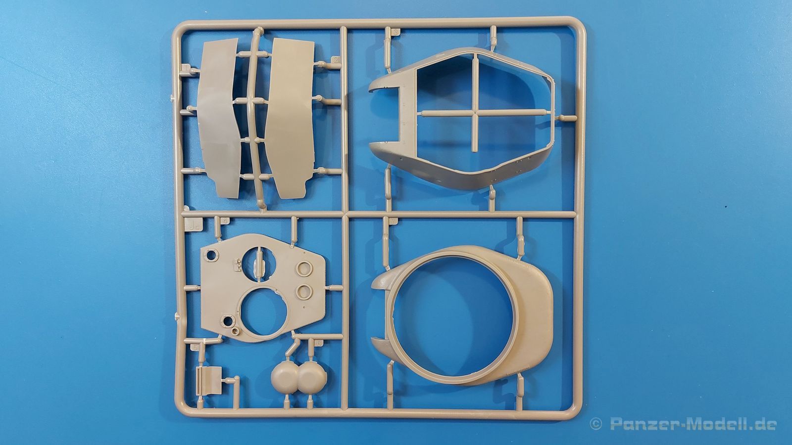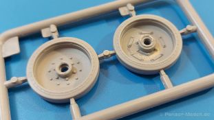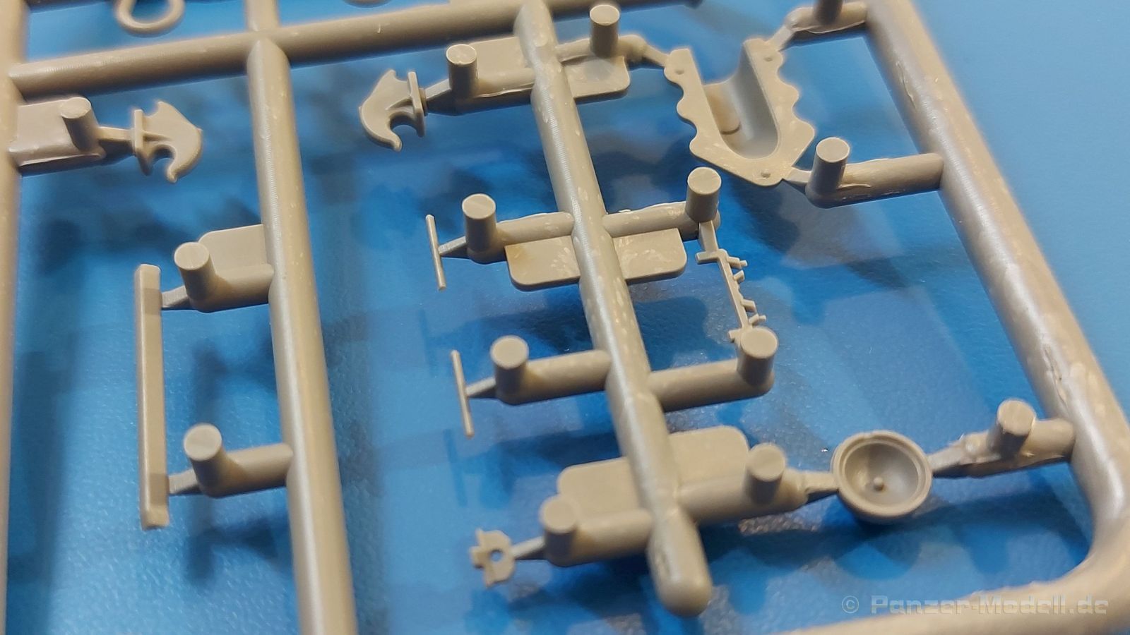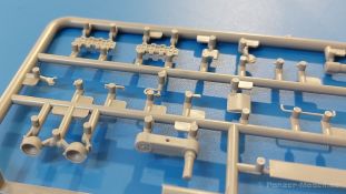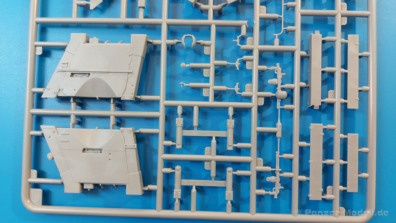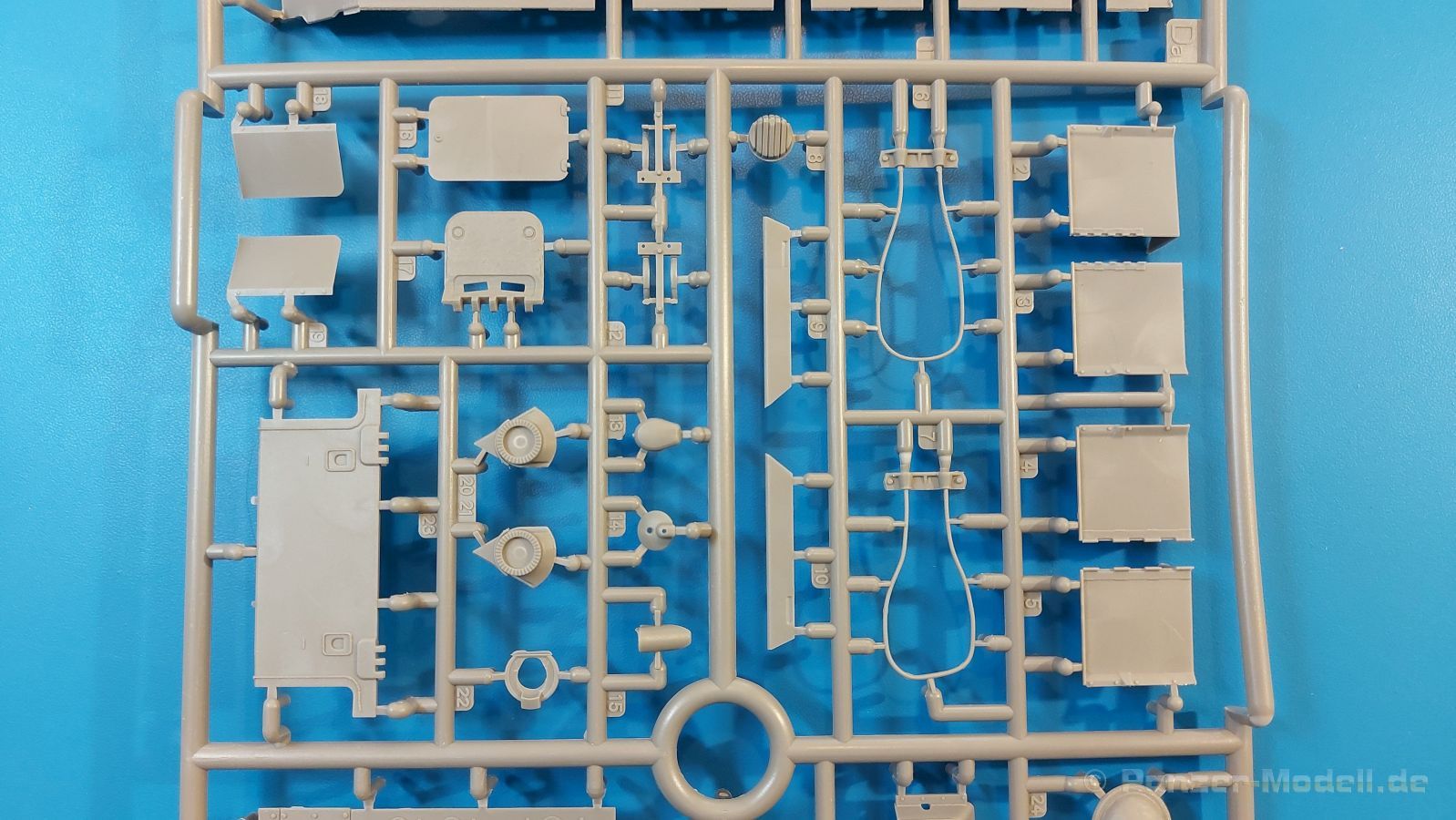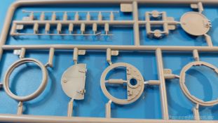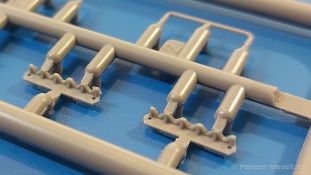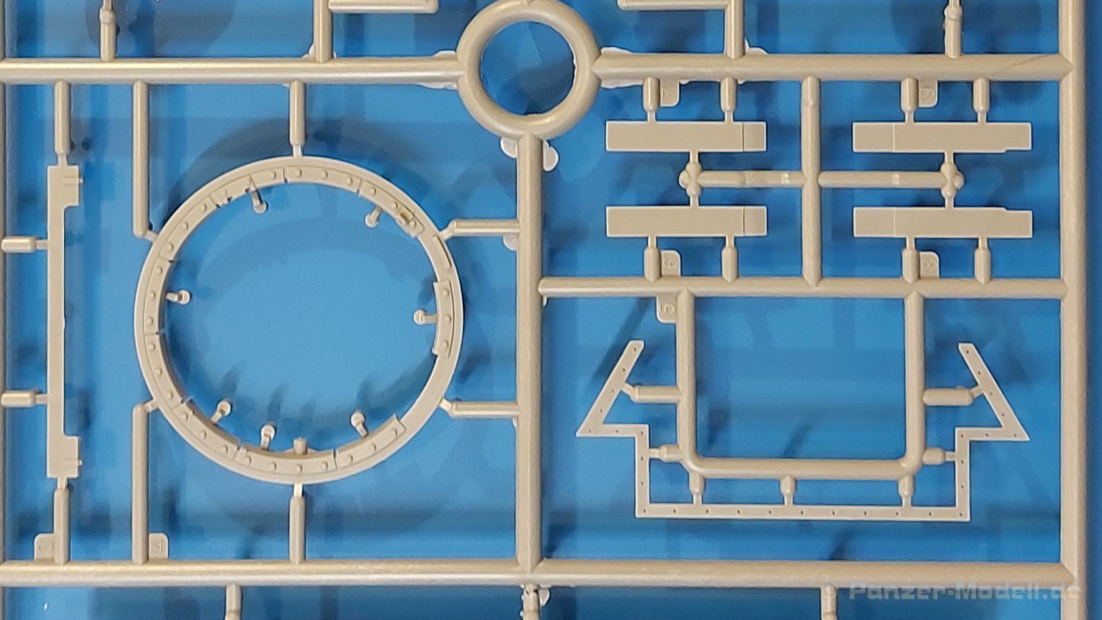 Das Original: Es gibt wohl kaum einen Militärmodellbauer, der den sowjetischen T-34 nicht kennt. Als einer der meistgebauten und am längsten im Einsatz befindlichen Panzer kann man ihn nicht übersehen. Seine Produktion zog sich von 1940 bis 1955 mit über 60.000 gebauten Exemplaren, die große Masse davon in den Jahren 1940-45. Seine schräge Panzerung war ein Novum der Zeit und bereitete den deutschen Gegnern einiges Kopfzerbrechen. Anfangs war er mit 2 MG und einer 76mm Kanone ausgerüstet, ab 1944 bekam er einen größeren Turm mit 85mm Kanone und ebenfalls 2 MG. Sein 500 PS Motor konnte ihn auf über 50 km/h beschleunigen. Der Bausatz: Unter der MiniArt Nummer 37069 gibt es bereits die tschechoslowakische Version mit voller Inneneinrichtung. Heute liegt vor uns der abgespeckte Bausatz ohne Inneneinrichtung. Der 385 x 240 x 75 mm große Karton enthält immer noch 62(!) hellgraue, 2 Klarsichtspritzlinge, 1 PE-Platine und ein Decalsheet (+Zusatzblatt). Wie bereits bei früheren T-34 Bausätzen von MiniArt sind sauber gespritzte und filigrane Teile sind die Norm. Verzug oder Versatz konnte ich nicht entdecken. Bemerkenswerten Grat konnte ich jetzt nur an den Laufrollen entdecken. Ich denke mal, dass die Formen ein paar Durchgänge mehr hinter sich haben, da ja auch andere Bausätze die gleichen Räder nutzen. Die Auswerfer sind ausnahmslos auf die Spritzrahmen gesetzt, so dass die Teile keine Spuren davon aufweisen. Auch wenn es keine Inneneinrichtung gibt, sind Innendetails an Wannenboden und Wänden zu finden, da es die gleichen Teile wie aus dem Interior-Bausatz sind. Die Wanne ist unterteilt in Boden, Bug-, Heck-, Seiten- und Trennwände. Die Bugplatte wird mit Seilhaken und funktionierenden Riegeln versehen. Ein interessantes Detail: je nach Version wird eine Kabelführung und ein Notek-Scheinwerfer montiert, wie man ihn von Wehrmachtsfahrzeugen kennt. Die Fahrerluke hat Details auf beiden Seiten inklusive Winkelspiegeln aus Klarsichtmaterial. Der Dom des Bug-MGs zeigt eine schöne Gussstruktur. Das MG mit Kugelblende kann beweglich eingebaut werden. Die Heckplatte mit den markanten Schraubenköpfen wird mit den, an den Enden ausgehöhlten, Auspuffrohren versehen und die runde Wartungsklappe angebracht. Nur für die Version 3 montiert man die kleinen, hinten querliegenden Kraftstoffbehälter. Auch die hinteren Seilhaken bekommen funktionierende Riegel aus PE und Plastik. Alle Versionen des Modelles erhalten die typischen Kraftstoffbehälter an den Seiten, zwei rechts, einer links mit feindetaillierten Halterungen, die mit PE Bändern verfeinert werden. Die Griffe an den Enden der Tanks sind ebenfalls aus PE-Material. Die typischen Eisgreifer sind natürlich dabei. Insgesamt 18 werden in 3 Paketen mittels PE-Ösen und -bändern auf der echten Kettenabdeckung angebracht. Für die beiden Abschleppseile gibt es nur die Seilkauschen. Die Seile stellt man selbst her. Der hintere Staukasten auf der rechten Kettenabdeckung kann ebenso wie der baugleiche vorn auf der linken Kettenabdeckung auch offen gebaut werden. Die linke Seite zeigt einige Merkmale der Nachkriegs-T34. Die sonst trompetenförmige Hupe wird durch ein kleineres Exemplar ersetzt, das an einer PW-Halterung montiert wird. Der einzige Fahrscheinwerfer ist innen hohl und wird mit einem geriffelten Klarsichtglas und einem Schutzgitter aus PE versehen. Für das Gitter gibt es eine Biegehilfe am Spritzling Da. Die große Säge kennt man bereits, die beiden Stahlseile ohne Kauschen in Halterungen sind mir ebenso neu am T34 wie auch das einsame Rücklicht in einer konischen Panzerung. Das Motordeck ist wie bei den Interior-Modellen mit allen separaten Lüfterklappen und Gittern versehen. Das große, hintere Gitter wird aus einem PE-Rahmen und -gitter ausgebaut. Das Fahrgestell beginnt bereits im Inneren mit den Federkästen, in die die schönen Druckfedern eingebaut werden. Alle Schwingarme sind separat ausgeführt. Die Räder mit Spinnwebspeichen und runden Durchbrüchen sehen sehr gut aus. Es liegt auch ein Laufrollenpaar mit Scheibenfelgen dabei, welches anstelle der linken, mittleren Laufrolle beim Bau der Version 6 benötigt wird. Leit- und Antriebsräder sind ebenfalls mit Durchbrüchen und Spinnwebspeichen versehen. Die Kettenglieder werden immer je ein Glied mit und eins ohne Führungszahn ineinander geklipst und sollten theoretisch auch beweglich bleiben, wenn die feinen Stifte das aushalten. Ein genauer Blick auf die Glieder zeigt uns nicht nur das Waffelmuster außen, sondern auch feine Gussnummern auf jedem Glied. Kommen wir zum Turm. Im Turm finden sich nur noch die Innenwände, das Rohrlager, der Verschluss und das koaxiale MG. Aus kristallklarem Material sind die Winkelspiegel im Dach und der Kommandantenluke und die Sichtblöcke der Kommandantenkuppel. Sowohl Kommandantenluke als auch Ladeschützenluke können offen oder geschlossen gebaut werden. Das Kanonenrohr ist aus einem Stück gegossen und an der Mündung ca. 3mm tief "aufgebohrt". Die Struktur des Turmes selbst und der Blende kommen glaubhaft rüber. Außen am Turm gibt es die üblichen Handgriffe. Haken zum Turmanheben, Nahverteidigungsstopfen, eine Antenne sowie die Panzerung der Dachlüfter sind weitere Details. Diesem Modell legt MiniArt Abziehbilder (Decals) für 7 Fahrzeuge und ein kleines Zusatzblatt mit tschechischen Kokarden bei. Die Decals sind seidenmatt mit wenig Rand.