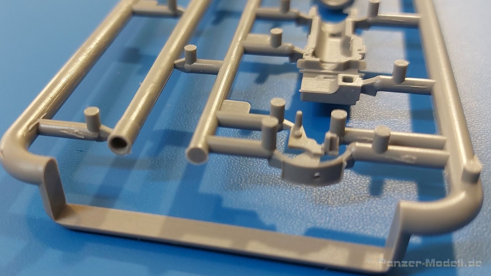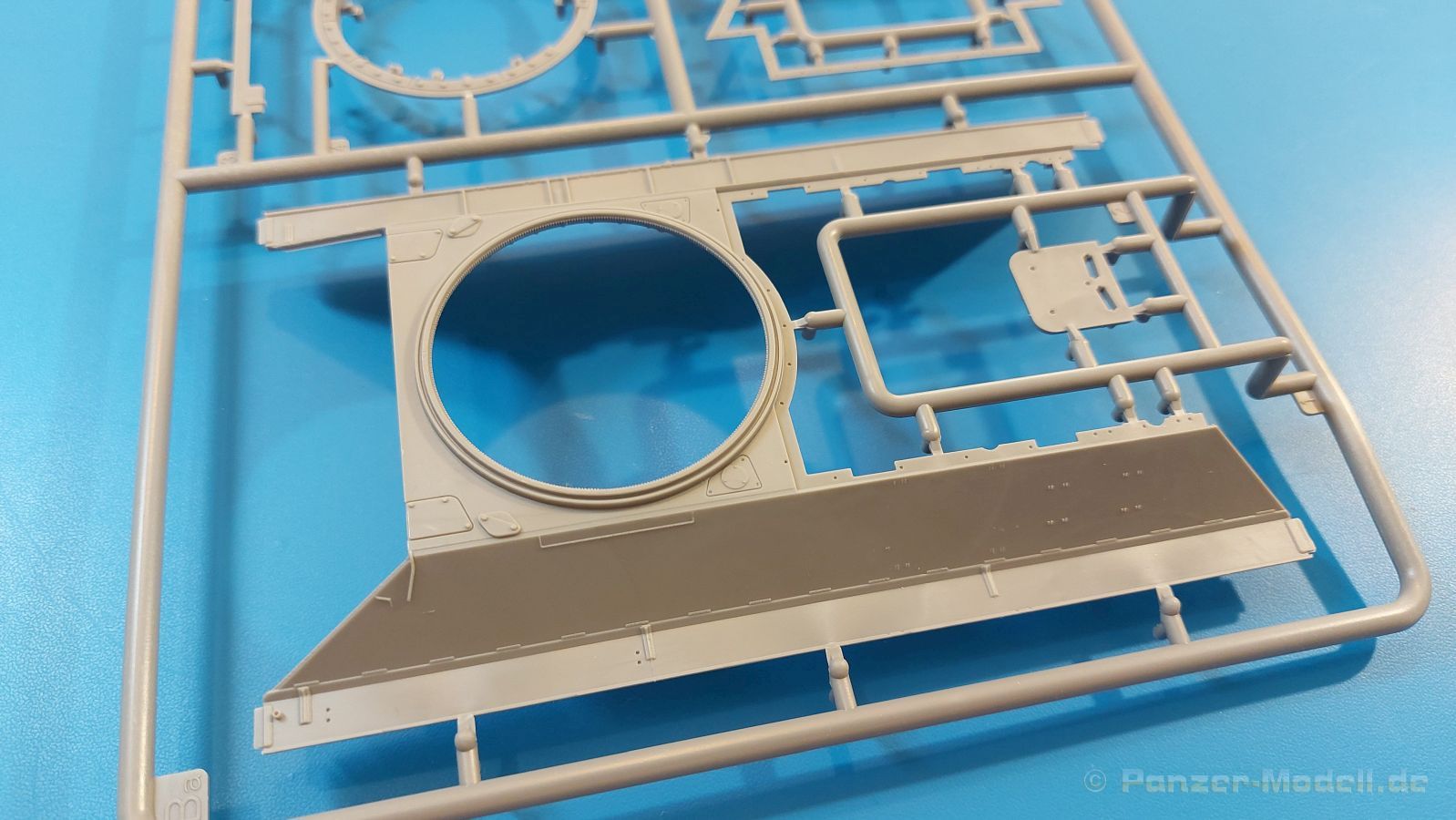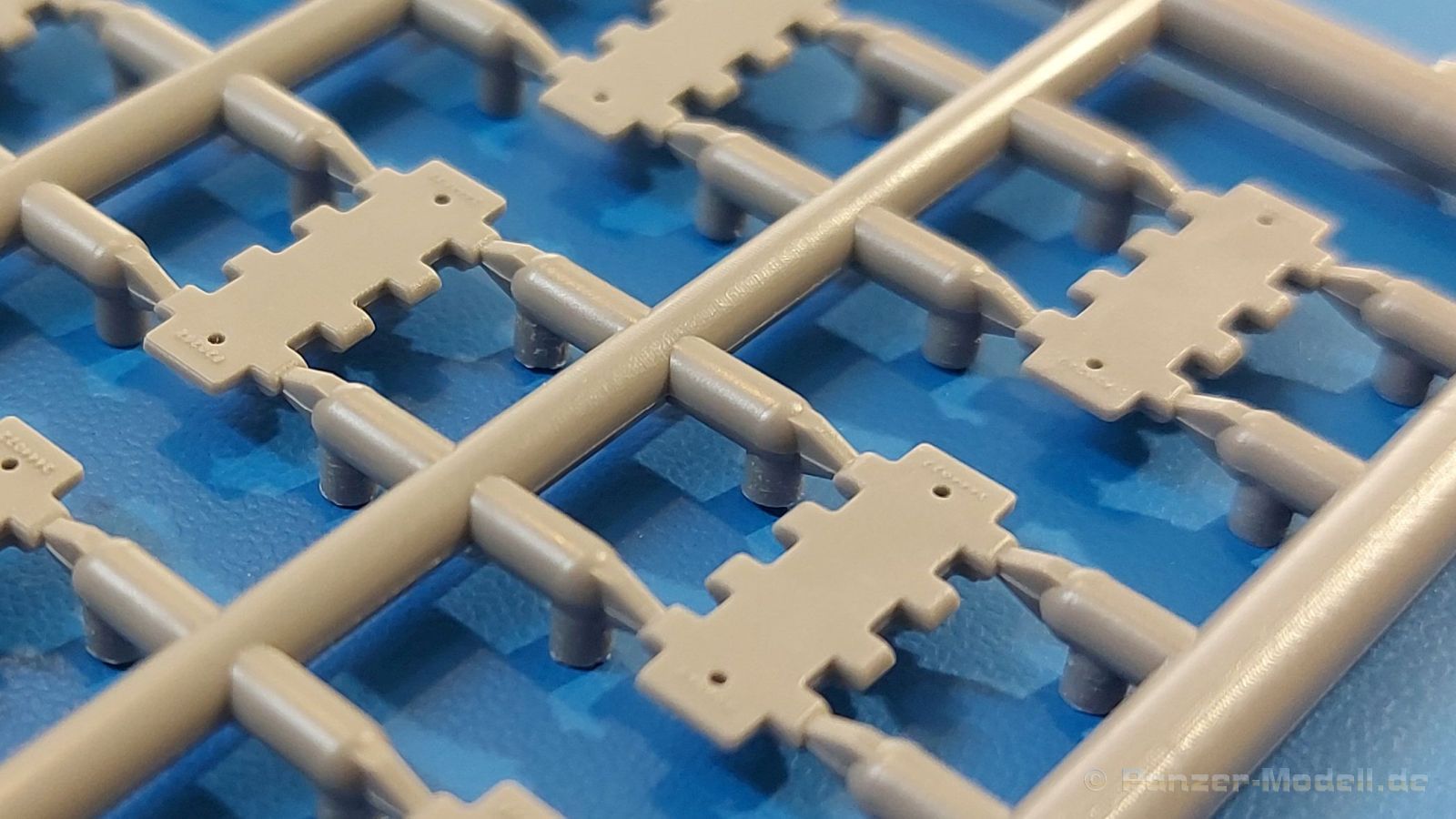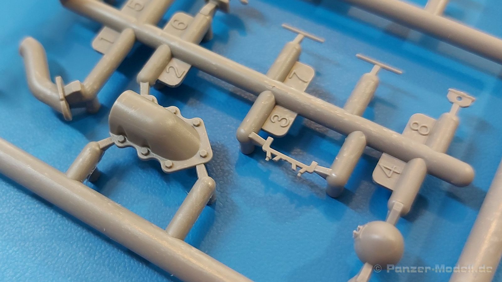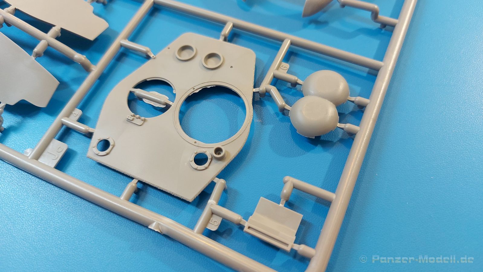 Das Original: Es gibt wohl kaum einen Militärmodellbauer, der den sowjetischen T-34 nicht kennt. Als einer der meistgebauten und am längsten im Einsatz befindlichen Panzer kann man ihn nicht übersehen. Seine Produktion zog sich von 1940 bis 1955 mit über 60.000 gebauten Exemplaren, die große Masse davon in den Jahren 1940-45. Seine schräge Panzerung war ein Novum der Zeit und bereitete den deutschen Gegnern einiges Kopfzerbrechen. Anfangs war er mit 2 MG und einer 76mm Kanone ausgerüstet, ab 1944 bekam er einen größeren Turm mit 85mm Kanone und ebenfalls 2 MG. Sein 500 PS Motor konnte ihn auf über 50 km/h beschleunigen. Der Bausatz: Unter der MiniArt Nummer 37069 gibt es bereits die tschechoslowakische Version mit voller Inneneinrichtung. Heute liegt vor uns der abgespeckte Bausatz ohne Inneneinrichtung. Der 385 x 240 x 75 mm große Karton enthält immer noch 62(!) hellgraue, 2 Klarsichtspritzlinge, 1 PE-Platine und ein Decalsheet (+Zusatzblatt). Wie bereits bei früheren T-34 Bausätzen von MiniArt sind sauber gespritzte und filigrane Teile sind die Norm. Verzug oder Versatz konnte ich nicht entdecken. Bemerkenswerten Grat konnte ich jetzt nur an den Laufrollen entdecken. Ich denke mal, dass die Formen ein paar Durchgänge mehr hinter sich haben, da ja auch andere Bausätze die gleichen Räder nutzen. Die Auswerfer sind ausnahmslos auf die Spritzrahmen gesetzt, so dass die Teile keine Spuren davon aufweisen. Auch wenn es keine Inneneinrichtung gibt, sind Innendetails an Wannenboden und Wänden zu finden, da es die gleichen Teile wie aus dem Interior-Bausatz sind. Die Wanne ist unterteilt in Boden, Bug-, Heck-, Seiten- und Trennwände. Die Bugplatte wird mit Seilhaken und funktionierenden Riegeln versehen. Ein interessantes Detail: je nach Version wird eine Kabelführung und ein Notek-Scheinwerfer montiert, wie man ihn von Wehrmachtsfahrzeugen kennt. Die Fahrerluke hat Details auf beiden Seiten inklusive Winkelspiegeln aus Klarsichtmaterial. Der Dom des Bug-MGs zeigt eine schöne Gussstruktur. Das MG mit Kugelblende kann beweglich eingebaut werden. Die Heckplatte mit den markanten Schraubenköpfen wird mit den, an den Enden ausgehöhlten, Auspuffrohren versehen und die runde Wartungsklappe angebracht. Nur für die Version 3 montiert man die kleinen, hinten querliegenden Kraftstoffbehälter. Auch die hinteren Seilhaken bekommen funktionierende Riegel aus PE und Plastik. Alle Versionen des Modelles erhalten die typischen Kraftstoffbehälter an den Seiten, zwei rechts, einer links mit feindetaillierten Halterungen, die mit PE Bändern verfeinert werden. Die Griffe an den Enden der Tanks sind ebenfalls aus PE-Material. Die typischen Eisgreifer sind natürlich dabei. Insgesamt 18 werden in 3 Paketen mittels PE-Ösen und -bändern auf der echten Kettenabdeckung angebracht. Für die beiden Abschleppseile gibt es nur die Seilkauschen. Die Seile stellt man selbst her. Der hintere Staukasten auf der rechten Kettenabdeckung kann ebenso wie der baugleiche vorn auf der linken Kettenabdeckung auch offen gebaut werden. Die linke Seite zeigt einige Merkmale der Nachkriegs-T34. Die sonst trompetenförmige Hupe wird durch ein kleineres Exemplar ersetzt, das an einer PW-Halterung montiert wird. Der einzige Fahrscheinwerfer ist innen hohl und wird mit einem geriffelten Klarsichtglas und einem Schutzgitter aus PE versehen. Für das Gitter gibt es eine Biegehilfe am Spritzling Da. Die große Säge kennt man bereits, die beiden Stahlseile ohne Kauschen in Halterungen sind mir ebenso neu am T34 wie auch das einsame Rücklicht in einer konischen Panzerung. Das Motordeck ist wie bei den Interior-Modellen mit allen separaten Lüfterklappen und Gittern versehen. Das große, hintere Gitter wird aus einem PE-Rahmen und -gitter ausgebaut. Das Fahrgestell beginnt bereits im Inneren mit den Federkästen, in die die schönen Druckfedern eingebaut werden. Alle Schwingarme sind separat ausgeführt. Die Räder mit Spinnwebspeichen und runden Durchbrüchen sehen sehr gut aus. Es liegt auch ein Laufrollenpaar mit Scheibenfelgen dabei, welches anstelle der linken, mittleren Laufrolle beim Bau der Version 6 benötigt wird. Leit- und Antriebsräder sind ebenfalls mit Durchbrüchen und Spinnwebspeichen versehen. Die Kettenglieder werden immer je ein Glied mit und eins ohne Führungszahn ineinander geklipst und sollten theoretisch auch beweglich bleiben, wenn die feinen Stifte das aushalten. Ein genauer Blick auf die Glieder zeigt uns nicht nur das Waffelmuster außen, sondern auch feine Gussnummern auf jedem Glied. Kommen wir zum Turm. Im Turm finden sich nur noch die Innenwände, das Rohrlager, der Verschluss und das koaxiale MG. Aus kristallklarem Material sind die Winkelspiegel im Dach und der Kommandantenluke und die Sichtblöcke der Kommandantenkuppel. Sowohl Kommandantenluke als auch Ladeschützenluke können offen oder geschlossen gebaut werden. Das Kanonenrohr ist aus einem Stück gegossen und an der Mündung ca. 3mm tief "aufgebohrt". Die Struktur des Turmes selbst und der Blende kommen glaubhaft rüber. Außen am Turm gibt es die üblichen Handgriffe. Haken zum Turmanheben, Nahverteidigungsstopfen, eine Antenne sowie die Panzerung der Dachlüfter sind weitere Details. Diesem Modell legt MiniArt Abziehbilder (Decals) für 7 Fahrzeuge und ein kleines Zusatzblatt mit tschechischen Kokarden bei. Die Decals sind seidenmatt mit wenig Rand.