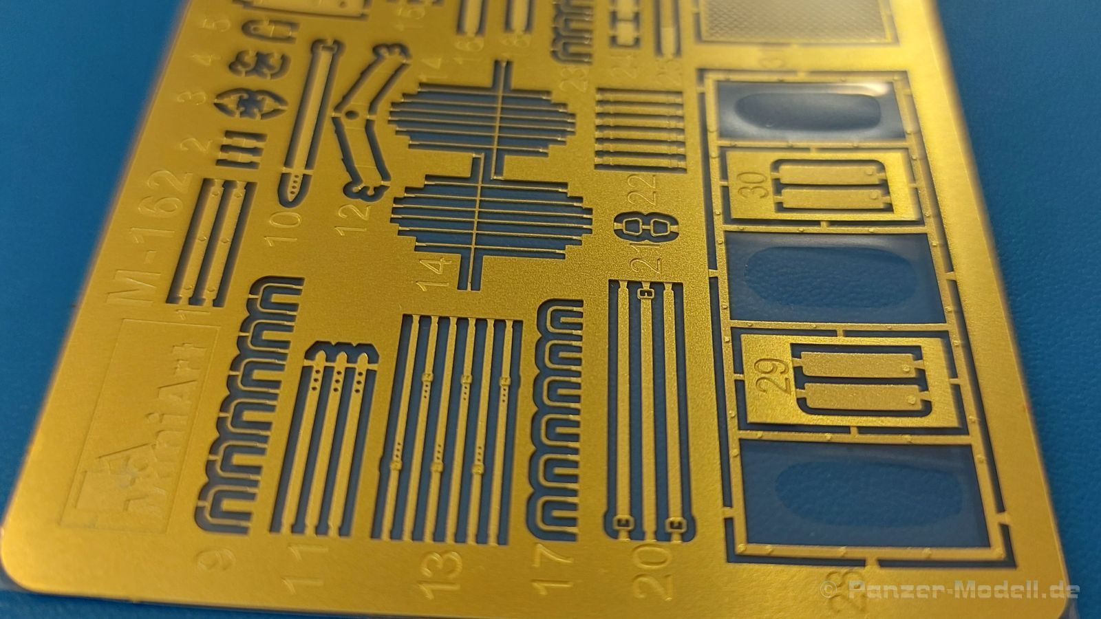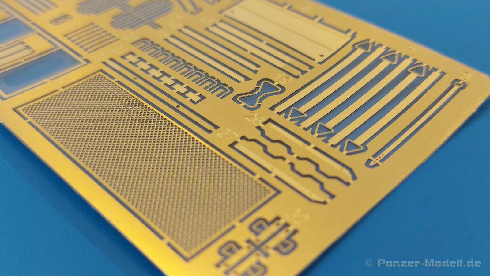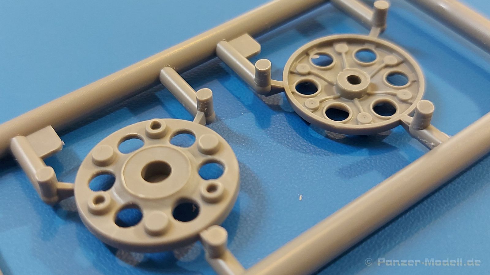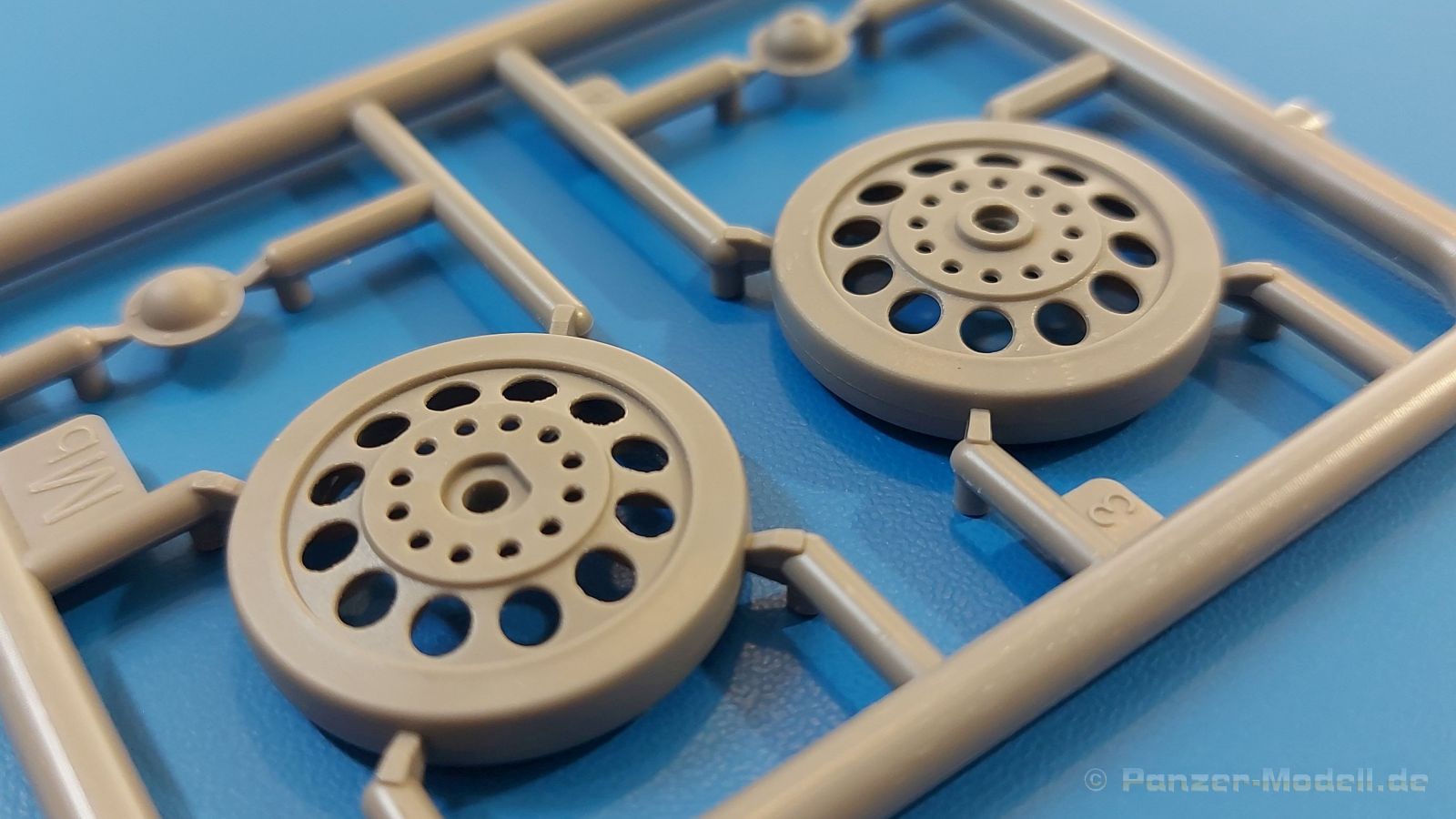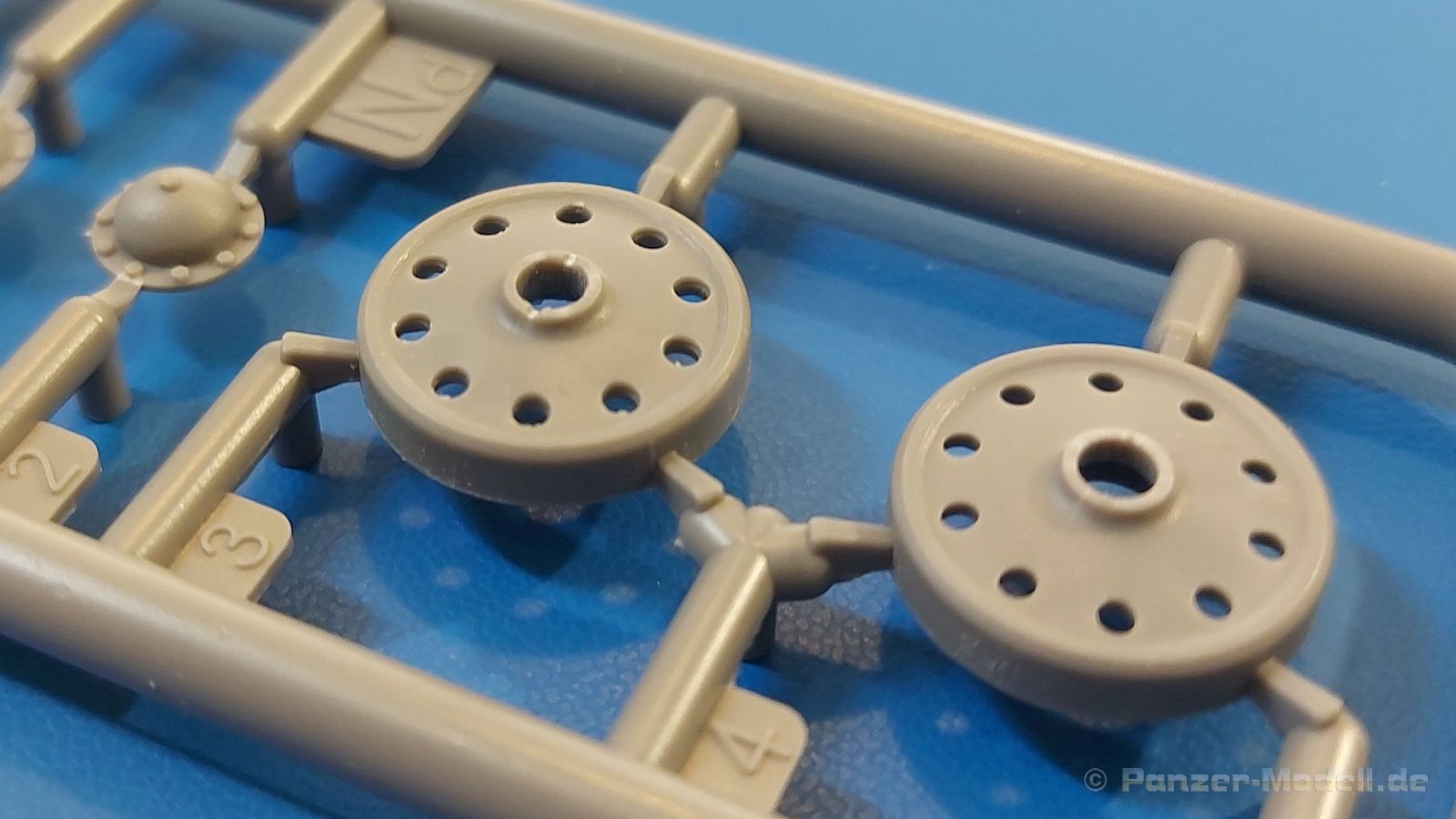 Das Original: Es gibt wohl kaum einen Militärmodellbauer, der den sowjetischen T-34 nicht kennt. Als einer der meistgebauten und am längsten im Einsatz befindlichen Panzer kann man ihn nicht übersehen. Seine Produktion zog sich von 1940 bis 1955 mit über 60.000 gebauten Exemplaren, die große Masse davon in den Jahren 1940-45. Seine schräge Panzerung war ein Novum der Zeit und bereitete den deutschen Gegnern einiges Kopfzerbrechen. Anfangs war er mit 2 MG und einer 76mm Kanone ausgerüstet, ab 1944 bekam er einen größeren Turm mit 85mm Kanone und ebenfalls 2 MG. Sein 500 PS Motor konnte ihn auf über 50 km/h beschleunigen. Der Bausatz: Unter der MiniArt Nummer 37069 gibt es bereits die tschechoslowakische Version mit voller Inneneinrichtung. Heute liegt vor uns der abgespeckte Bausatz ohne Inneneinrichtung. Der 385 x 240 x 75 mm große Karton enthält immer noch 62(!) hellgraue, 2 Klarsichtspritzlinge, 1 PE-Platine und ein Decalsheet (+Zusatzblatt). Wie bereits bei früheren T-34 Bausätzen von MiniArt sind sauber gespritzte und filigrane Teile sind die Norm. Verzug oder Versatz konnte ich nicht entdecken. Bemerkenswerten Grat konnte ich jetzt nur an den Laufrollen entdecken. Ich denke mal, dass die Formen ein paar Durchgänge mehr hinter sich haben, da ja auch andere Bausätze die gleichen Räder nutzen. Die Auswerfer sind ausnahmslos auf die Spritzrahmen gesetzt, so dass die Teile keine Spuren davon aufweisen. Auch wenn es keine Inneneinrichtung gibt, sind Innendetails an Wannenboden und Wänden zu finden, da es die gleichen Teile wie aus dem Interior-Bausatz sind. Die Wanne ist unterteilt in Boden, Bug-, Heck-, Seiten- und Trennwände. Die Bugplatte wird mit Seilhaken und funktionierenden Riegeln versehen. Ein interessantes Detail: je nach Version wird eine Kabelführung und ein Notek-Scheinwerfer montiert, wie man ihn von Wehrmachtsfahrzeugen kennt. Die Fahrerluke hat Details auf beiden Seiten inklusive Winkelspiegeln aus Klarsichtmaterial. Der Dom des Bug-MGs zeigt eine schöne Gussstruktur. Das MG mit Kugelblende kann beweglich eingebaut werden. Die Heckplatte mit den markanten Schraubenköpfen wird mit den, an den Enden ausgehöhlten, Auspuffrohren versehen und die runde Wartungsklappe angebracht. Nur für die Version 3 montiert man die kleinen, hinten querliegenden Kraftstoffbehälter. Auch die hinteren Seilhaken bekommen funktionierende Riegel aus PE und Plastik. Alle Versionen des Modelles erhalten die typischen Kraftstoffbehälter an den Seiten, zwei rechts, einer links mit feindetaillierten Halterungen, die mit PE Bändern verfeinert werden. Die Griffe an den Enden der Tanks sind ebenfalls aus PE-Material. Die typischen Eisgreifer sind natürlich dabei. Insgesamt 18 werden in 3 Paketen mittels PE-Ösen und -bändern auf der echten Kettenabdeckung angebracht. Für die beiden Abschleppseile gibt es nur die Seilkauschen. Die Seile stellt man selbst her. Der hintere Staukasten auf der rechten Kettenabdeckung kann ebenso wie der baugleiche vorn auf der linken Kettenabdeckung auch offen gebaut werden. Die linke Seite zeigt einige Merkmale der Nachkriegs-T34. Die sonst trompetenförmige Hupe wird durch ein kleineres Exemplar ersetzt, das an einer PW-Halterung montiert wird. Der einzige Fahrscheinwerfer ist innen hohl und wird mit einem geriffelten Klarsichtglas und einem Schutzgitter aus PE versehen. Für das Gitter gibt es eine Biegehilfe am Spritzling Da. Die große Säge kennt man bereits, die beiden Stahlseile ohne Kauschen in Halterungen sind mir ebenso neu am T34 wie auch das einsame Rücklicht in einer konischen Panzerung. Das Motordeck ist wie bei den Interior-Modellen mit allen separaten Lüfterklappen und Gittern versehen. Das große, hintere Gitter wird aus einem PE-Rahmen und -gitter ausgebaut. Das Fahrgestell beginnt bereits im Inneren mit den Federkästen, in die die schönen Druckfedern eingebaut werden. Alle Schwingarme sind separat ausgeführt. Die Räder mit Spinnwebspeichen und runden Durchbrüchen sehen sehr gut aus. Es liegt auch ein Laufrollenpaar mit Scheibenfelgen dabei, welches anstelle der linken, mittleren Laufrolle beim Bau der Version 6 benötigt wird. Leit- und Antriebsräder sind ebenfalls mit Durchbrüchen und Spinnwebspeichen versehen. Die Kettenglieder werden immer je ein Glied mit und eins ohne Führungszahn ineinander geklipst und sollten theoretisch auch beweglich bleiben, wenn die feinen Stifte das aushalten. Ein genauer Blick auf die Glieder zeigt uns nicht nur das Waffelmuster außen, sondern auch feine Gussnummern auf jedem Glied. Kommen wir zum Turm. Im Turm finden sich nur noch die Innenwände, das Rohrlager, der Verschluss und das koaxiale MG. Aus kristallklarem Material sind die Winkelspiegel im Dach und der Kommandantenluke und die Sichtblöcke der Kommandantenkuppel. Sowohl Kommandantenluke als auch Ladeschützenluke können offen oder geschlossen gebaut werden. Das Kanonenrohr ist aus einem Stück gegossen und an der Mündung ca. 3mm tief "aufgebohrt". Die Struktur des Turmes selbst und der Blende kommen glaubhaft rüber. Außen am Turm gibt es die üblichen Handgriffe. Haken zum Turmanheben, Nahverteidigungsstopfen, eine Antenne sowie die Panzerung der Dachlüfter sind weitere Details. Diesem Modell legt MiniArt Abziehbilder (Decals) für 7 Fahrzeuge und ein kleines Zusatzblatt mit tschechischen Kokarden bei. Die Decals sind seidenmatt mit wenig Rand.