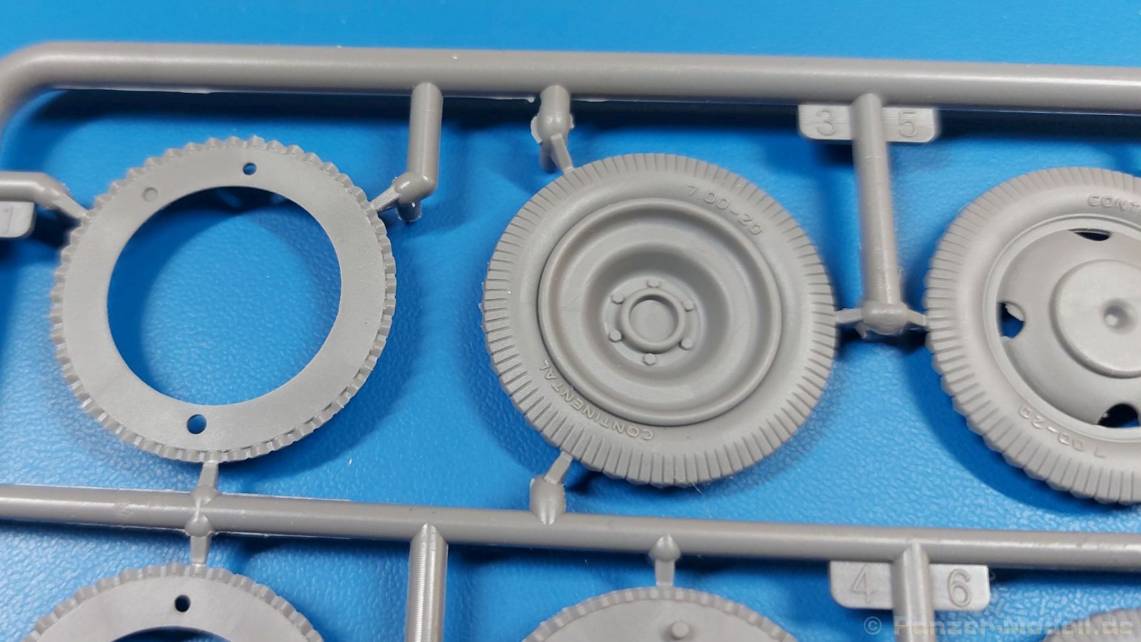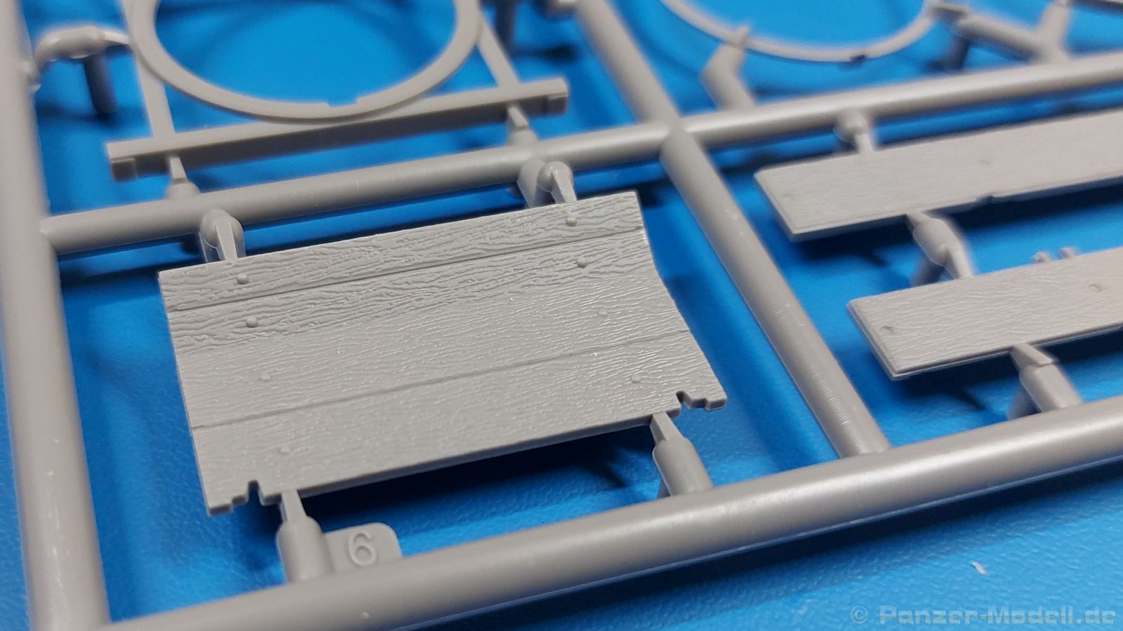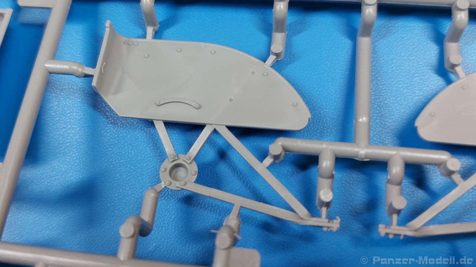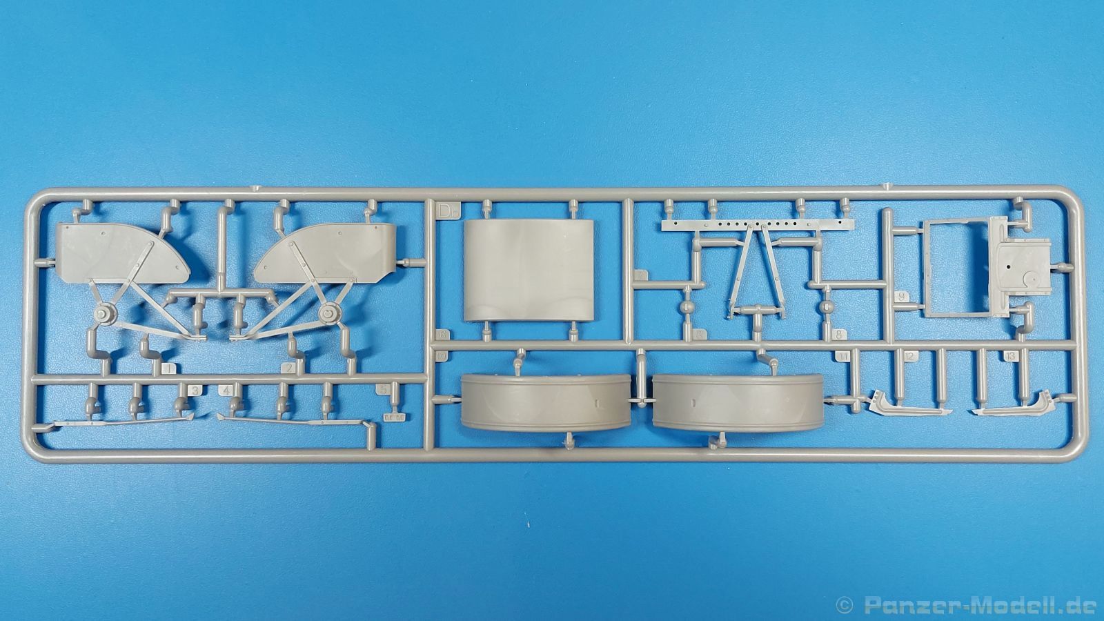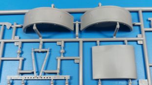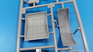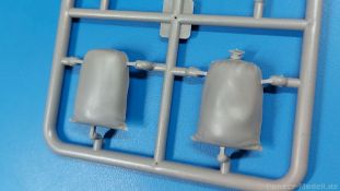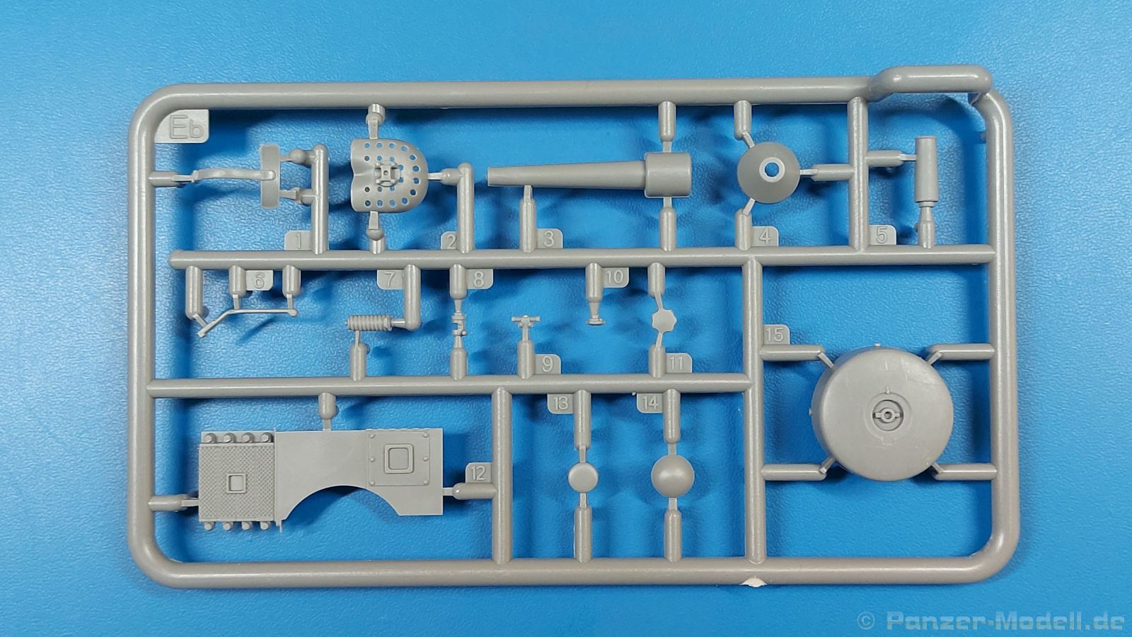 Das Original: Der Bulldog war eigentlich ein für den Einzylinder Glühkopfmotor, mit dem Säge-, Mühlen-, Steinbrecher- und Dreschmaschinen angetrieben wurden, bis man entdeckte, dass sich der Motor auch für Ackerschlepper eignet. Der Schlepper der Firma Lanz mit der Bezeichnung D8506, auch Ackerluft-Bulldog genannt, wurde zwischen 1934 und 1955 hergestellt und wog über 3 Tonnen. Sein 10 Liter Motor mit 30 bzw. 35 PS (22kW/25,6 kW) konnte ihn bis 17,7 km/h beschleunigen. Unter anderem kann er mit Gasöl, Schweröl, Diesel, Petroleum und Pflanzenöl betrieben werden (Vielstoffmotor). In der Landwirtschaft eingesetzt wurde er zum Ziehen von Lasten und bedienen landwirtschaftlicher Geräte eingesetzt, aber auch die Wehrmacht hat ihn genutzt. Der Bausatz: Von der ukrainischen Firma MiniArt gibt es inzwischen etliche Modelle des Lanz Bulldog in 1:35, teils solo, teils mit Anhänger, die sich z.B. in der Bereifung, der Auslegung der Luftansaugung oder der Auspuffanlage unterscheiden. Der 385 x 240 x 60 mm große Stülpdeckelkarton enthält in eine Klarsichttüte verpackt für… · den Traktor: 9 hellgraue, 1 Klarsichtspritzling, 2 Plastikreifen, 1 PE-Platine MiniArt bietet gute Qualität! Man erblickt sauber gespritzte und filigrane Teile. Verzug oder Versatz konnte ich nicht entdecken. Es gibt etwas feinen Grat, wie z.B. auf den Laufflächen der großen Traktorhinterreifen, aber der verschwindet, sobald er das Bastelmesser sieht. Die Auswerfer sind fast ausnahmslos auf die Spritzrahmen gesetzt, so dass die Teile so gut wie keine Spuren davon aufweisen, bzw. nur an Stellen, die nach dem Zusammenbau nicht mehr zu sehen sind. Da der Bulldog in rahmenloser Blockbauweise hergestellt wurde, gibt es große Teile für den Block, der Motor, Getriebe und Hinterachse aufnimmt. So einige Wartungsdeckel mit ihrer prominenten Verschraubung sind bereits angegossen. Es gibt auch einige Kleinteile, die aufgebohrt werden müssen, wenn man die außenliegenden (Kraftstoff? Öl?) Leitungen, die aus Draht selbst hergestellt werden müssten, anbringen möchte. Auffällig ist der Glühkopf, der mit PEs und einer Sechskantmutter weiter detailliert wird. Am Heck gibt es noch eine einfache Anhängekupplung. Der Einsteckbolzen, um den beiliegenden Anhänger anzuhängen, ist bereits mit eingegossen. Da muss man dann improvisieren. Außenliegende Gestänge und Federn liegen als separate Teile bei. Die Motorhaube besteht aus Front-, Rücken-, Seitenteilen und der oberen Abdeckung, die noch 3 Wartungsdeckel erhält. Die Seitenteile wiesen eine sehr schöne Gitterstruktur und Schraubenköpfe im Kühlerbereich auf beiden Seiten auf. Am Rückenteil ist diesmal der Rahmen für die Windschutzscheibe bereits angegossen. Er bekommt noch kleine Seitenflügel. Die Scheibe selbst ist aus kristallklarem Klarsichtmaterial. Einen Scheibenwischer aus PE gibt es auch noch. Natürlich bekommt die Front das Lanz Bulldog PE, das genügend Tiefe hat, dass man die Buchstaben und den Rand leicht anmalen kann. Der D 8506 hat den hochaufragenden Luftansaugstutzen an der linken Seite, der an Teil Eb12 anschließt. Da auch das Seitenteil für die Version ohne den Stutzen dabei ist, darauf achten, dass man nichts verwechselt! Interessant wird auch die Plattform für den Fahrer. Das Riffelblech ist sehr gut dargestellt, aber… es gibt nur ein Pedal, das Kupplungspedal! Keine Angst MiniArt ist da kein Fehler unterlaufen, denn gemäß meiner kurzen Recherche wird dieser Bulldog wohl mit dem Handbremshebel links vom Fahrersitz gebremst und auch festgestellt. Zum Beschleunigen gibt es einen Handgashebel, der an der rechten Seite der Plattform angebracht wird. Der Schalthebel mit Kugelknauf für 3 Vorwärts- und 1 Rückwärtsgang ist natürlich auch dabei. Der Fahrer hat einen schönen, gelochten Schalensitz mit einfacher Rückenlehne. Der Sitz ist mit einem Blechstreifen an der Plattform angebracht und sitzt auf einer Feder auf. Lenkstange und -rad sind zwar dabei, werden aber unter bestimmten Umständen weggelassen. Mehr dazu später. Unter der Plattform wird noch ein Staukasten angebracht, dessen Deckel einen schönen Flügelmutterverschluss zeigt. Die hinteren, sehr ausladenden Kotflügel bilden gleichzeitig hinten offene Seitenwände für den Fahrer. Auf die Kotflügel kommen Rücklichter mit klaren Gläsern und weiteres PE-Gestänge sichert die Kotflügel nach vorn. Innen werden zwei Stützstangen für das Dach angebracht. Das Dach ist auch innen struktiert. Am Gestänge der Kotflügel wird eine hinten querliegende, gelochte Traverse angebracht, die zur Aufnahme von landwirtschaftlichen Gerätschaften dient. Die Vorderachse besteht aus dem Querträger, den Gelenkköpfen, Lenkgestänge und Stabilisatoren. Gemäß dem Aufbau der Teile ist ein möglicher Lenkeinschlag nicht vorgesehen. Auch eine kleinere Anhängevorrichtung mit angegossenem Kupplungsbolzen gibt es. An der linken Seite wird der große Luftansaugstutzen mit Regenschutz und der noch größere Auspuff angebracht. Der Auspuff kommt diesmal ohne PE-Schelle aus. Das Endrohr ist einige Millimeter ausgehöhlt. Die Hinterräder haben beim D 8506 Gummireifen, die am Modell aus Felgeninnen- und Außenseiten mit angegossenen Reifenflanken, die wiederum einen Teil des Profils darstellen und separaten Laufflächen mit dem Rest des groben Profils. Die Vorderräder setzen sich aus je 5 Teilen zusammen, drei Scheiben, die durch ihre Form gut die Profiltiefe wiedergeben und wie bei den Hinterrädern Felgeninnen- und Außenseiten mit angegossenen Reifenflanken. Alle Reifenflanken tragen in erhabenen Buchstaben den Herstellernamen Continental und die Reifengrößen. Auch die Vorderräder bekommen viertelkreisförmige Kotflügel, die an zwei querliegenden Stangen angebracht werden. Auf die Kotflügel klebt man eine weitere Querstange, die die ausgehöhlten Scheinwerfer mit innenliegenden Leuchtkörpern beinhalten. Fein geriffelte Klarsichtscheiben schließen die Schweinwerfer. Links und rechts zwische