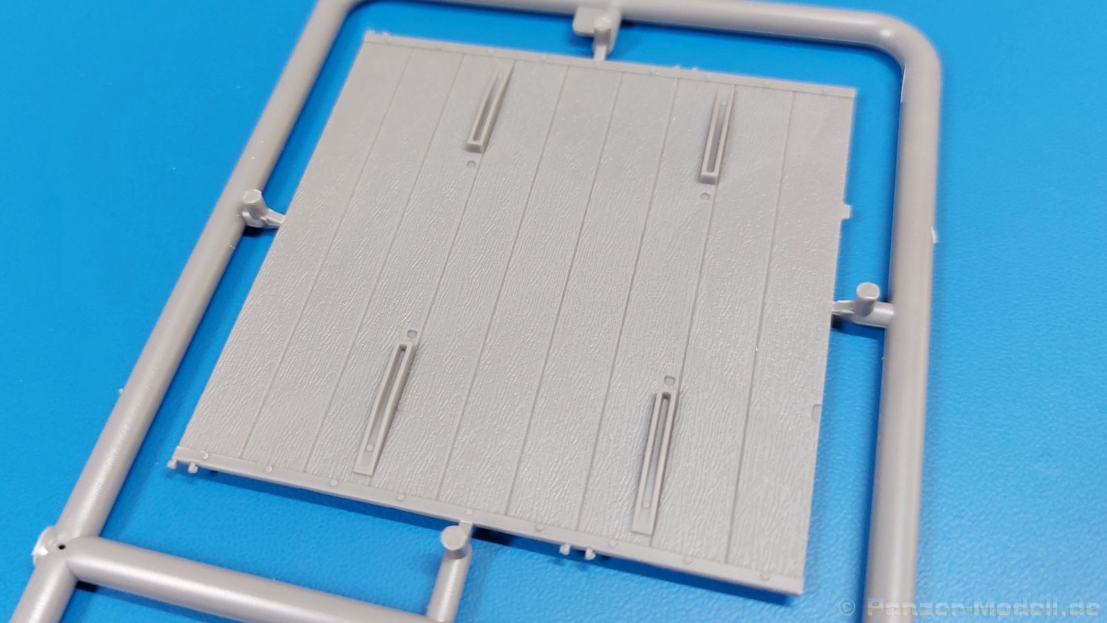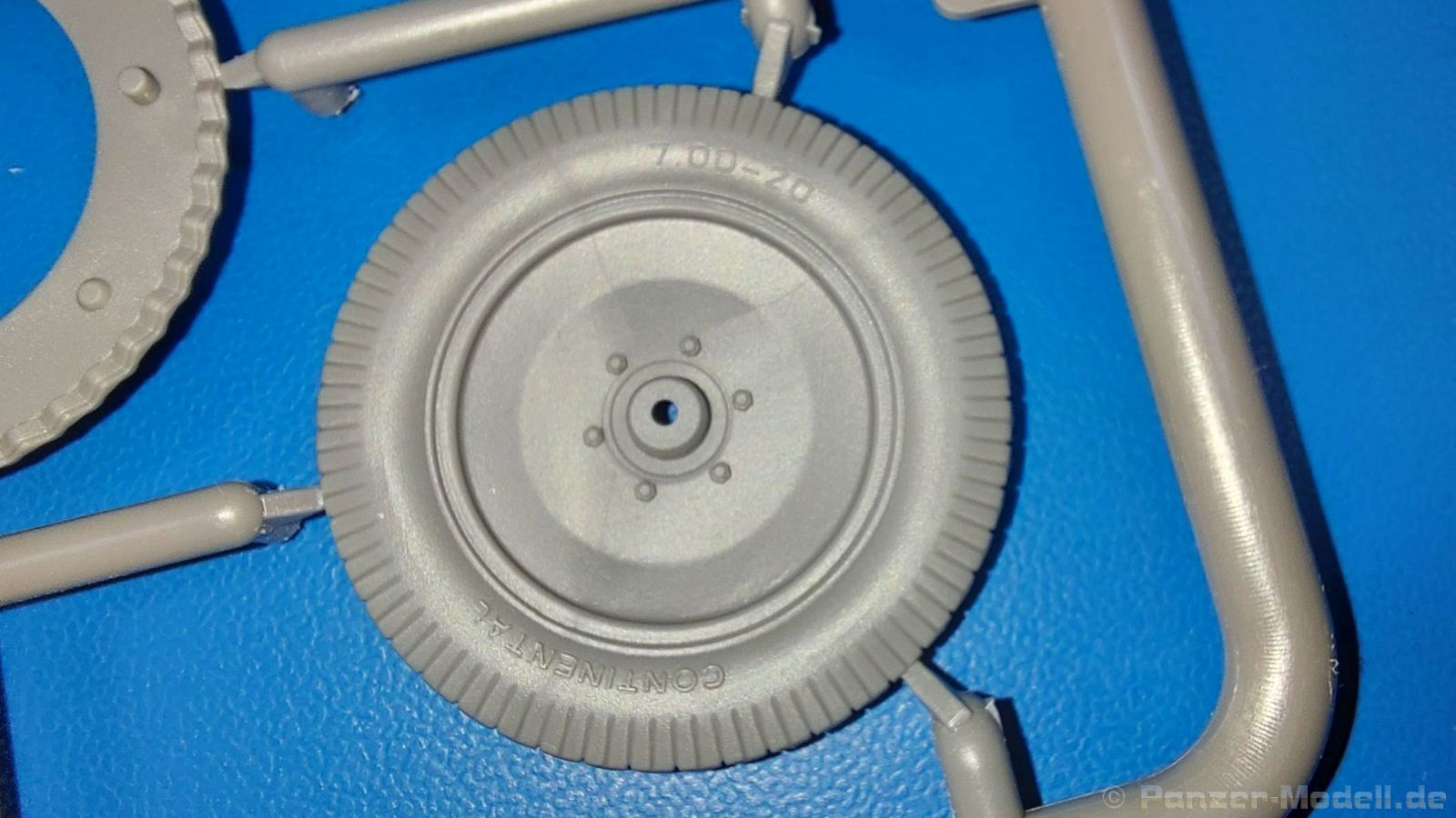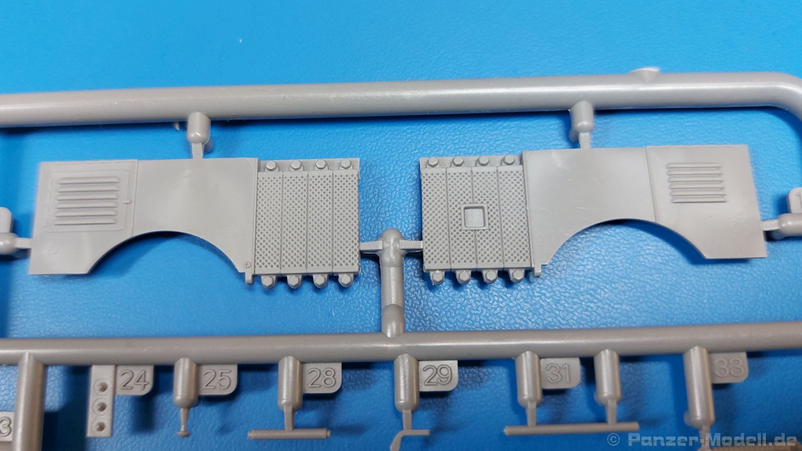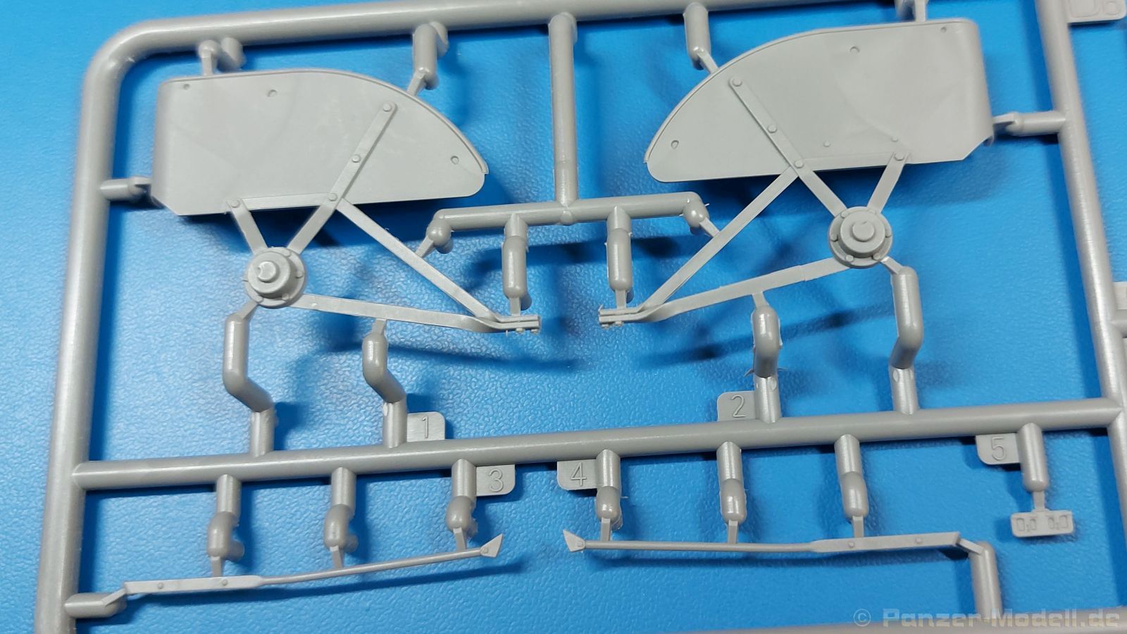 Das Original: Der Bulldog war eigentlich ein für den Einzylinder Glühkopfmotor, mit dem Säge-, Mühlen-, Steinbrecher- und Dreschmaschinen angetrieben wurden, bis man entdeckte, dass sich der Motor auch für Ackerschlepper eignet. Der Schlepper der Firma Lanz mit der Bezeichnung D8506, auch Ackerluft-Bulldog genannt, wurde zwischen 1934 und 1955 hergestellt und wog über 3 Tonnen. Sein 10 Liter Motor mit 30 bzw. 35 PS (22kW/25,6 kW) konnte ihn bis 17,7 km/h beschleunigen. Unter anderem kann er mit Gasöl, Schweröl, Diesel, Petroleum und Pflanzenöl betrieben werden (Vielstoffmotor). In der Landwirtschaft eingesetzt wurde er zum Ziehen von Lasten und bedienen landwirtschaftlicher Geräte eingesetzt, aber auch die Wehrmacht hat ihn genutzt. Der Bausatz: Von der ukrainischen Firma MiniArt gibt es inzwischen etliche Modelle des Lanz Bulldog in 1:35, teils solo, teils mit Anhänger, die sich z.B. in der Bereifung, der Auslegung der Luftansaugung oder der Auspuffanlage unterscheiden. Der 385 x 240 x 60 mm große Stülpdeckelkarton enthält in eine Klarsichttüte verpackt für… · den Traktor: 9 hellgraue, 1 Klarsichtspritzling, 2 Plastikreifen, 1 PE-Platine MiniArt bietet gute Qualität! Man erblickt sauber gespritzte und filigrane Teile. Verzug oder Versatz konnte ich nicht entdecken. Es gibt etwas feinen Grat, wie z.B. auf den Laufflächen der großen Traktorhinterreifen, aber der verschwindet, sobald er das Bastelmesser sieht. Die Auswerfer sind fast ausnahmslos auf die Spritzrahmen gesetzt, so dass die Teile so gut wie keine Spuren davon aufweisen, bzw. nur an Stellen, die nach dem Zusammenbau nicht mehr zu sehen sind. Da der Bulldog in rahmenloser Blockbauweise hergestellt wurde, gibt es große Teile für den Block, der Motor, Getriebe und Hinterachse aufnimmt. So einige Wartungsdeckel mit ihrer prominenten Verschraubung sind bereits angegossen. Es gibt auch einige Kleinteile, die aufgebohrt werden müssen, wenn man die außenliegenden (Kraftstoff? Öl?) Leitungen, die aus Draht selbst hergestellt werden müssten, anbringen möchte. Auffällig ist der Glühkopf, der mit PEs und einer Sechskantmutter weiter detailliert wird. Am Heck gibt es noch eine einfache Anhängekupplung. Der Einsteckbolzen, um den beiliegenden Anhänger anzuhängen, ist bereits mit eingegossen. Da muss man dann improvisieren. Außenliegende Gestänge und Federn liegen als separate Teile bei. Die Motorhaube besteht aus Front-, Rücken-, Seitenteilen und der oberen Abdeckung, die noch 3 Wartungsdeckel erhält. Die Seitenteile wiesen eine sehr schöne Gitterstruktur und Schraubenköpfe im Kühlerbereich auf beiden Seiten auf. Am Rückenteil ist diesmal der Rahmen für die Windschutzscheibe bereits angegossen. Er bekommt noch kleine Seitenflügel. Die Scheibe selbst ist aus kristallklarem Klarsichtmaterial. Einen Scheibenwischer aus PE gibt es auch noch. Natürlich bekommt die Front das Lanz Bulldog PE, das genügend Tiefe hat, dass man die Buchstaben und den Rand leicht anmalen kann. Der D 8506 hat den hochaufragenden Luftansaugstutzen an der linken Seite, der an Teil Eb12 anschließt. Da auch das Seitenteil für die Version ohne den Stutzen dabei ist, darauf achten, dass man nichts verwechselt! Interessant wird auch die Plattform für den Fahrer. Das Riffelblech ist sehr gut dargestellt, aber… es gibt nur ein Pedal, das Kupplungspedal! Keine Angst MiniArt ist da kein Fehler unterlaufen, denn gemäß meiner kurzen Recherche wird dieser Bulldog wohl mit dem Handbremshebel links vom Fahrersitz gebremst und auch festgestellt. Zum Beschleunigen gibt es einen Handgashebel, der an der rechten Seite der Plattform angebracht wird. Der Schalthebel mit Kugelknauf für 3 Vorwärts- und 1 Rückwärtsgang ist natürlich auch dabei. Der Fahrer hat einen schönen, gelochten Schalensitz mit einfacher Rückenlehne. Der Sitz ist mit einem Blechstreifen an der Plattform angebracht und sitzt auf einer Feder auf. Lenkstange und -rad sind zwar dabei, werden aber unter bestimmten Umständen weggelassen. Mehr dazu später. Unter der Plattform wird noch ein Staukasten angebracht, dessen Deckel einen schönen Flügelmutterverschluss zeigt. Die hinteren, sehr ausladenden Kotflügel bilden gleichzeitig hinten offene Seitenwände für den Fahrer. Auf die Kotflügel kommen Rücklichter mit klaren Gläsern und weiteres PE-Gestänge sichert die Kotflügel nach vorn. Innen werden zwei Stützstangen für das Dach angebracht. Das Dach ist auch innen struktiert. Am Gestänge der Kotflügel wird eine hinten querliegende, gelochte Traverse angebracht, die zur Aufnahme von landwirtschaftlichen Gerätschaften dient. Die Vorderachse besteht aus dem Querträger, den Gelenkköpfen, Lenkgestänge und Stabilisatoren. Gemäß dem Aufbau der Teile ist ein möglicher Lenkeinschlag nicht vorgesehen. Auch eine kleinere Anhängevorrichtung mit angegossenem Kupplungsbolzen gibt es. An der linken Seite wird der große Luftansaugstutzen mit Regenschutz und der noch größere Auspuff angebracht. Der Auspuff kommt diesmal ohne PE-Schelle aus. Das Endrohr ist einige Millimeter ausgehöhlt. Die Hinterräder haben beim D 8506 Gummireifen, die am Modell aus Felgeninnen- und Außenseiten mit angegossenen Reifenflanken, die wiederum einen Teil des Profils darstellen und separaten Laufflächen mit dem Rest des groben Profils. Die Vorderräder setzen sich aus je 5 Teilen zusammen, drei Scheiben, die durch ihre Form gut die Profiltiefe wiedergeben und wie bei den Hinterrädern Felgeninnen- und Außenseiten mit angegossenen Reifenflanken. Alle Reifenflanken tragen in erhabenen Buchstaben den Herstellernamen Continental und die Reifengrößen. Auch die Vorderräder bekommen viertelkreisförmige Kotflügel, die an zwei querliegenden Stangen angebracht werden. Auf die Kotflügel klebt man eine weitere Querstange, die die ausgehöhlten Scheinwerfer mit innenliegenden Leuchtkörpern beinhalten. Fein geriffelte Klarsichtscheiben schließen die Schweinwerfer. Links und rechts zwische