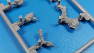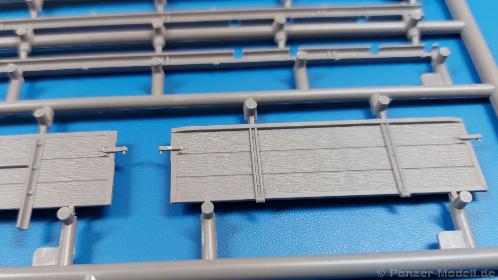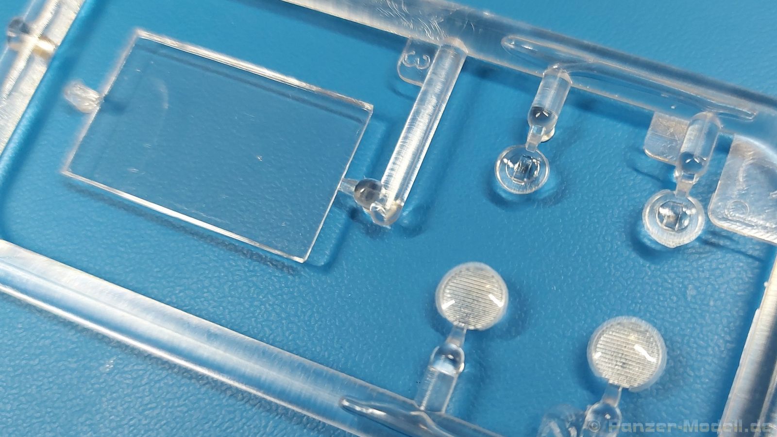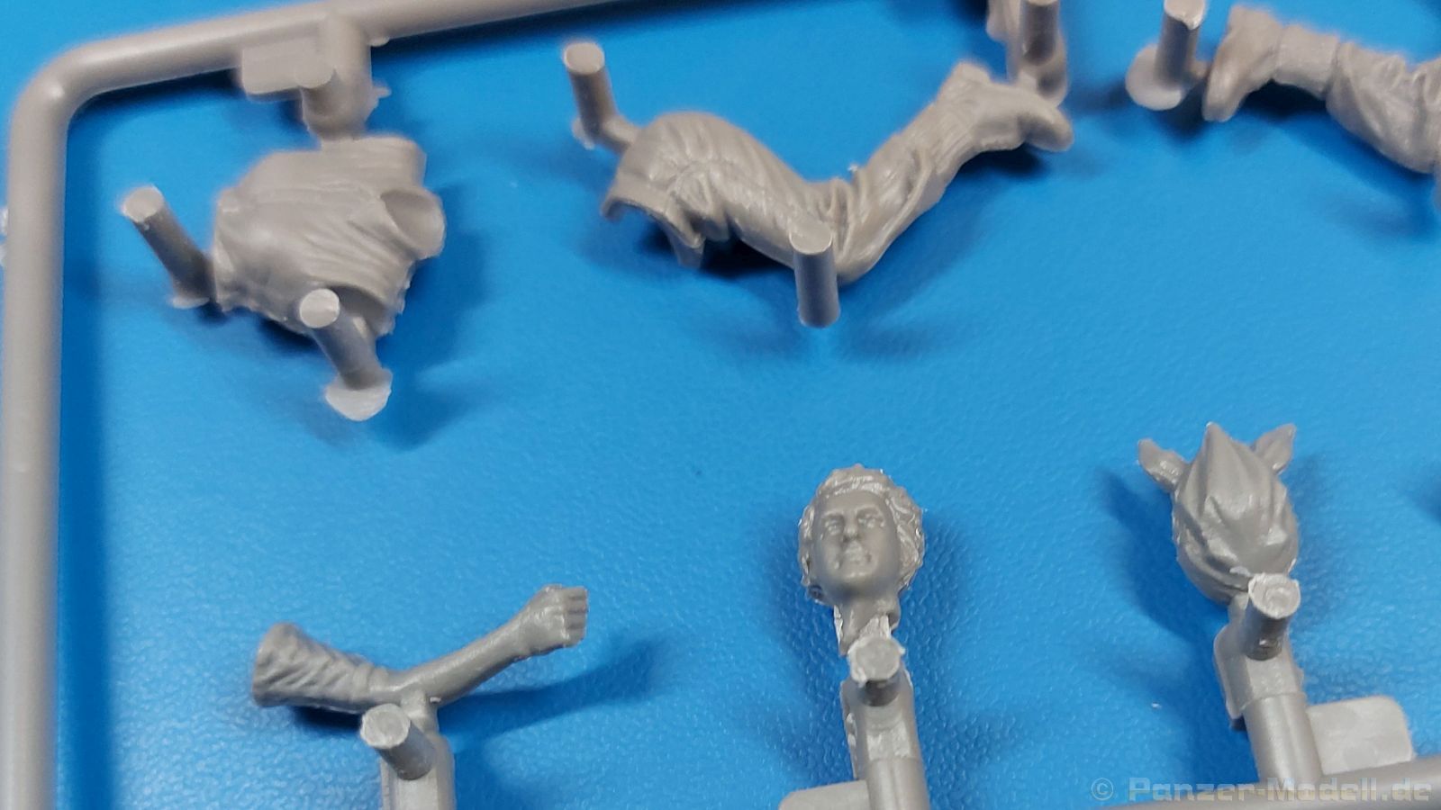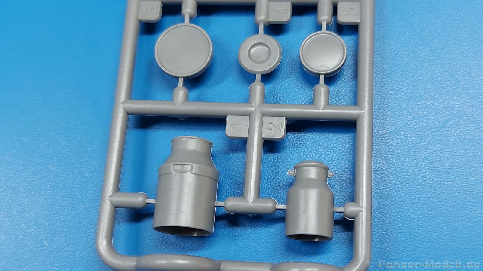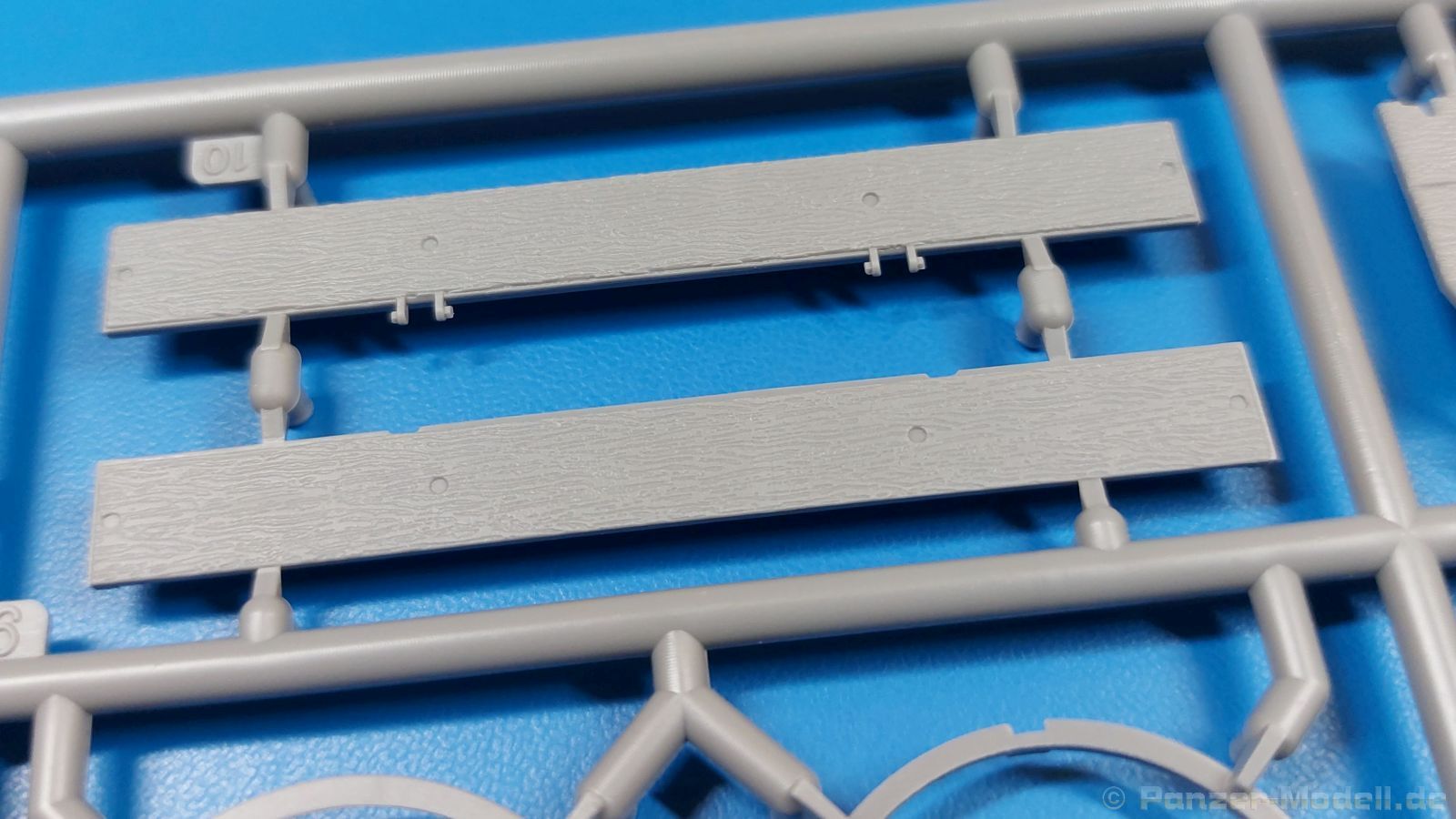 Das Original: Der Bulldog war eigentlich ein für den Einzylinder Glühkopfmotor, mit dem Säge-, Mühlen-, Steinbrecher- und Dreschmaschinen angetrieben wurden, bis man entdeckte, dass sich der Motor auch für Ackerschlepper eignet. Der Schlepper der Firma Lanz mit der Bezeichnung D8506, auch Ackerluft-Bulldog genannt, wurde zwischen 1934 und 1955 hergestellt und wog über 3 Tonnen. Sein 10 Liter Motor mit 30 bzw. 35 PS (22kW/25,6 kW) konnte ihn bis 17,7 km/h beschleunigen. Unter anderem kann er mit Gasöl, Schweröl, Diesel, Petroleum und Pflanzenöl betrieben werden (Vielstoffmotor). In der Landwirtschaft eingesetzt wurde er zum Ziehen von Lasten und bedienen landwirtschaftlicher Geräte eingesetzt, aber auch die Wehrmacht hat ihn genutzt. Der Bausatz: Von der ukrainischen Firma MiniArt gibt es inzwischen etliche Modelle des Lanz Bulldog in 1:35, teils solo, teils mit Anhänger, die sich z.B. in der Bereifung, der Auslegung der Luftansaugung oder der Auspuffanlage unterscheiden. Der 385 x 240 x 60 mm große Stülpdeckelkarton enthält in eine Klarsichttüte verpackt für… · den Traktor: 9 hellgraue, 1 Klarsichtspritzling, 2 Plastikreifen, 1 PE-Platine MiniArt bietet gute Qualität! Man erblickt sauber gespritzte und filigrane Teile. Verzug oder Versatz konnte ich nicht entdecken. Es gibt etwas feinen Grat, wie z.B. auf den Laufflächen der großen Traktorhinterreifen, aber der verschwindet, sobald er das Bastelmesser sieht. Die Auswerfer sind fast ausnahmslos auf die Spritzrahmen gesetzt, so dass die Teile so gut wie keine Spuren davon aufweisen, bzw. nur an Stellen, die nach dem Zusammenbau nicht mehr zu sehen sind. Da der Bulldog in rahmenloser Blockbauweise hergestellt wurde, gibt es große Teile für den Block, der Motor, Getriebe und Hinterachse aufnimmt. So einige Wartungsdeckel mit ihrer prominenten Verschraubung sind bereits angegossen. Es gibt auch einige Kleinteile, die aufgebohrt werden müssen, wenn man die außenliegenden (Kraftstoff? Öl?) Leitungen, die aus Draht selbst hergestellt werden müssten, anbringen möchte. Auffällig ist der Glühkopf, der mit PEs und einer Sechskantmutter weiter detailliert wird. Am Heck gibt es noch eine einfache Anhängekupplung. Der Einsteckbolzen, um den beiliegenden Anhänger anzuhängen, ist bereits mit eingegossen. Da muss man dann improvisieren. Außenliegende Gestänge und Federn liegen als separate Teile bei. Die Motorhaube besteht aus Front-, Rücken-, Seitenteilen und der oberen Abdeckung, die noch 3 Wartungsdeckel erhält. Die Seitenteile wiesen eine sehr schöne Gitterstruktur und Schraubenköpfe im Kühlerbereich auf beiden Seiten auf. Am Rückenteil ist diesmal der Rahmen für die Windschutzscheibe bereits angegossen. Er bekommt noch kleine Seitenflügel. Die Scheibe selbst ist aus kristallklarem Klarsichtmaterial. Einen Scheibenwischer aus PE gibt es auch noch. Natürlich bekommt die Front das Lanz Bulldog PE, das genügend Tiefe hat, dass man die Buchstaben und den Rand leicht anmalen kann. Der D 8506 hat den hochaufragenden Luftansaugstutzen an der linken Seite, der an Teil Eb12 anschließt. Da auch das Seitenteil für die Version ohne den Stutzen dabei ist, darauf achten, dass man nichts verwechselt! Interessant wird auch die Plattform für den Fahrer. Das Riffelblech ist sehr gut dargestellt, aber… es gibt nur ein Pedal, das Kupplungspedal! Keine Angst MiniArt ist da kein Fehler unterlaufen, denn gemäß meiner kurzen Recherche wird dieser Bulldog wohl mit dem Handbremshebel links vom Fahrersitz gebremst und auch festgestellt. Zum Beschleunigen gibt es einen Handgashebel, der an der rechten Seite der Plattform angebracht wird. Der Schalthebel mit Kugelknauf für 3 Vorwärts- und 1 Rückwärtsgang ist natürlich auch dabei. Der Fahrer hat einen schönen, gelochten Schalensitz mit einfacher Rückenlehne. Der Sitz ist mit einem Blechstreifen an der Plattform angebracht und sitzt auf einer Feder auf. Lenkstange und -rad sind zwar dabei, werden aber unter bestimmten Umständen weggelassen. Mehr dazu später. Unter der Plattform wird noch ein Staukasten angebracht, dessen Deckel einen schönen Flügelmutterverschluss zeigt. Die hinteren, sehr ausladenden Kotflügel bilden gleichzeitig hinten offene Seitenwände für den Fahrer. Auf die Kotflügel kommen Rücklichter mit klaren Gläsern und weiteres PE-Gestänge sichert die Kotflügel nach vorn. Innen werden zwei Stützstangen für das Dach angebracht. Das Dach ist auch innen struktiert. Am Gestänge der Kotflügel wird eine hinten querliegende, gelochte Traverse angebracht, die zur Aufnahme von landwirtschaftlichen Gerätschaften dient. Die Vorderachse besteht aus dem Querträger, den Gelenkköpfen, Lenkgestänge und Stabilisatoren. Gemäß dem Aufbau der Teile ist ein möglicher Lenkeinschlag nicht vorgesehen. Auch eine kleinere Anhängevorrichtung mit angegossenem Kupplungsbolzen gibt es. An der linken Seite wird der große Luftansaugstutzen mit Regenschutz und der noch größere Auspuff angebracht. Der Auspuff kommt diesmal ohne PE-Schelle aus. Das Endrohr ist einige Millimeter ausgehöhlt. Die Hinterräder haben beim D 8506 Gummireifen, die am Modell aus Felgeninnen- und Außenseiten mit angegossenen Reifenflanken, die wiederum einen Teil des Profils darstellen und separaten Laufflächen mit dem Rest des groben Profils. Die Vorderräder setzen sich aus je 5 Teilen zusammen, drei Scheiben, die durch ihre Form gut die Profiltiefe wiedergeben und wie bei den Hinterrädern Felgeninnen- und Außenseiten mit angegossenen Reifenflanken. Alle Reifenflanken tragen in erhabenen Buchstaben den Herstellernamen Continental und die Reifengrößen. Auch die Vorderräder bekommen viertelkreisförmige Kotflügel, die an zwei querliegenden Stangen angebracht werden. Auf die Kotflügel klebt man eine weitere Querstange, die die ausgehöhlten Scheinwerfer mit innenliegenden Leuchtkörpern beinhalten. Fein geriffelte Klarsichtscheiben schließen die Schweinwerfer. Links und rechts zwische