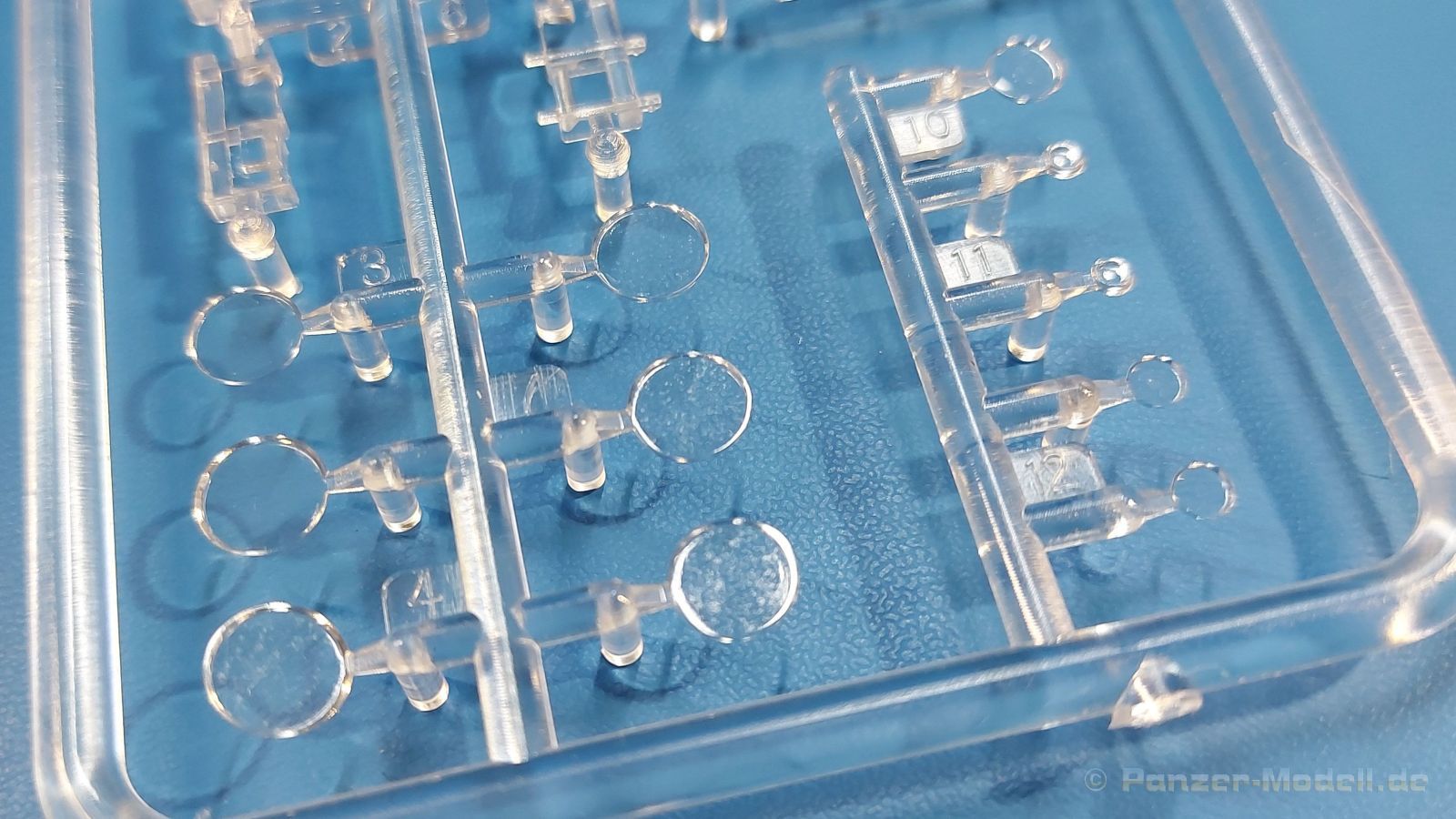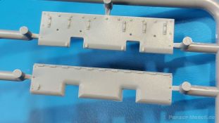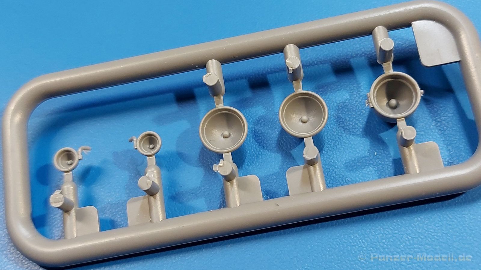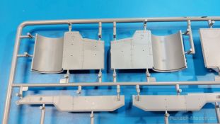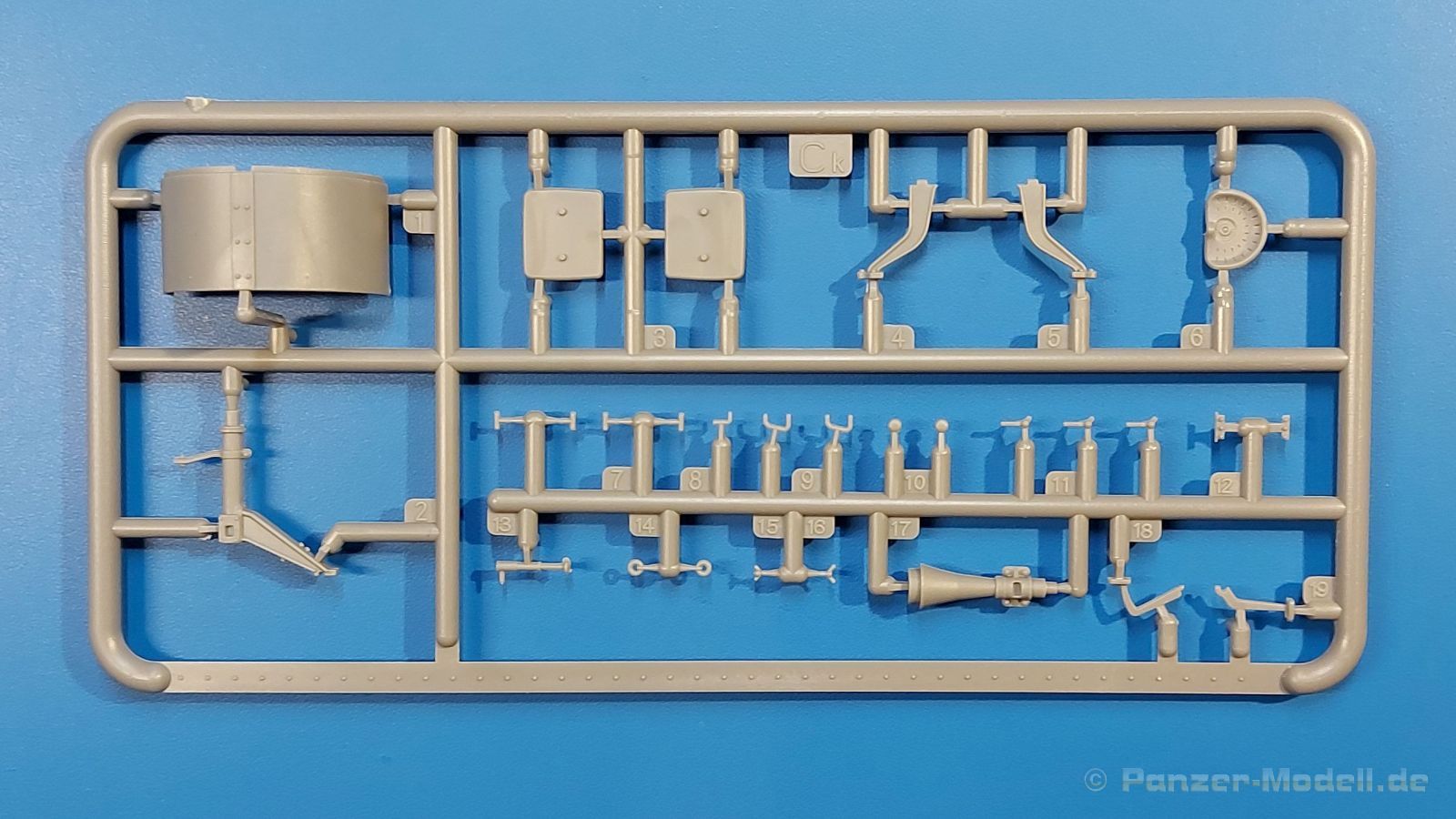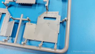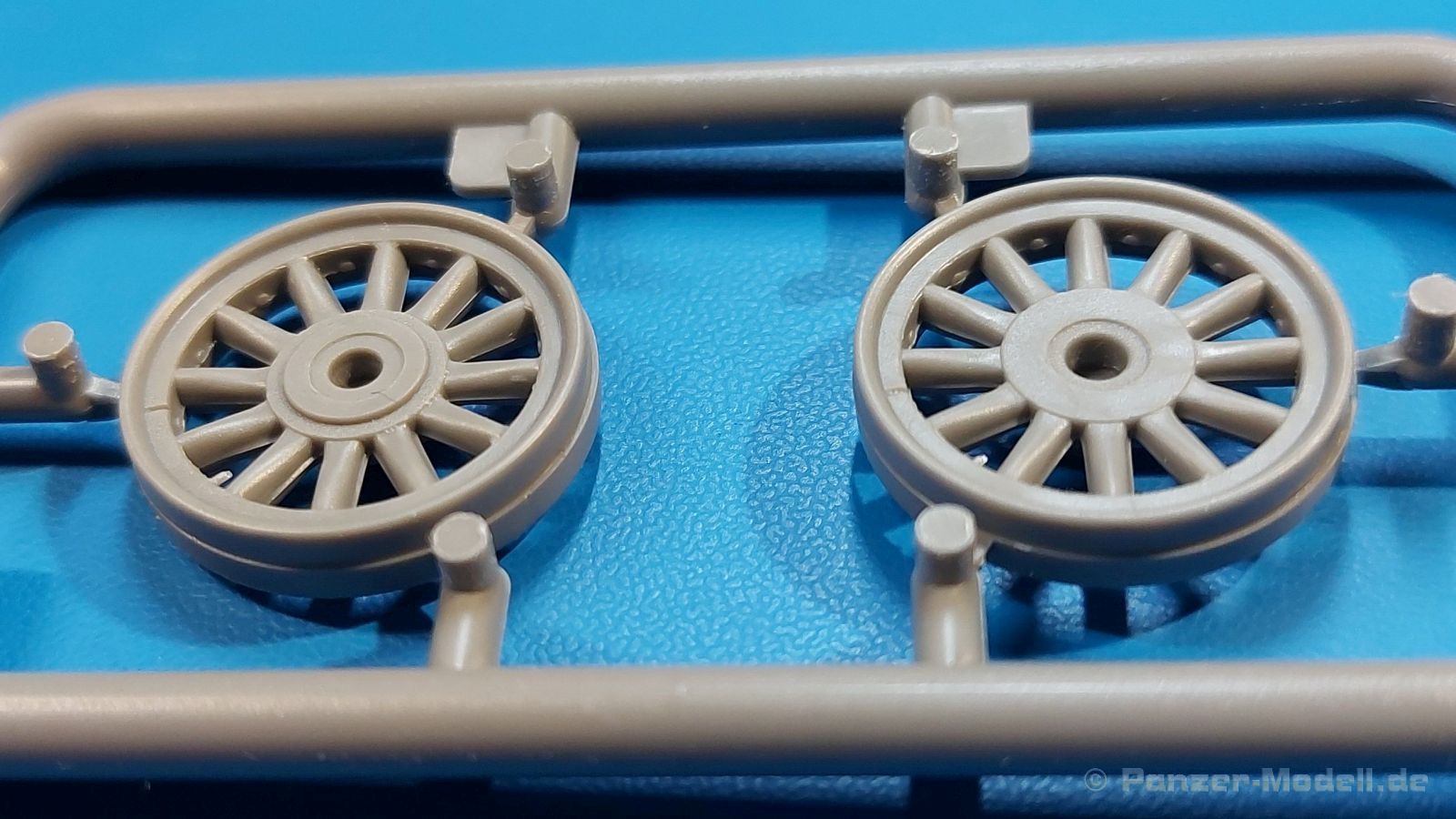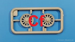 Das Original: Der Austin Panzerwagen wurde während des 1. Weltkrieges produziert. Er basierte ursprünglich auf einem Pkw Fahrgestell und war rundum gepanzert und mit 2 MG-Türmen ausgestattet. E wog über 5 to. und erreichte mit einem 4-Zylinder 50 PS (37 kW) Benzinmotor 56 km/h Höchstgeschwindigkeit. Die Besatzung bestand ursprünglich aus 4 Soldaten, aber nach Einführung des Rückwärtsfahrers dann aus 5. Auch wenn es eigentlich ein britisches Fahrzeug war und im 1. Weltkrieg eingesetzt wurde, erlangte es doch eher Bekanntheit durch seine Nutzung während des russischen Bürgerkrieges. Dort wurde er auch oft als Beutefahrzeug eingesetzt. Der Bausatz: MiniArt hat die Gewohnheit, möglichst viel aus seinen Modellen herauszuholen und Varianten anzubieten. So kommt es, dass dieser Bausatz einer von (bisher) vieren ist. Diesmal haben wir die Version eines, mit Interior voll ausgestatteten, „Beute-Austins“ vor uns. Man möge mir den langen Text verzeihen, aber da war wohl etwas mehr Begeisterung mit im Spiel! Im 385 x 240 x 60 mm großen Karton befinden sich 17 hellgraue und 1 Klarsichtspritzling, 1 PE-Platine, 1 Decalsheet und natürlich eine Bau-/Bemalungsanleitung. Die Teile sind auf dem heutigen Stand der Technik produziert und können mit allerlei Details und Feinheiten glänzen. So gut wie keine Auswerferspuren auf Teilen, da diese meist auf die Gießäste gesetzt sind. Bei den wenigen Teilen, wo man glaubt, Auswerferspuren zu sehen, sitzen sie auf Stellen, die nach dem Bau nicht mehr zu sehen sind. Versatz, Gussgrat konnte ich mit bloßem Auge nicht entdecken. Original verpackt erwarten einen keine Probleme, aber wenn man die Spritzlinge nicht mehr in die Plastiktüten zurückpackt, kann es beim Transport passieren, dass man etwas Bruch hat. In meinem Fall betraf dies den vorderen, linken Kotflügel, dessen vordere Kante angebrochen war. Aber auch dies lässt sich mit den modernen Klebstoffen leicht reparieren. Der Leiterrahmen setzt sich traditionell aus Längs- und Querträgern, verstärkt durch Kreuzträger zusammen. Für den sehr gut detaillierten Motor gibt es extra Längsträger zum Einbau in den Rahmen. Der wassergekühlte Motor, ein Modell im Modell, bietet alle wichtigen Elemente wie z.B. Ölwanne mit separater Ölablassschraube, Motorblock mit gut erkennbaren, erhabenen Austin Aufschriften, Zylinderkopf mit ausliegenden Ventilfedern, Zündkerzen sind erkennbar, Luftansaugkanal mit kleinem Luftfilter, Abgaskrümmer, separate Wasserpumpe, Kühlleitungen, Keilriemen und Kühlerpropeller. Feine PE-Teile peppen den Motor weiter auf. Dazu kommen natürlich noch der Kühler selbst mit feinen Kühlrippen und separatem Kühlwasserdeckel, Kupplung (? - anhand der Pedalerie und Hebel bin ich nicht sicher, ob der Austin bereits so etwas wie eine Kupplung hatte oder ob die Gänge in Tradition feinster spannabhebender Verformung reingequält wurden… Für Aufklärung zur Technik wären wir dankbar!) und Getriebe. Auch auf dem Getriebe finden wir die erhabene Austin Aufschrift. Die mehrfach unterteilte Bodenplatte zeigt in einigen Bereichen eine Bretterstruktur. Im hinteren Bereich wird eine etwas erhöhte Plattform für den Rückwärtsfahrer und die beiden MG-Türme angebracht. Die kreisrunden Bodenflächen der Türme sind mit sternförmigen Riffeln versehen, damit die MG-Bedienungen sich mit den Füßen abstoßen konnten, um die Türme zu drehen. Riffel und Nieten sind sehr schön wiedergegeben. Sitzfläche und Rückenlehne geben glaubhaft die Polsterstruktur wieder. Auch die Verschraubungen der Rückenlehne gefallen mir. Neben dem Rückwärtsfahrer finden zwei aufeinander gesetzte Kisten Platz, von denen ich vermute, dass sich zumindest in einer davon der Tank befand. Fahrer und Beifahrer habengleiche Sitzkissen wie der Rückwärtsfahrer. Ähnlich die beiden Rückenlehnen, die aber bereits zusammen an einem Brett montiert sind. Während das Lenkrad des Rückwärtsfahrers ein einfaches 4-Speichen Rad ist, besitzt das Hauptlenkrad ein kleineren, inneren Ring mit zusätzliche Hebeln. Die Armaturentafel zeigt sehr viele Instrumente. Leider gibt es keine Decals dazu. Im Fußbereich des Fahrers wird eine kleine Ballpumpe plus Leitung montiert, die auf der anderen Seite im Motorraum in einer trompetenförmigen Hupe endet. Die genaue Montage wird in einem Extrabild in der Bauanleitung aufgezeigt. Der gepanzerte Aufbau ist ein Thema für sich, denn er besteht aus unzählig vielen Panzerplatten, Trägern, Klappen und PE-Teilen. Alle Aufbauteile sind beidseitig detailliert wie man es von einem Interior Bausatz wohl erwartet. Präzises Arbeiten ist hier Pflicht, damit alle Teile stimmig zusammenkommen. Bei allen Klappen und Deckeln, die man alternativ offen oder geschlossen anbauen kann, muss man sehr genau schauen, da oftmals Hebel und Gestänge je nach Anbau unterschiedlich ausfallen. Da wäre z.B. die Stange, mit der der Beifahrer gleichzeitig die Motorentlüftungsklappe auf der Haube und die Kühlerklappe bedient. Oder der Sägezahnhebel der hinteren Sichtklappe. Oder der Ausstellhebel der seitlichen Sichtklappen. Bei der Fahrerfront kann man sich entscheiden, ob man die obere Klappe anhebt und die untere Klappe ganz nach vorn abklappt, wie es z.B. bei Fahrten weitab vom Feind wohl sicherlich gemacht wurde. Andere Variationen sind da auch noch möglich. Für 5 Fahrzeuge verschiedener Länder gibt Abziehbilder (Decals). Die ukrainischen Rondells erscheinen etwas verschmiert, welches aber Absicht ist, da im Original die Rondells wohl auch nur schnell mit dem Pinsel aufgemalt wurden. Alle Decals sind seidenmatt mit wenig Rand.