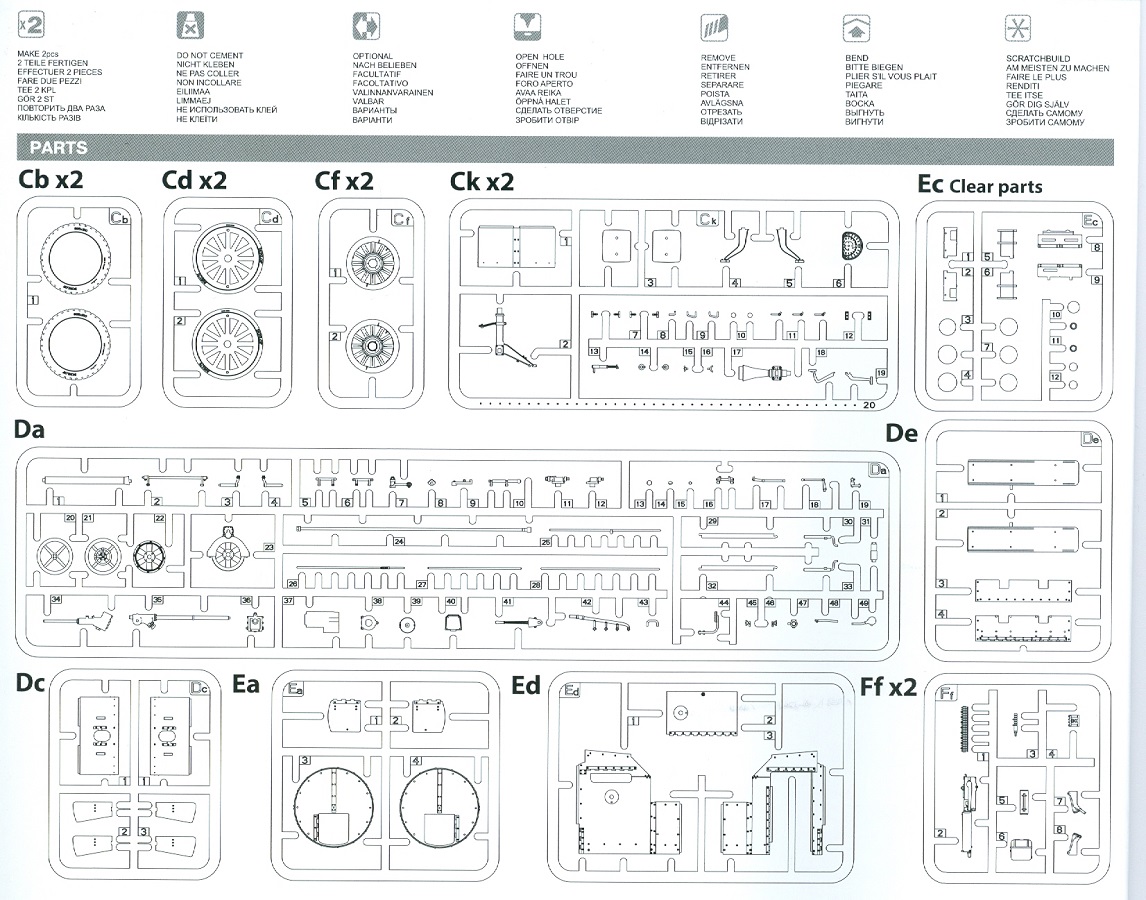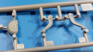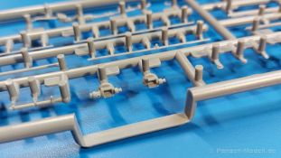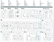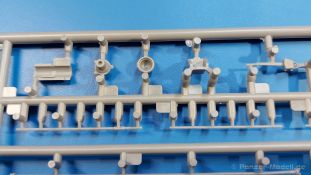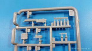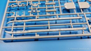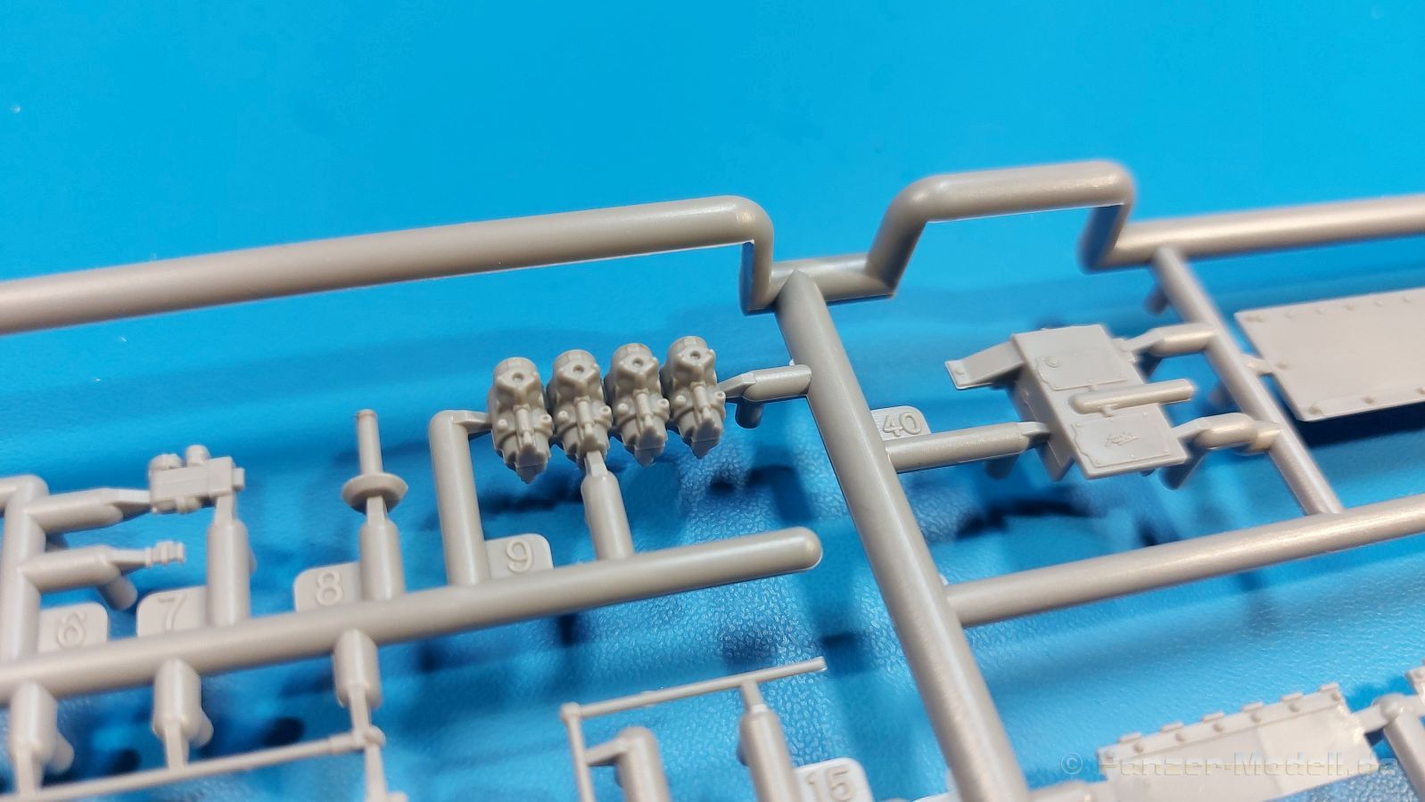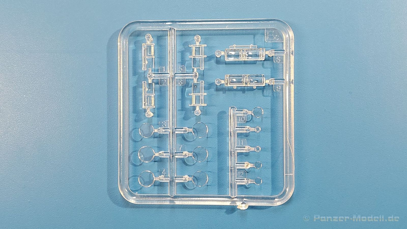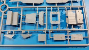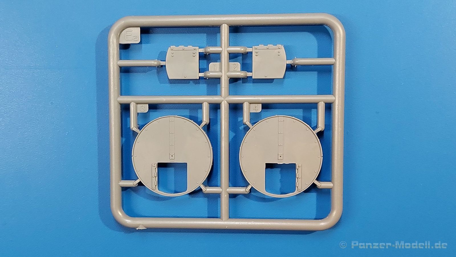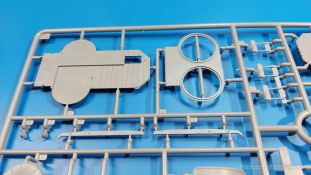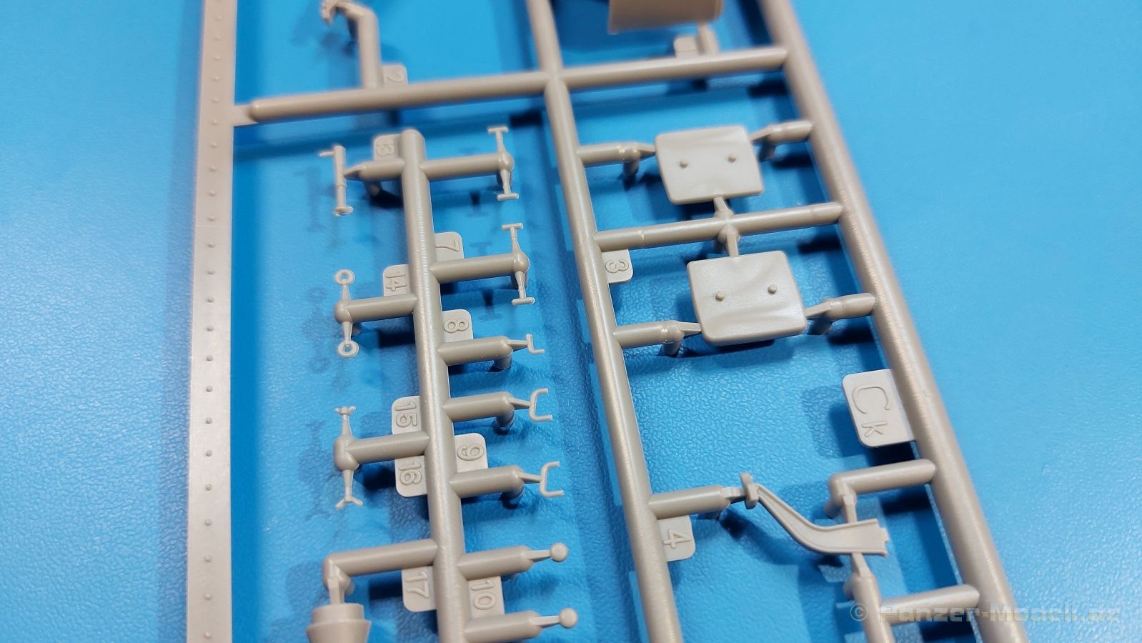 Das Original: Der Austin Panzerwagen wurde während des 1. Weltkrieges produziert. Er basierte ursprünglich auf einem Pkw Fahrgestell und war rundum gepanzert und mit 2 MG-Türmen ausgestattet. E wog über 5 to. und erreichte mit einem 4-Zylinder 50 PS (37 kW) Benzinmotor 56 km/h Höchstgeschwindigkeit. Die Besatzung bestand ursprünglich aus 4 Soldaten, aber nach Einführung des Rückwärtsfahrers dann aus 5. Auch wenn es eigentlich ein britisches Fahrzeug war und im 1. Weltkrieg eingesetzt wurde, erlangte es doch eher Bekanntheit durch seine Nutzung während des russischen Bürgerkrieges. Dort wurde er auch oft als Beutefahrzeug eingesetzt. Der Bausatz: MiniArt hat die Gewohnheit, möglichst viel aus seinen Modellen herauszuholen und Varianten anzubieten. So kommt es, dass dieser Bausatz einer von (bisher) vieren ist. Diesmal haben wir die Version eines, mit Interior voll ausgestatteten, „Beute-Austins“ vor uns. Man möge mir den langen Text verzeihen, aber da war wohl etwas mehr Begeisterung mit im Spiel! Im 385 x 240 x 60 mm großen Karton befinden sich 17 hellgraue und 1 Klarsichtspritzling, 1 PE-Platine, 1 Decalsheet und natürlich eine Bau-/Bemalungsanleitung. Die Teile sind auf dem heutigen Stand der Technik produziert und können mit allerlei Details und Feinheiten glänzen. So gut wie keine Auswerferspuren auf Teilen, da diese meist auf die Gießäste gesetzt sind. Bei den wenigen Teilen, wo man glaubt, Auswerferspuren zu sehen, sitzen sie auf Stellen, die nach dem Bau nicht mehr zu sehen sind. Versatz, Gussgrat konnte ich mit bloßem Auge nicht entdecken. Original verpackt erwarten einen keine Probleme, aber wenn man die Spritzlinge nicht mehr in die Plastiktüten zurückpackt, kann es beim Transport passieren, dass man etwas Bruch hat. In meinem Fall betraf dies den vorderen, linken Kotflügel, dessen vordere Kante angebrochen war. Aber auch dies lässt sich mit den modernen Klebstoffen leicht reparieren. Der Leiterrahmen setzt sich traditionell aus Längs- und Querträgern, verstärkt durch Kreuzträger zusammen. Für den sehr gut detaillierten Motor gibt es extra Längsträger zum Einbau in den Rahmen. Der wassergekühlte Motor, ein Modell im Modell, bietet alle wichtigen Elemente wie z.B. Ölwanne mit separater Ölablassschraube, Motorblock mit gut erkennbaren, erhabenen Austin Aufschriften, Zylinderkopf mit ausliegenden Ventilfedern, Zündkerzen sind erkennbar, Luftansaugkanal mit kleinem Luftfilter, Abgaskrümmer, separate Wasserpumpe, Kühlleitungen, Keilriemen und Kühlerpropeller. Feine PE-Teile peppen den Motor weiter auf. Dazu kommen natürlich noch der Kühler selbst mit feinen Kühlrippen und separatem Kühlwasserdeckel, Kupplung (? - anhand der Pedalerie und Hebel bin ich nicht sicher, ob der Austin bereits so etwas wie eine Kupplung hatte oder ob die Gänge in Tradition feinster spannabhebender Verformung reingequält wurden… Für Aufklärung zur Technik wären wir dankbar!) und Getriebe. Auch auf dem Getriebe finden wir die erhabene Austin Aufschrift. Die mehrfach unterteilte Bodenplatte zeigt in einigen Bereichen eine Bretterstruktur. Im hinteren Bereich wird eine etwas erhöhte Plattform für den Rückwärtsfahrer und die beiden MG-Türme angebracht. Die kreisrunden Bodenflächen der Türme sind mit sternförmigen Riffeln versehen, damit die MG-Bedienungen sich mit den Füßen abstoßen konnten, um die Türme zu drehen. Riffel und Nieten sind sehr schön wiedergegeben. Sitzfläche und Rückenlehne geben glaubhaft die Polsterstruktur wieder. Auch die Verschraubungen der Rückenlehne gefallen mir. Neben dem Rückwärtsfahrer finden zwei aufeinander gesetzte Kisten Platz, von denen ich vermute, dass sich zumindest in einer davon der Tank befand. Fahrer und Beifahrer habengleiche Sitzkissen wie der Rückwärtsfahrer. Ähnlich die beiden Rückenlehnen, die aber bereits zusammen an einem Brett montiert sind. Während das Lenkrad des Rückwärtsfahrers ein einfaches 4-Speichen Rad ist, besitzt das Hauptlenkrad ein kleineren, inneren Ring mit zusätzliche Hebeln. Die Armaturentafel zeigt sehr viele Instrumente. Leider gibt es keine Decals dazu. Im Fußbereich des Fahrers wird eine kleine Ballpumpe plus Leitung montiert, die auf der anderen Seite im Motorraum in einer trompetenförmigen Hupe endet. Die genaue Montage wird in einem Extrabild in der Bauanleitung aufgezeigt. Der gepanzerte Aufbau ist ein Thema für sich, denn er besteht aus unzählig vielen Panzerplatten, Trägern, Klappen und PE-Teilen. Alle Aufbauteile sind beidseitig detailliert wie man es von einem Interior Bausatz wohl erwartet. Präzises Arbeiten ist hier Pflicht, damit alle Teile stimmig zusammenkommen. Bei allen Klappen und Deckeln, die man alternativ offen oder geschlossen anbauen kann, muss man sehr genau schauen, da oftmals Hebel und Gestänge je nach Anbau unterschiedlich ausfallen. Da wäre z.B. die Stange, mit der der Beifahrer gleichzeitig die Motorentlüftungsklappe auf der Haube und die Kühlerklappe bedient. Oder der Sägezahnhebel der hinteren Sichtklappe. Oder der Ausstellhebel der seitlichen Sichtklappen. Bei der Fahrerfront kann man sich entscheiden, ob man die obere Klappe anhebt und die untere Klappe ganz nach vorn abklappt, wie es z.B. bei Fahrten weitab vom Feind wohl sicherlich gemacht wurde. Andere Variationen sind da auch noch möglich. Für 5 Fahrzeuge verschiedener Länder gibt Abziehbilder (Decals). Die ukrainischen Rondells erscheinen etwas verschmiert, welches aber Absicht ist, da im Original die Rondells wohl auch nur schnell mit dem Pinsel aufgemalt wurden. Alle Decals sind seidenmatt mit wenig Rand.