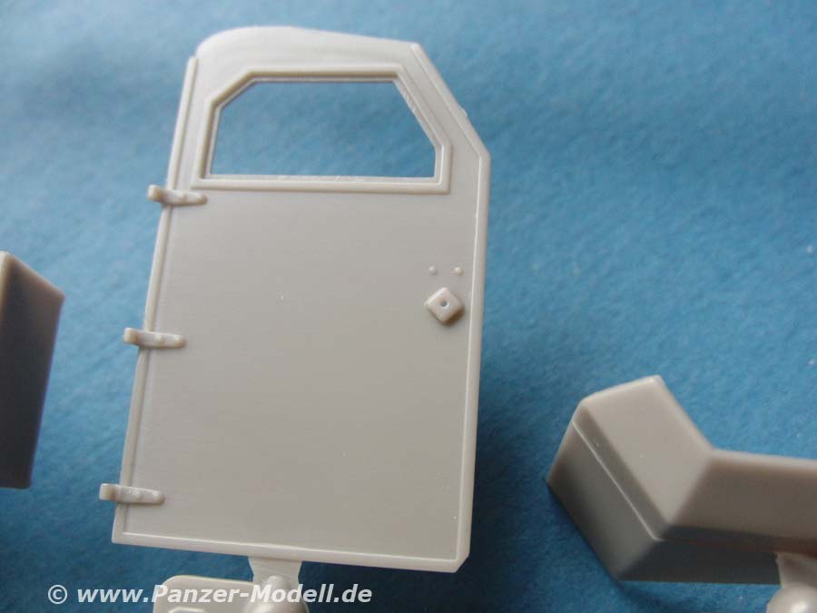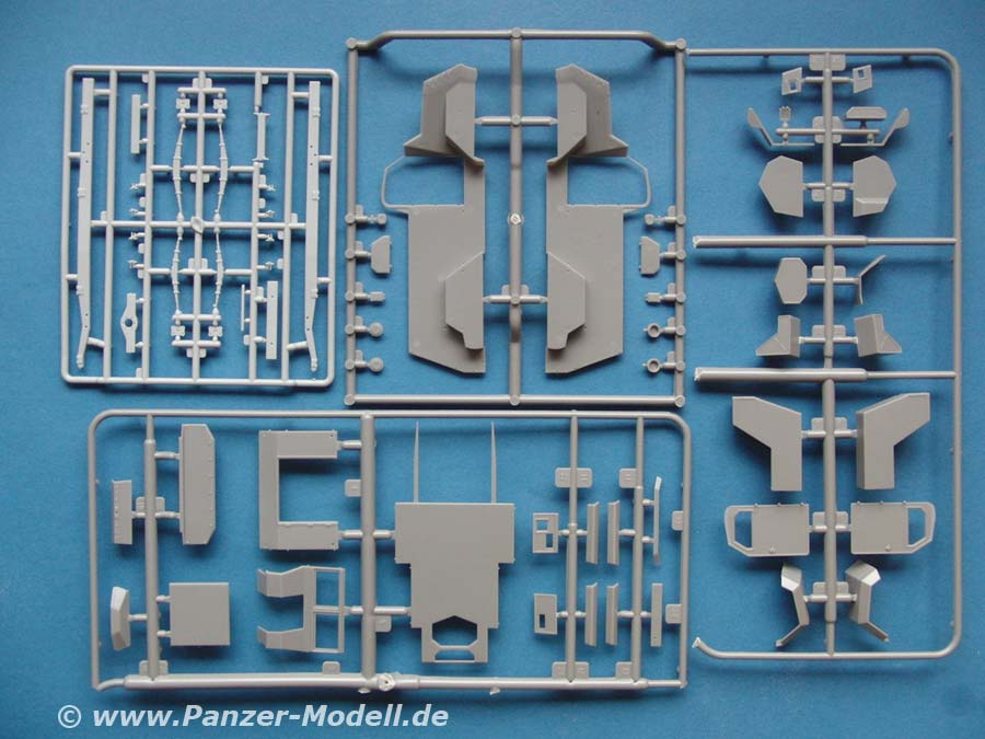 Die Spritzgussteile umfassen in der Hauptsache due großen und flächigen teile des fahrwerks und Aufbaus. Diese sind fein und fehlerfrei gespritzt. Verzug ist nicht festzustellen und auch kleine Details wie Nieten sind ansprechend und fein dargestellt.