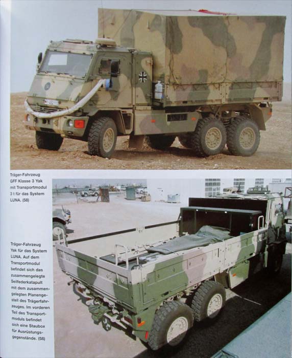 Das zweite Kapitel mit 20 Seiten behandelt dann die Fahrzeuge mit modularer Scgutzausstattung und Sonderschutzausstattung. Dies sind alle fahrzeuge, die standardmäßig ungeschützt sind, wie Wolf, die LKW KAT 1 Reihe oder auch die Panzertransporter, die für das Einsatzland zusätzliche modulare Panzerungen erhalten haben. Aber auch Sonderfahrzeuge wie Radlader und Arbeitsgeräte, die mit zusätzlicher Panzerung ausgestattet sind, werden hier gezeigt und behandelt.