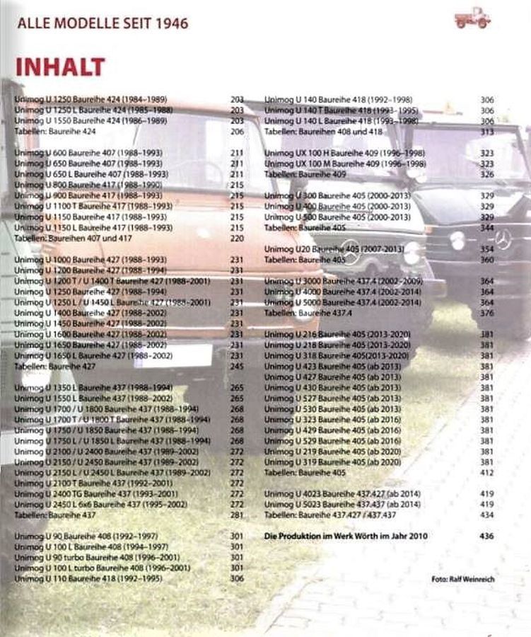 In der Nachkriegszeit als Universal-Motor-Gerät für landwirtschaftliche Anwendungen entwickelt, ist der Unimog heute ein Fahrzeug, das in 160 Ländern als bester Allrad-Lkw und Inbegriff von Zuverlässigkeit und Vielfalt an Einsatzmöglichkeiten gilt. Über den Unimog ist schon viel geschrieben worden, aber hier liegt eine Typologie der Extraklasse vor. In über 300 Datentabellen sind alle Typen, Formen und Varianten des Alleskönners seit 1946 bis ins Detail erfasst. So entstand eine ausführliche Darstellung der Unimog-Historie, umfassend überarbeitet und mit einer Fülle an neuem Bildmaterial versehen. Vor rund 75 Jahren, 1946, begann die Erfolgsgeschichte des Unimogs mit dem Protoyp U1 in Schwäbisch Gmünd. Im Lauf der Zeit ist die stetige technische Weiterentwicklung des Unimog ein ständiger Begleiter gewesen. 30 Baureihen und nahezu 450.000 abgesetzte Einheiten in dieser Zeitspanne sind Zahlen die für ein Spezialfahrzeug einmalig sein dürften. Das Buch ist nicht nur eine Typenkunde und Typengeschichte, die Fahrzeugtechnik im Detail und das umfangreiche Geräteprogramm des Unimogs vorstellt. Gleichwohl richtet sich das Buch auch an die vielen Unimog-Liebhaber als kompakte und übersichtliche Zusammenstellung. Mittlerweile ist der Unimog schon Kult! Die Fülle an Bildern stammt größtenteils aus dem Konzernarchiv der Daimler AG Stuttgart. Rund 600 Fotos, der größte Anteil in Farbe, begleiten den informativen Text. Nach dem üblichen Vorwort geht es mit dem Ursprung des Unimogs und den weiteren Verlauf der Entwicklung weiter. Alles bemerkenswert interessant und gut aufbereitet. Ab Seite 44 werden die verschiedenen Typen abgearbeitet. Das geht mit dem Prototyp Erhard & Söhne (1946 1948) los und dann weiter mit dem Boehringer Unimog 25 (1949 1951) bis hin zum Unimog U319 Baureihe 405 (ab 2020). Auch die Fahrzeuge der Bundeswehr finden sich in dem Band. Vor uns haben wir ein Buch das seinesgleichen sucht. Allerdings nicht geeignet als Bettlektüre. Mit 440 Seiten wiegt die gebundene Ausgabe etwas über zwei Kilo. Die Abmessungen betragen 27,1 x 23,6 x 3,5 cm. Unter der ISBN 978-3-613-04373-2 kann das Buch im Buchhandel oder beim Verlag erworben werden. Zugegeben, mit EUR 39,90 vielleicht nicht ganz billig, relativiert sich der Preis durch den gebotenen Informationsgehalt. Klare Kaufempfehlung. Auch für Modellbauer aller Sparten! Bezugsquelle: http://www.motorbuch-versand.de