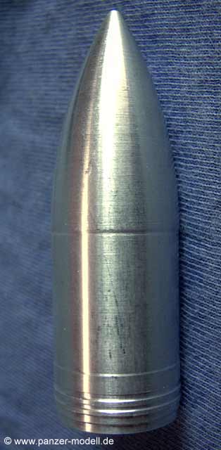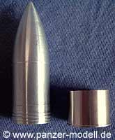 Form und Abmessungen entsprechen genau denen einer Originalgranate im richtigen Maßstab. Auch die Rillen sind fein dargestellt.