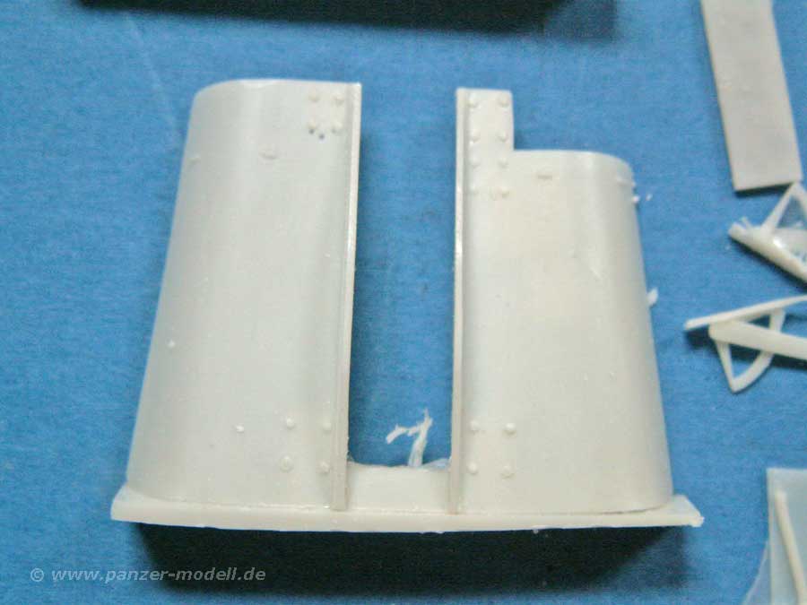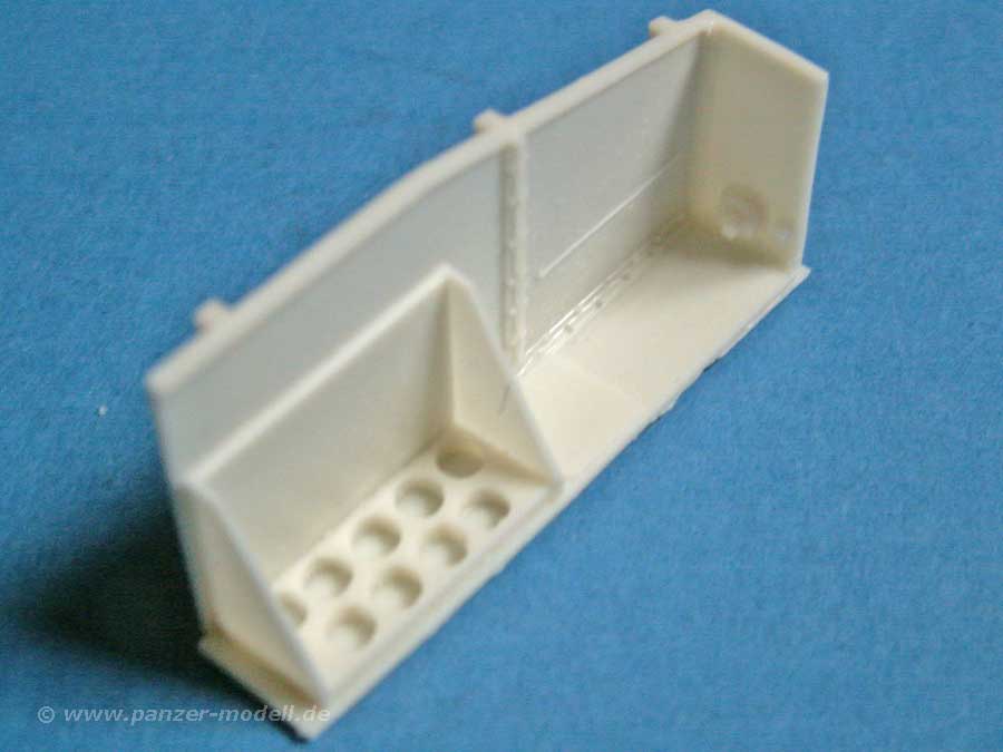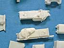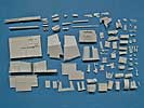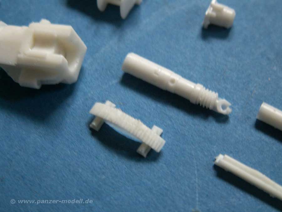 Die Resinteile enthalten wirklich alle Teile für den perfekten Umbau - neben den großen Teilen für den Aufbau und Änderungen der Wannenfront, wie auch der Kanone und sämtlichen Anbauteilen sind eben auch der Innenraum mit Fahrerplatz, Munitionshalterungen, Werkzeuge und andere Teile für die deutsche Version enthalten. Ausserdem Munitionsteile wie Granaten und Granatenhalterungen.