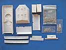 Der Bausatz ist ein Komplettbausatz, d.h. es wird kein Basisbausatz benötigt. Im Bausatz enthalten sind unter 100 Resinteile, Plastikrundmaterial und ein erweiterter Satz Friulmodel Ketten.