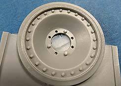 Die Ersatzlaufrolle ist mit leerer Nabe dargestellt und die leeren Nabenmutterlöcher sind bei dreien mit den Sicherungsmuttern für die Halterung am Turm versehen. Das sieht ganz grandios aus.
