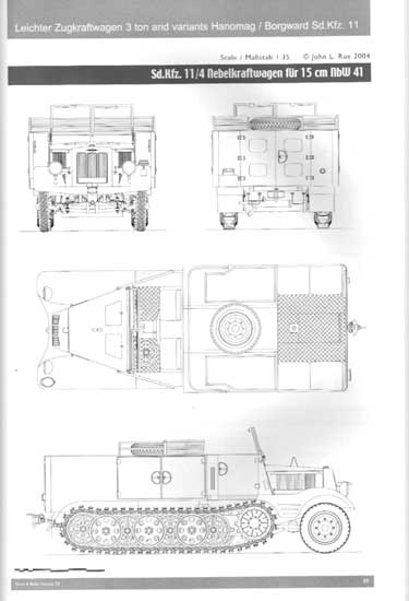 Was die Qualität ausmacht, ist die gigantische Menge an Informationen in Form von Texten, Tabellen, Daten, wie vor allem die unglaublich guten und oft bislang unveröffentlichten Fotos aller Varianten des Sd.Kfz.11, sowie Farbprofilen, den sehr guten Mehrseiten-Maßstabszeichnungen von John L.Rue und vielen Farbfotos von überlebenden Sd.Kfz.11 in Museen.