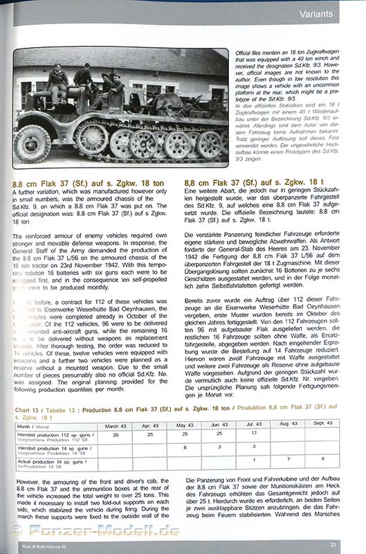 Selbst die Sonderaufbauten werden mit erfreulich vielen Fotos gezeigt, auch die sonst wirklich seltenen Aufnahmen des 9/2 und die 8,8cm auf gepanzertem FAMO.