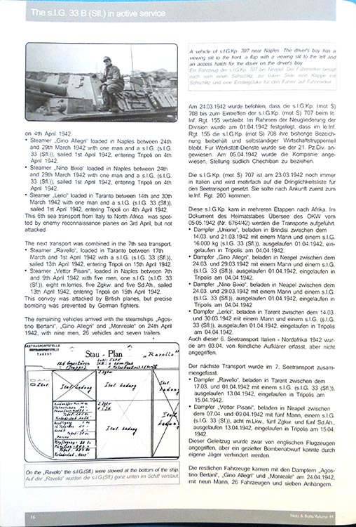 Das Heft beginnt mit rund 5 Seiten Text, Fotos und Tabellen über das 15cm sIG33, der Beschreibung, Details, technische Daten und Informationen der Munitionssorten.