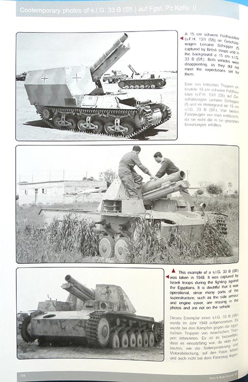 Der Truppenumbau des sIG33 auf einem Fahrgestell des Panzer III Ausf.H wird leider nur etwas kurz auf rund einer Seite zusammengefasst mit einer Tabelle technischer Daten.