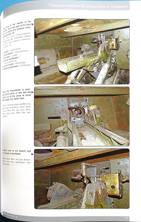 Es folgen knapp 40 Seiten mit Farbfotos von überlebenden Fahrzeugen aus Museen, wobei ausser einer Seite des gezogenen 15cm siG ist der Rest der Seiten mit Aufnahmen des Sturminfanteriegeschützes gefüllt - dem einzigen das überlebt hat und sich im Panzermuseum Kubinka, bzw. jetzt Patriot Park befindet.