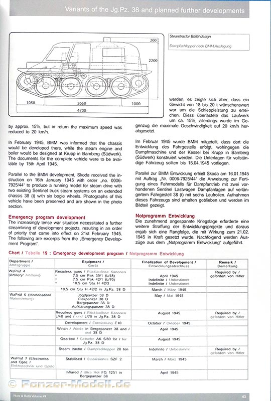 Und so werden hier wirklich hochinteressant und mit vielen historischen und technischen Daten die folgenden Fahrzeugtypen besprochen: Befehls Jagdpanzer 38, Jagdpanzer 38 mit Dieselmotor, Jagdpanzer 38 starr, Jagdpanzer 38D, Jagdpanzer 38 mit Flammanlage, Bergepanzer 38, Bergepanzer 38 mit 2cm und 3cm Flak, Aufklärungspanzer 38, 10,5cm Sturmhaubitze auf Jagdpanzer 38, leichter Einheitswaffenträger, Dampfschlepper, Entwicklungstyp E-10, Notprogramm Entwicklung,