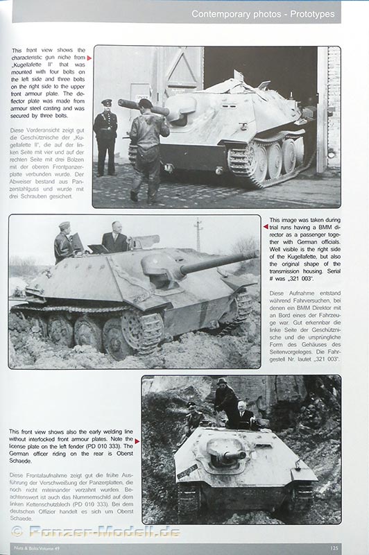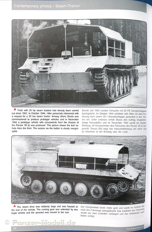 Dann geht es so richtig ans Eingemachte: 110 Seiten voll mit zeitgenössischen Fotos der verschiedensten Ausführungen des Jagdpanzer 38 - von den Vrläufern und Prototypen bis hin zu den allerletzten und danach folgend auch der Nachkriegszutung als G13. Dazu natürlich auch die einzelnen Abarten mit tollen Fotos, die man bisher kaum zu Gesicht bekommen hat, wie z.B. einem ganzen Schwung des Dampfschleppers.
