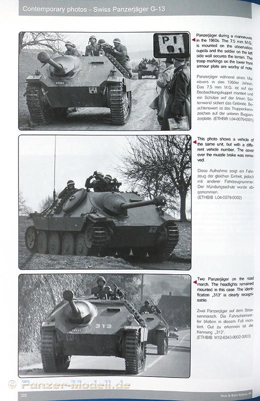 Weitere 9 Seiten beschäftigen sich dann mit dem Einsatz in anderen Armeen und hier insbesondere der nachkriegseinsatz als G-13 bei der Schweizer Armee - hier durchaus spannend und interessant: Eine Tabelle mit den markanten Unterschieden zwischen G-13 und Jagdpanzer 38.