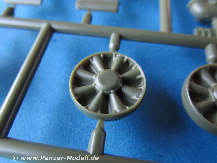 Der Detailgrad ist recht angenehm mit feinen Rillen, Nieten und weiteren Details. Diese sind fein und recht scharf dargestellt. Die PE Platine beinhaltet in der Hauptsache fein geätzte Lüftergitter.