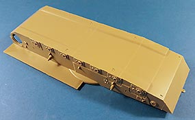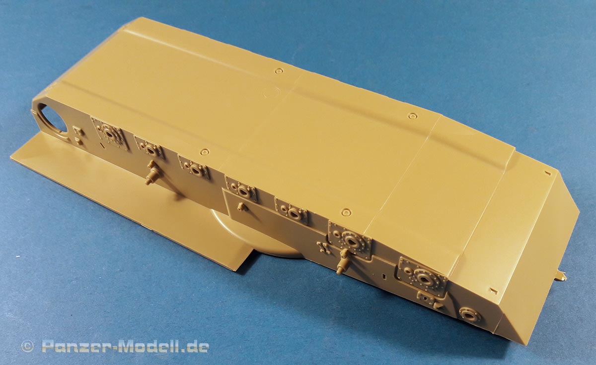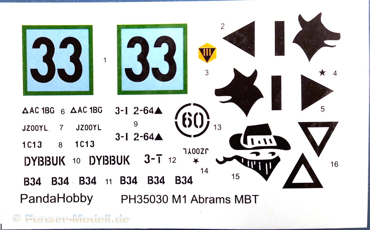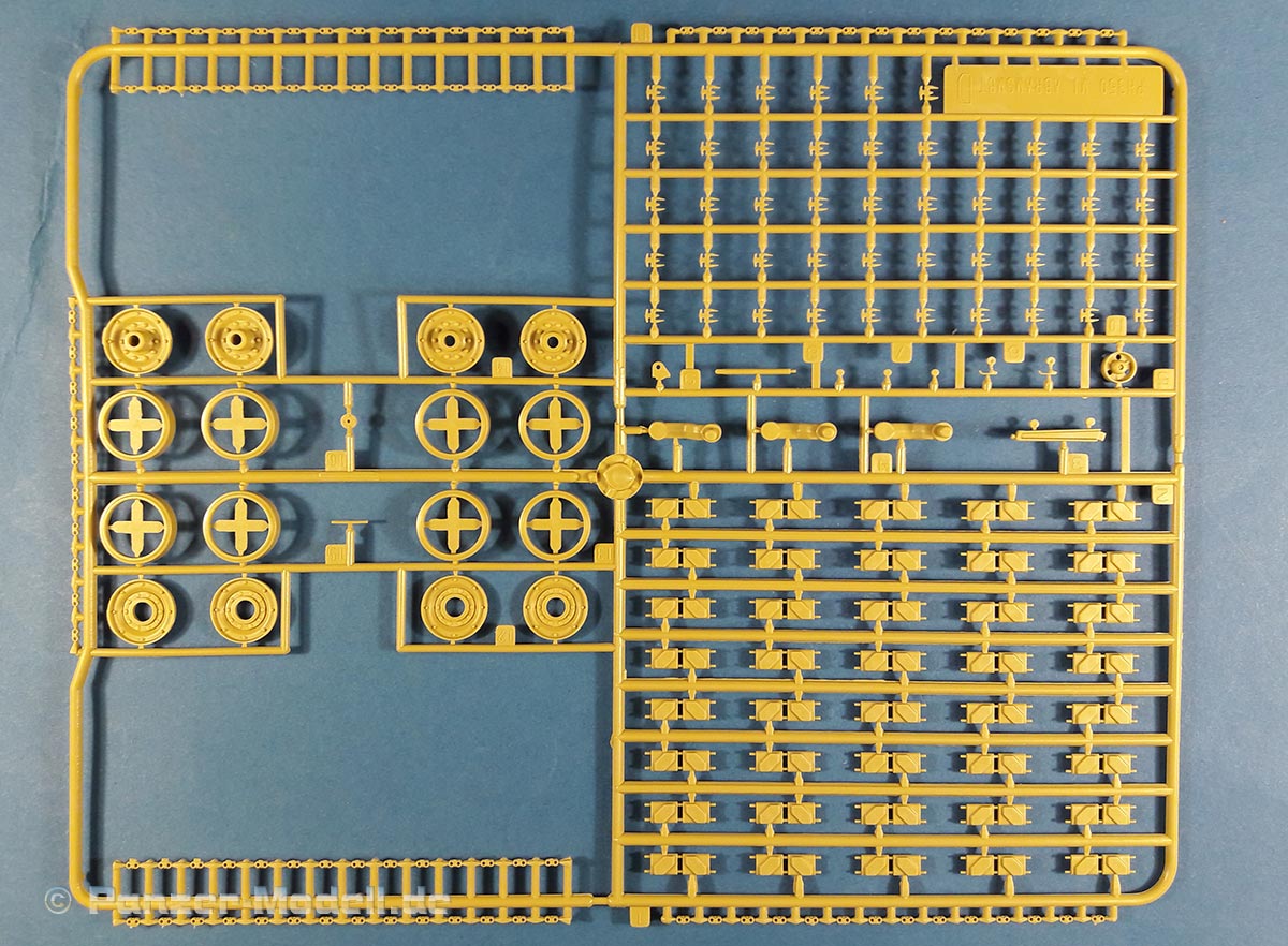 M1 Abrams MBT Der M1 Abrams ist wohl einer der berühmtesten und meist präsenten Kampfpanzer der Welt. Seit seiner Einführung in die US Army 1980 bildet er das Rückrat der dortigen Panzertruppe. Nach vielen Jahren ist nun erstmals ein zeitgemäßes Modell der Ursprungsversion des Abrams erschienen des M1 „Slick“ mit 105mm Kanone und kurzem Turm. Bisher gab es den M1 nur von Tamiya (eigentlich ein XM1 Prototyp), seinen Klon von Academy und ein eher schlechtes Modell von ESCI (Auch verkauft unter dem AMT und ERTL Labels). Schon das Deckelbild weiß zu gefallen, es zeigt einen Abrams in Forrest Green anscheinend auf einer Schießbahn. Beim Öffnen des Kartons zeigen sich sechs Spritzlinge in beigen Plastik, jeweils eine separate Ober- und Unterwanne, ein Spritzling in klarem Plastik, eine kleine Platine mit Ätzteilen, zwei gedrillte Drähte für die Abschleppseile, Decals, ein DIN A4 Blatt mit Markierungsvorschlägen und die Bauanleitung. An den Spritzlingen ist augenscheinlich weder Fischhaut zu finden noch sind auffällige Auswerfermarken an später sichtbaren Stellen zu erkennen. Die Bauteile zeigen sich durchweg gut bis sehr gut detailliert auch feinste Details wurden berücksichtigt. Besonders wichtig sind für mich immer die Verschlüsse der Staukisten an US Panzern, meistens sind diese nur als „Klumpen“ angegossen nicht jedoch hier. Diese finden sich sauber und filigran ausgeführt an den Spritzlingen. Offensichtlich wurden alle Merkmale der frühen M1 am Modell umgesetzt. So findet sich eine schöne M68 105mm Kanone (leider zweigeteilt), der obligatorische kurze Turm, die typische Auslegung der Oberwanne, die frühe T-156 Kette und die Rückhalteringe für die Triebräder. Die beiliegenden Ätzteile sind durchgehend Sinnvoll und stellen Lüftergitter, Abdeckungen, Ösen und Verschlüsse dar. Für die Periskope, Optiken und die Ölstandsanzeigen an den Laufrollen liegen schöne Klarsichtteile bei. Die T-156 Ketten befinden sich an 4 Spritzlingen ein Kettenglied wird jeweils mit einem Mittelsteg und zwei Endverbindern mit einem anderen verbunden. Dies ist wohl der aufwändigste Teil des Bausatzes. Hervorzuheben sind noch die Seitenschürzen, diese bestehen je Seite aus sechs Einzelteilen und können separat angebracht werden. Zudem kann man zwischen dem frühen oder späten letzten Schürzenelement wählen. Die Bauanleitung führt in zwölf Schritten zum fertigen Modell und ist sehr übersichtlich. Als Markierungsvarianten stehen 4 Fahrzeuge zur Auswahl. Eines in MERDC und 3 in Forrest Green. Leider sind keine Angaben zu den Einheiten vorhanden. Aber offensichtlich ist ein Fahrzeug in REFORGER Markierungen abgebildet leider fehlen zu der Variante die Bumper Codes. Die Farbangaben beziehen sich auf Mr. Color Farben von Gunze. Mein Fazit: Endlich ein zeitgemäßer früher M1! Unbedingte Kaufempfehlung. Für einen Preis von ca.45 € kann man hier nichts falsch machen.