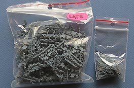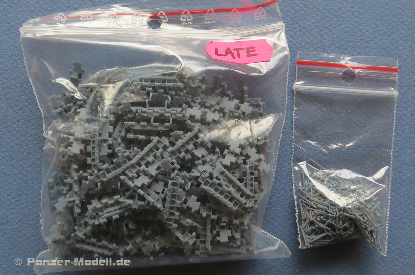 In diesem Set finden wir in dem Verpackungskarton zwei Zip-Tütchen mit rund 200 3D gedruckten Kettengliedern und einzelnen Steckbolzen.
