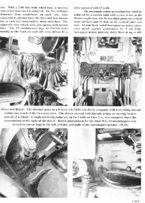 An Panzerwagen werden besprochen: Kleiner Panzerbefehlswagen (auf Ausf. A und B), Schulfahrzeuge, Krupps Exportpanzer LKA & LKB, Panzer I Ausf.C (VK 6.01) und Panzer I Ausf.F (VK18.01). Dazu kommen einige Seiten zu Einsatzgeschichten, angefangen in Spanien, über Rüstungsexporte, Frankreich 1940 bis Russland 1941 und Reserveeinheiten 1943/44. Desweiteren gibt es ein paar Seiten zum Thema Tarnbemalung und Markierungen ... hier wird auf die Verwendung des Buntfarbenanstrichs, dem Wechsel zu dunkelgrau/dunkelbraun, dem weiteren Wechsel zu grau und später zu gelb aufgezeigt!