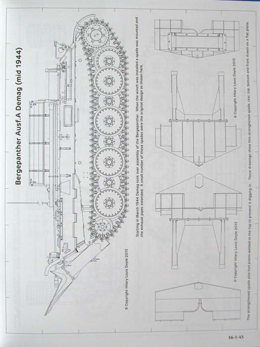 Dann gibt es 21(!) komplette Seiten mit den verschiedensten Versionen der Bergepanther in Mehrseitenansichten an Maßstabszeichnungen von Hilary Doyle. DIE Referenz für Modellbauer.
