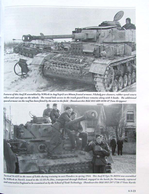 21 Seiten zeigen dann mit je 2 Fotos pro Seite die verschiedenen zeitlichen Ausführungen der Ausf.H, deren Komponenten und Unterschiede bei den verschiedenen Herstellerfirmen. Die Fotos sind alle von hoher Qualität und die Bildunterschriften klären immer genau über die Besonderheiten des gezeigten Panzers auf.