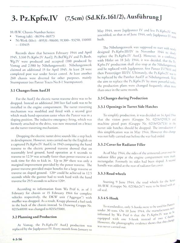 Es folgen 16 Seiten je 2 Fotos pro Seite die verschiedenen zeitlichen Ausführungen der Ausf.J, deren Komponenten und Unterschiede bei den verschiedenen Herstellerfirmen. Die Fotos sind alle von hoher Qualität und die Bildunterschriften klären immer genau über die Besonderheiten des gezeigten Panzers auf.
