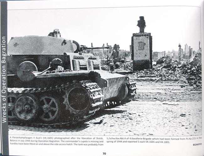 Das Autorenteam hat es geschafft wieder 96 Seiten mit tollen und spannenden Fotos zu füllen. Wie bereits aus den verganegenen Heftsen gewohnt weisen diese Fotos wieder eine unglaublich guter Bildqualität auf - auch wenn diese seitenfüllend dargestellt werden. Hauptthema dieser Ausgabe ist nochmals die Ostfront Man muss es für alle die die Serie noch nicht kennen nochmal explizit sagen - trotz des Titels sind die gezeigten Fahrzeuge in den seltensten Fällen wirklich Wracks - die meisten weisen Beschädigungen auf, sind aber ansonsten noch recht komplett. Auf jeden Fall hervorragendes Vorbildmaterial für Dioramen- und Modellbauer. Die Fotos sind jeweils mit ausführlichem, englischem Erklärungstext versehen, der auf Besonderheiten bzw. Ort und Zeit der Fahrzeuge auf den Fotos hinweist. Als Besonderheit bietet die Nummer 14 die Vorder und Rückseite als Aufklappseiten die je ein Foto im extremen Breitformat bietet. Hervorragend! An Hauptthemen bietet dieses Heft: - Odd StuGs: Ostfront Edition - Tehumardi Wrecks - Wrecks of Operation Bagration - Panzer Wrecks in the Woods Das Heft beginnt mit 4 Seiten mit Aufnahmen verschiedener Tiger I an der Ostfront. Es folgen 12 Seiten mit dem ertsen Hauptthema - den ungewöhnlichen StuGs an der Ostfront. Die Fotos zeigen Sturmgeschütze III und IV die seltene und eigentümliche Änderungen aufweisen. So sehen wir StuGs mit Abstandspanzerung, ungewöhnlich umfassende betonpanzerungen, Schwinschürzen und andere seltene Befestigungsarten der Schürzen, usw.. Es folgen 18 Seiten mit einem Sammelsurium der unterschiedlichsten Panzertypen, die die Deutschen an der Ostfront eingesetzt haben, wie die Hummel, Wespe, haufenweise Panther D, A und G, T-34, BT-42, PzSpWg.204(f) und Maultier Nebelwerfer. Dann kommen 6 Seiten mit dem 2.Hauptthema, den "Tehumardi Wrecks". Hier bekommt man einige Fotos des deutschen Umbaus von T-26 mit 7,5cm Pak97/38(f) sowie deutscher M3 light Tank und ein Sd.Kfz.10/4.. Auf den folgenden 19 Seiten gibt es wieder weitere, verschiedene Fahrzeuge zu sehen, wie den RSO/01, 12,8cm Pak43, Panther A, Sd.Kfz.251/3, Sd.Kfz.251/16, Nimrod, Turan II und einseltsam umgebautes StuG III ohne Bewaffnung. Darauf folgend gibt es 13 Seiten mit schönen Aufnahmen zum Hauptthema "Wrecks of Operation Bagration". Hier gibt es hauptsächlich Panther und Tiger I zu sehen. Aber auch einige Schätze, wie den Panzer II Ausf.J, Sd.Kfz.251/9 udn auch Panzer IV Ausf.H. Auf 16 Seiten gibt es dann sehr schöne Aufnahmen verschiedener Panzer. Darunter der Tiger I "A22" der zur Kampfgruppe "Schwarzrock" gehörte, ein später Panzer IV Ausf.J mit Thoma Schürzen, bulgarische Panzer IV Ausf.H, Marder II, Nashorn und Jagdpanzer IV L/70(V). Das Heft schließt dann mit 6 Seiten mit "Panzer Wrecks in the Woods". Hier gibt es einige Besonderheiten zu sehen, wie den Möbelwagen mit 3,7cm Flak und Panther G für IR Ausstattung ausgerüstet. Auch dieser 14. Band der Panzerwrecks Reihe bietet wieder einen ganzen Haufen sehr gutes und seltenes Fotomaterial - für Historiker und Moidellbauer eine wahre Fundgrube. Sehr empfehlenswert! Panzerwrecks Vol.14 |
