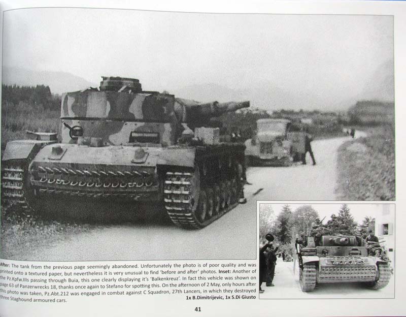 Die Autoren von Panzerwrecks haben es nun wieder mal geschafft die 96 Seiten dieses DIN A4 Bandes im Querformat mit 151 tollen und spannenden Fotos zu füllen. Wie bereits gewohnt, sind diese Fotos wieder in einer unglaublich guten Bildqualität, auch bei komplett seitenfüllender Darstellung. Auch in diesem Review sei es für alle, die die Serie noch nicht kennen nochmal explizit gesagt: trotz des Titels sind die gezeigten Fahrzeuge nicht immer wirklich Wracks - viele weisen Beschädigungen auf, sind aber ansonsten noch relativ komplett oder sogar kompöett intakt. Andere sind tatsächlich Wracks, zeigen aber damit bemerkenswerte Details, die man sehen sollte. Auf jeden Fall hervorragendes Vorbildmaterial für Dioramen- und Modellbauer. Die Fotos sind jeweils mit ausführlichem, englischem Erklärungstext versehen, der auf Besonderheiten bzw. Ort und Zeit der Fahrzeuge auf den Fotos hinweist. In diesem Band geht es nach Ost- und Westfront und Italien auf einen neuen Kriegsschauplatz - Jugoslawien. Die Fotos jedenfalls zeigen viele spannende und sonst selten zu sehende Fahrzeuge in beeindruckender Fotoqualität. An Hauptthemen bietet dieses Heft: - Panzer Zug Wrecks - 5.(verstärkte) Polizei-Panzer-Kompanie - Panzers in Post War Yugoslavia Das Heft beginnt mit 19 Seiten mit Fahrzeugen in loser Reihenfolge mit verschiedenen interessanten Fahrzeugen, die gezeigt werden. Wie z.B. Somua S35 als beutefahrzeuge, darunter einr mit nachgerüsteter 6 Pfünder Kanone. Desweiteren Artillerieschlepper 601(b), Stug L6(i), den gepanzerten Mannschaftstransportwagen.S37(i), Sd.Kfz.8, RSO, usw.. Auf den folgenden 6 Seiten kommen mit dem ersten Hauptthema ein paar hochinteressante Aufnahmen von verschiedenen Panzerzügen, neben den deutschen Panzerjägerwagen, dem 10cm Geschützwagen und schweren Panzerspähzugwagen sind die Aufnahmen des kroatischen Panzerzugs und des italienischen Littorina Blindata Mod.42 wirklich hochinteressant. Darauf folgend gibt es 22 Seiten mit weiteren Aufnahmen von mehr recht selten abgelichteten Fahrzeugen, wie dem Panzer M15 738(i), M14 736(i), Panzer L6 733(i), StuG L6, Panzer L3 731(i), UE 630(f) Schlepper, Panzer 38(t), Panzer III Ausf.N, StuG III, StuG M41, Auf den nächsten 7 Seiten gibt es dann Hauptthema Nr.2 - die 5.(verstärkte) Polizei-Panzer-Kompanie. Hier gibt es einige tolle und interessante Fotos der Beute-T-34 747(r) im Dienste dieser Kompanie. Vor dem nächsten Hauptthema gibt es dann 8 Seiten, die Aufnahmen von Panther G, Panzer 40M Turan, Panzer IV Ausf.F, Jagdpanzer 38, StuG M41, Panzer 38 H 735(f) zeigen. Hauptthema 3 sind dann die "Panzers in Post War Yugoslavia", also die Fahrzeuge, die nach dem Krieg in Jugoslawien verblieben und genutzt wurden. Hierbei sind auch wieder sehr schöne Aufnahmen dabei unter anderem Panzer IVm StuG IIIs, Jagdpanzer 38, AB41, Sd.Kfz.251/23, Sd.Kfz.9/1 mit 10t Kran, Panzer 38(t), Sd.Kfz.251/17, usw.. Auch dieser 19. Band der Panzerwrecks Reihe bietet wieder hervorragendes und seltenes Fotomaterial - für Historiker und Modellbauer eine grandiose Fundgrube und mit den dazugehörigen Informationen zu den Fotos und Fahrzeugen einfach Gold wert. Sehr empfehlenswert! Panzerwrecks Vol.19