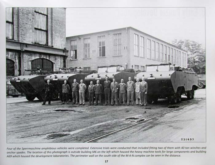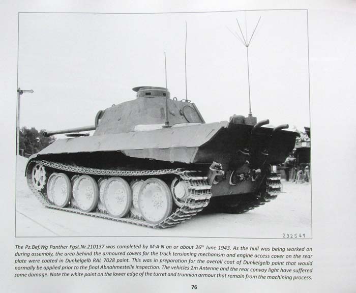 Worum also geht es in diesem über 200 Seiten starken Werk? Das Autorenteam hat sich hier dem MAN Werk in Nürnberg gewidmet und zeigt in diesem Buch, was hier in den Jahren 1934 bis 1945 alles erprobt und vom Band gerollt ist - dabei finden sich einige sensationelle Aufnahmen - von den über 200 Fotos sind die meisten bislang nicht veröffentlicht worden. Das Buch ist komplett in englischer Sprache gehalten, wobei die Textabschnitte relativ übersichtlich gehalten sind und der Fokus auf den Fotoaufnahmen liegt. nahezu alle Fotos sind seitenfüllend mit beeindruckender Qualität - Die Bilder sind scharf und detailreich. jedes Foto ist mit erklärendem Text in der Bildunterschrift versehen. Dieser klärt über das gezeigte Panzermodell sowie meist Ort und zeit der Aufnahme auf und auch Details auf die man unbedingt achten sollte. Nach einem Vorwort von Hilary Doyle folgt ein kurzer geschichtlicher Überblick und Infos zur Wiederbewaffnung Deutschlands nach dem 1.Weltkrieg. Natürlich ist diese Betrachtung in Richtung des MAN Werks fokussiert - was wurde wann gemacht und welche Rolle hat MAN dabei gespielt. Dazu gibt es eine kleine Tabelle der Produktionszahlen von 1938 bis 1945 der verschiedenen LKW Modelle vom 3t LKW bis zum Bus aus der MAN Produktion. Danach geht es dann auch gleich ans Eingemachte - jede Seite mit einem großformatigen Foto von teils sensationell seltenen fahrzeugen. Es beginnt mit Radfahrzeugen, genauer gesagt den MAN LKWs wie dem E3000 mit Kipper-Aufbau, oder dem ML4500. Richtig sensationell wird es dann aber mit mehreren Aufnahmen der amphibischen 8x8 Sperrfahrzeuge. Dann kommen eineinhalb Seiten Text zur frühen Panzerentwicklung bei MAN, wobei es in der Hauptsache um den Räder-Raupen Kampfwagen geht. Dieser ursprünglich von Landsverg entwickelte Panzerwagen konnet wahlweise auf Rädern oder Ketten fahren, so wie es später vom Sd.Kfz.254 bekannt wurde. Beindruckend sind hier die Fotos aus den Fabrikhallen und während der Erprobung im Gelände. Als nächstes geht es um den Panzer I, der von MAN produziert wurde - eine Seite Text und eine tabelle mit Produktionszahlen klären hier über die Details zum Panzer I und der Produktion in Nürnberg auf. Die Fotos zeigen die Ausf.A und B, wie auch die Schulungsfahrzeuge. Ebenso geht es dann über zum Panzer II - hier gibt es schon eine längere tabelle mit den Produktionszahlen der einzelnen Panzer II Ausführungen, die in Nürnberg produziert wurden - dies geht von dem ersten Panzer II Ausf.a1 bis zu den 100 produzierten Panzer II Ausf.L "Luchs". Das Bildmaterial hierzu hat mich persönlich höchst erfreut, denn Fotos der frühen Panzer II oder auch das Versuchsfahrgestell der Ausf.D und E sieht man sonst eher selten. Aber auch sonst sind die Aufnahmen z.B. des VK9.01, Versuchsfahrgestell des VK13.03 und 16.01 sind sensationell. Auch das Luchs Fahrgestell, das überarbeitet und mit Dieselmotor versehen wurde, ist eine wahre Augenfreude. Weiter geht es dann mit der Panzer III Reihe - wieder führt eine Seite Text und Produktionszahlen die Fotoreihe dazu an, wobei es sich hier auf nur 3 Fotos eines Panzer III Ausf.G, Ausf.L und StuG III Ausf.G beschränkt. Nicht minder interessant geht es im Kapitel der Reparatur und Modernisierung zu - hier gibt es spannende Aufnahmen verschiedener Panzerfahrzeuge aus den Hallen bei MAN, darunter auch ein paar Marder II. Das Highlight fpr die meisten dürfte aber nun erst kommen, denn nun geht es zum Paradepferd von MAN - dem Panther! Hier gibt es massiv interessant Infos zur Entwicklung und Produktion des Panthers und gerade die Fotos der Panther V2 in der Geländeerprobung und Detailfotos z.B. des geöffneten Motorraums. Ebenfalls interessant ist die Fotoserie der Erprobung an einem Panther Fahrgestell bei dem die Kette vorn über das Treibrad aufsteigt Weiter geht es mit Bilder aus der Produktionsstraße des Panthers mit Wanne, und Zubehör/Aggregaten, wie etwa dem Getriebe. Es folgen Aufnahmen von Versuchsfahrten im Mai 1943, sowie Juni 1943, was insofern spannend ist als dass das V1 Fahrgestell bereits mit den Komponenten für den anvisierten Panther II ausgestattet wurde. Es folgen spannende Aufnahmen verschiedener Panther auf dem Testgelände in Grafenwöhr. Besonders sensationell sind dann 7 Seiten mit vollformatigen Aufnahmen der Panther II Wanne mit Detailaufnahmen. Diese Änderungen an der Wanne waren Vorlage für die Änderungen für die Ausf.G Wanne des Panthers. Es folgen mehrere Seiten mit exzellenten ansichten eines Panther A mit Zimmerit auf dem MAN Werksgelände. Auf 13 Seiten werden dann tolle Fotos des Bergepather Ausf.A mit Waffenstation und Erdspaten gezeigt, die so noch nie zu sehen waren. Wahnsinn! Auch nicht minder sensationell ist die Aufnahmen für die Vorbereitung der Panther auf IR Equipment mit dem Stromanschluss an der Kanonenblende. Auf weiteren 14 Seiten finden sich grandiose und qualitativ ausgezeichnete Fotos von allen bereichen der Innenräume der Wanne und Turm! Zum Ende des Buches gibt es noch diverse Seiten und Fotos von den Zerstörungen des Werks durch Bombenangriffe - erstaunlich immer wieder wnen man sowas sieht, wie oft nach bereits kurzer Zeit die Produktion wieder aufgenommen werden konnte. Abgeschlossen wird dies mit Aufnahmen der letzetn Panther im Werk, wie sie nach Kriegsende vorgefunden wurden, sowie eine lange Liste der Zulieferer und deren Kennbuchstaben. Als nettes Gimmick liegt ein loses Faltblatt bei, in Farbe gedruckt zeigt es den Übersichtsplan des MAN Werk mit Legende wo welche Bereiche und Produktionsstraßen auf dem Gelände gelegen waren. Insgesamt ein spezielles und faszinierendes Werk mit absolut seltenen und sehenswerten Fotos, die Modellbauer wie auch historisch Interessierte begeistern werden. Die rund 38 Euro für dieses Buch sind wahrlich gut angelegt. Absolute Kaufempfehlung! Nürnbergs Panzer Factory |