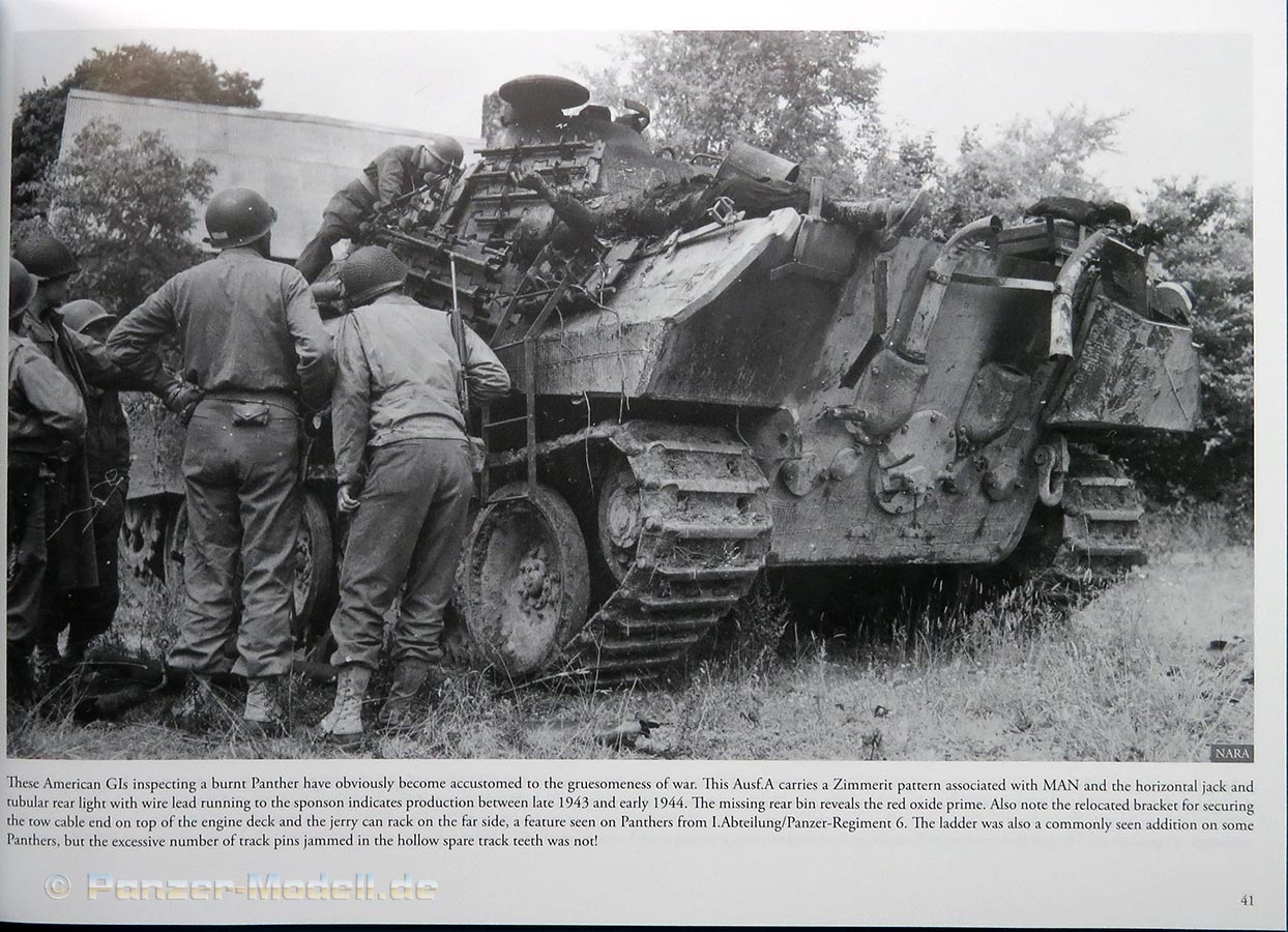 Das zweite Kapitel beschäftigt sich mit dem Panzerkampfwagen V Panther A. Hier hat der Autor einmal quer durch frühe und späte Ausführungen einen Haufen interessanter Fotos von Panther zusammengestellt, die noch kaum oder gar nicht bekannt sind. Hier sind die Bemalungen und Markierungen interessant.