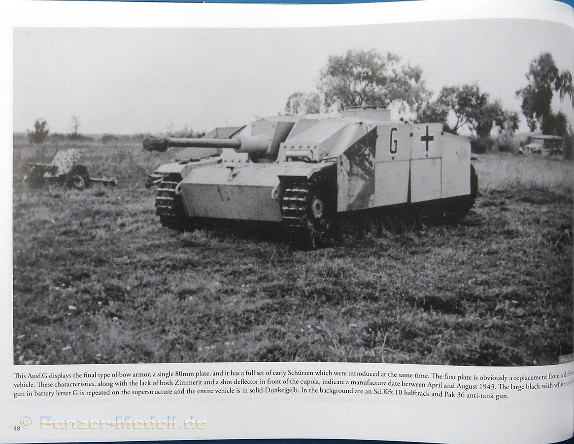 Kapitel 3 hat das StuG III Ausf.G zum Thema und zeigt eine große und spannende Auswahl an StuGs mit den unterschiedlichsten Bemalungen und Markierungen. Frühe und später Ausführungen, mit und ohne Zimmerit, mit Kasten- und Topfblende ... hier findet man wirklich eine schöne Auswahl.