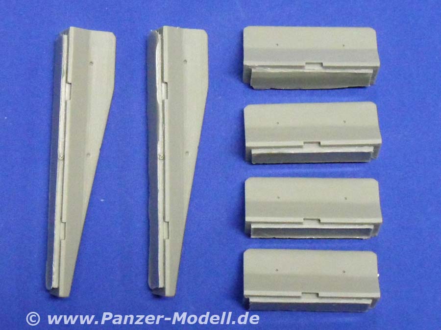 Das Set enthält vier Mittel- und zwei Endstücke. Plus Model hat die Blöcke erstklassig in Resin gegossen. Es sind beim vorliegenden Muster weder Verzug, noch Luftblasen o. Ä. zu finden.